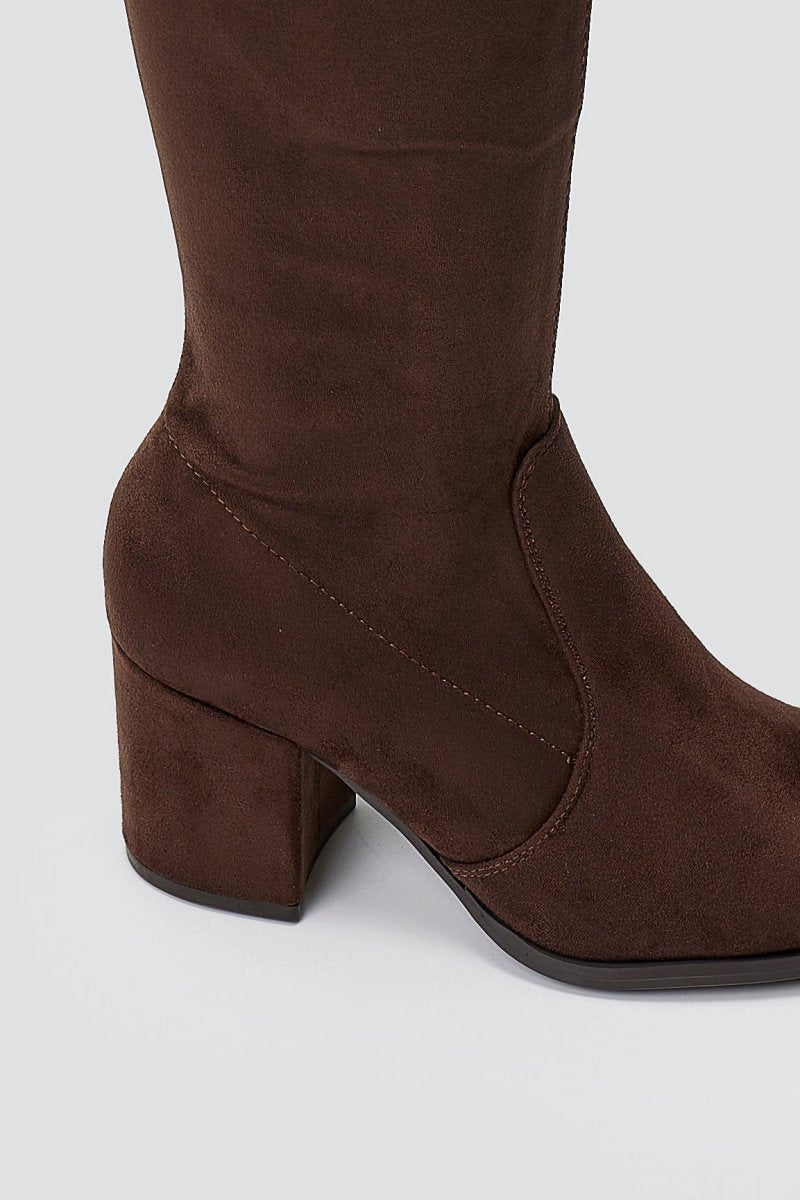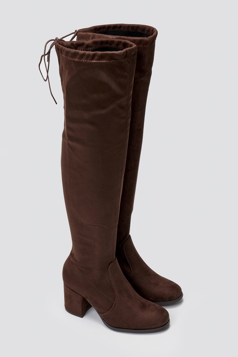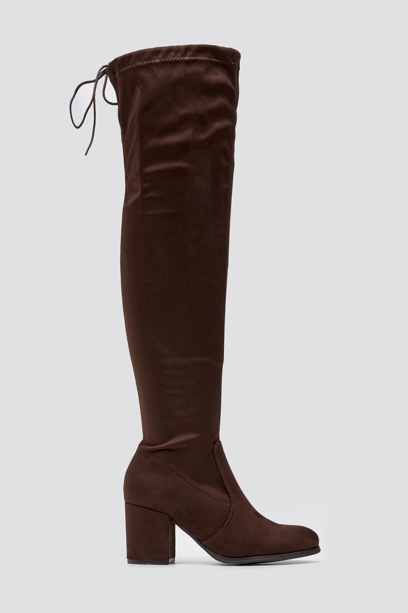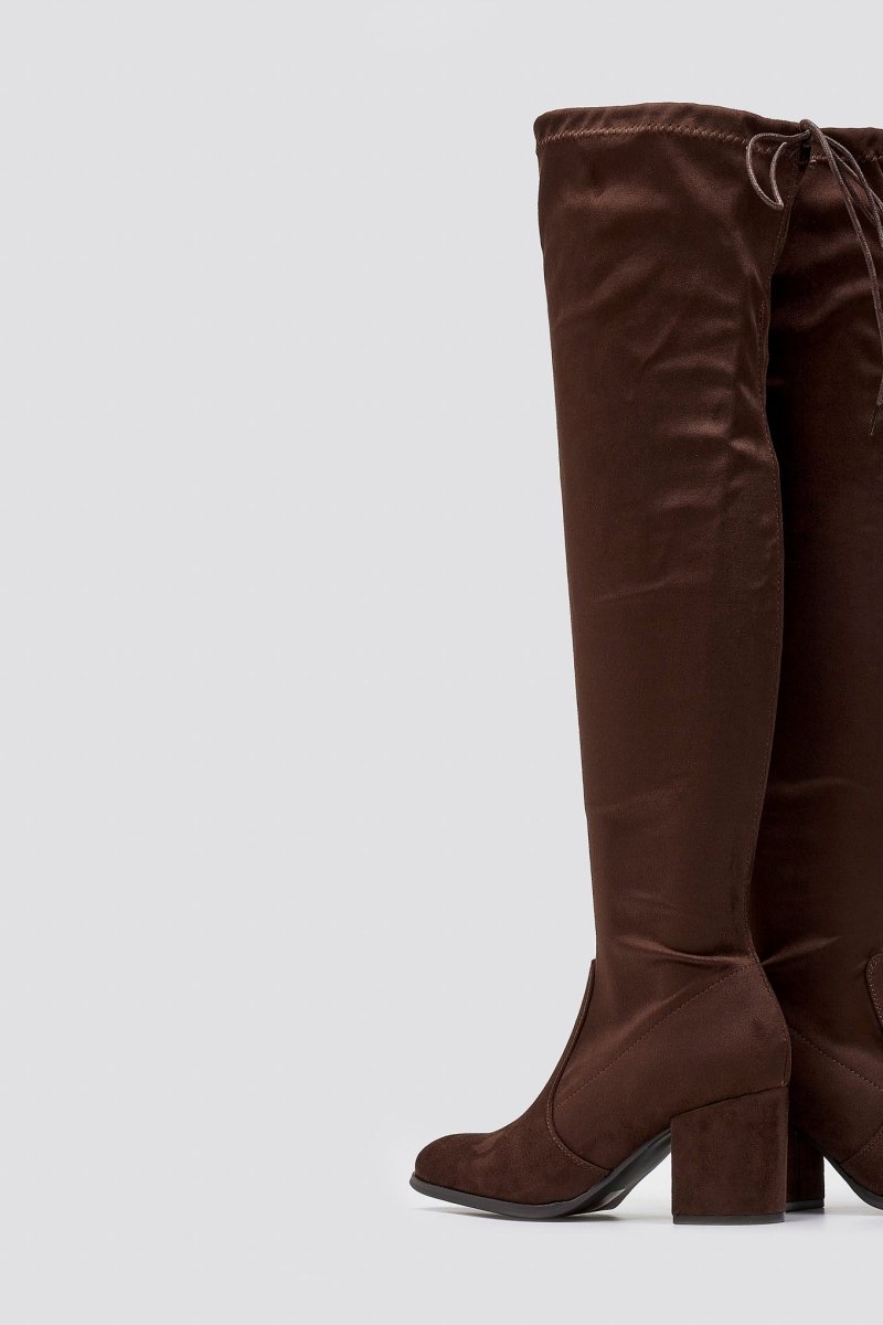 Over-the-Knee Suede Boots with Tie - Brown Suede