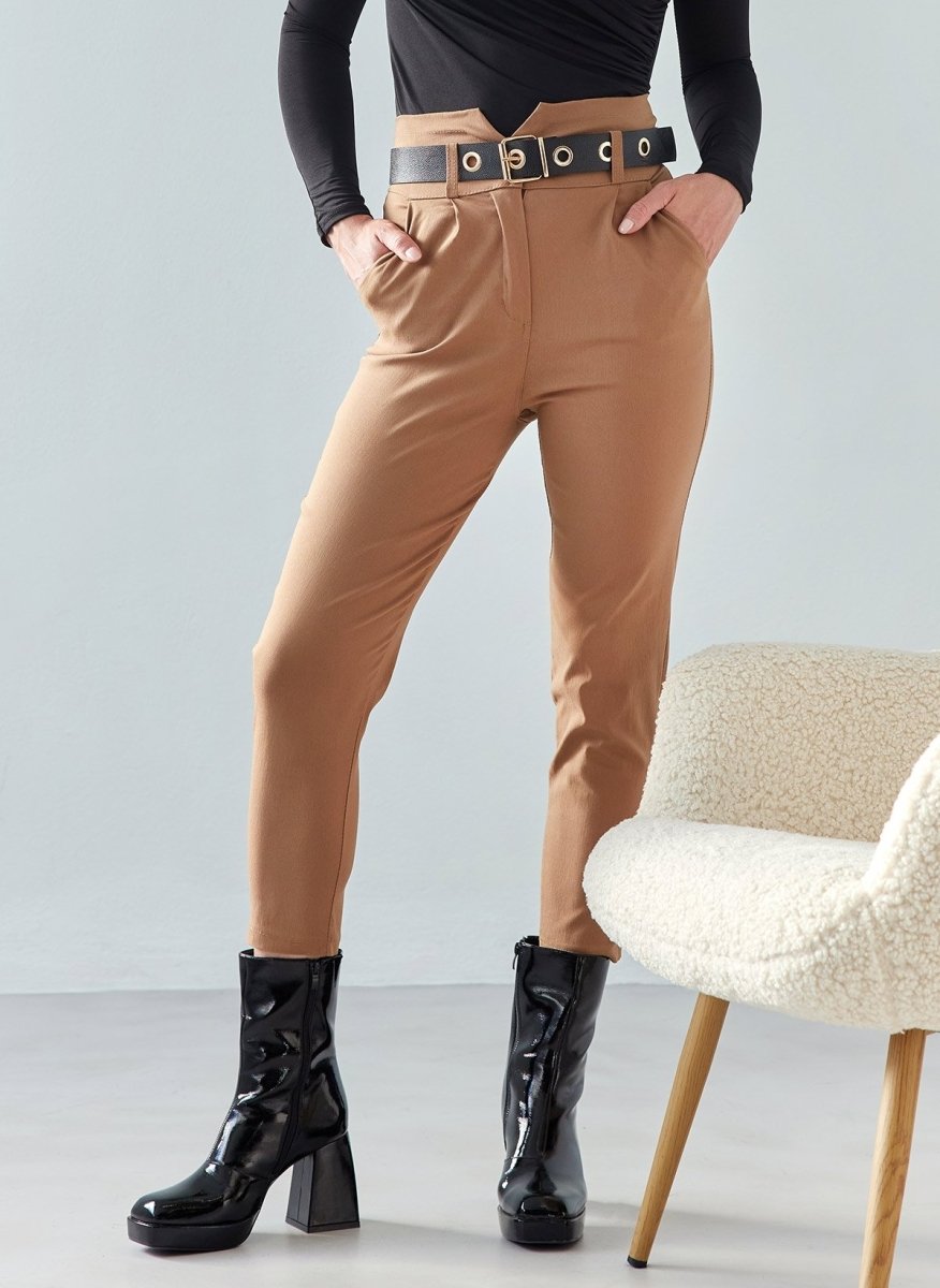 Παντελόνι chino με άνοιγμα - Κάμελ