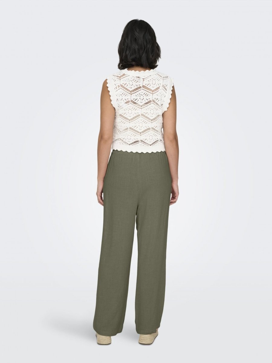 Παντελόνι με λινό ONLY. Ψηλόμεσο με wideleg μπατζάκια. Λάστιχο με κορδόνι στη μέση. Κάθετες τσέπες στο πλάι.