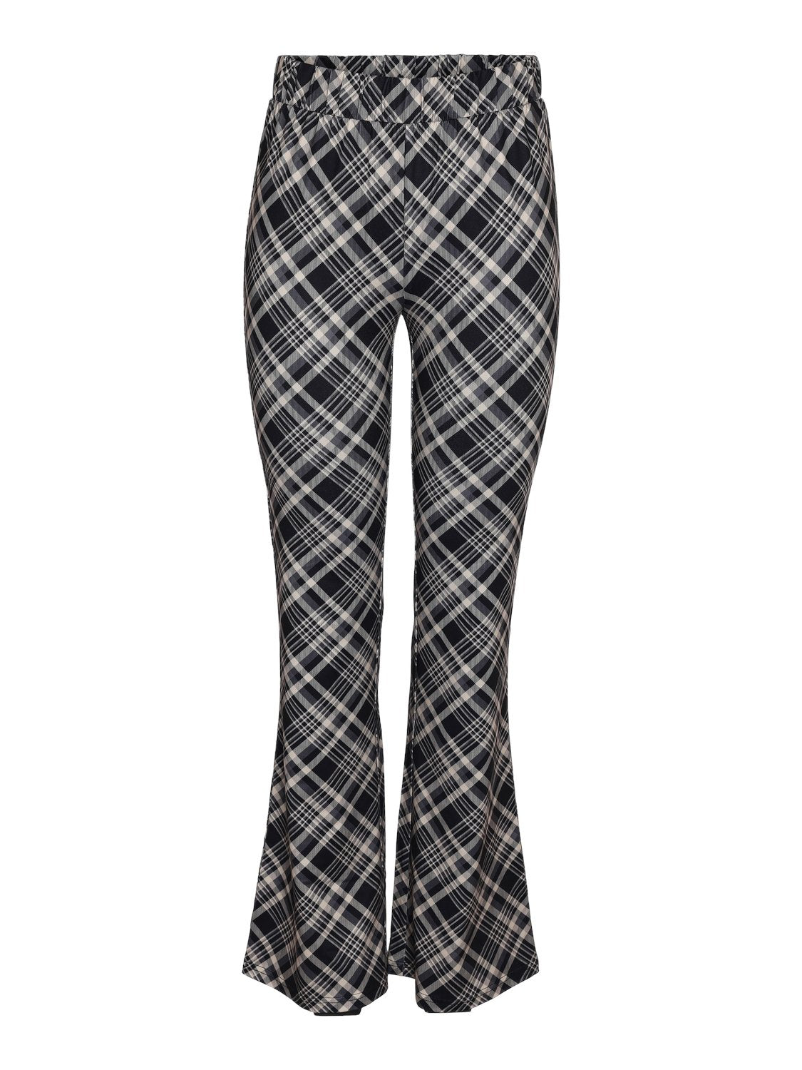 Παντελόνι υφασμάτινο ψηλόμεσο με print καρό NOISY MAY. Έχει λάστιχο στη μέση. Ίσια γραμμή.