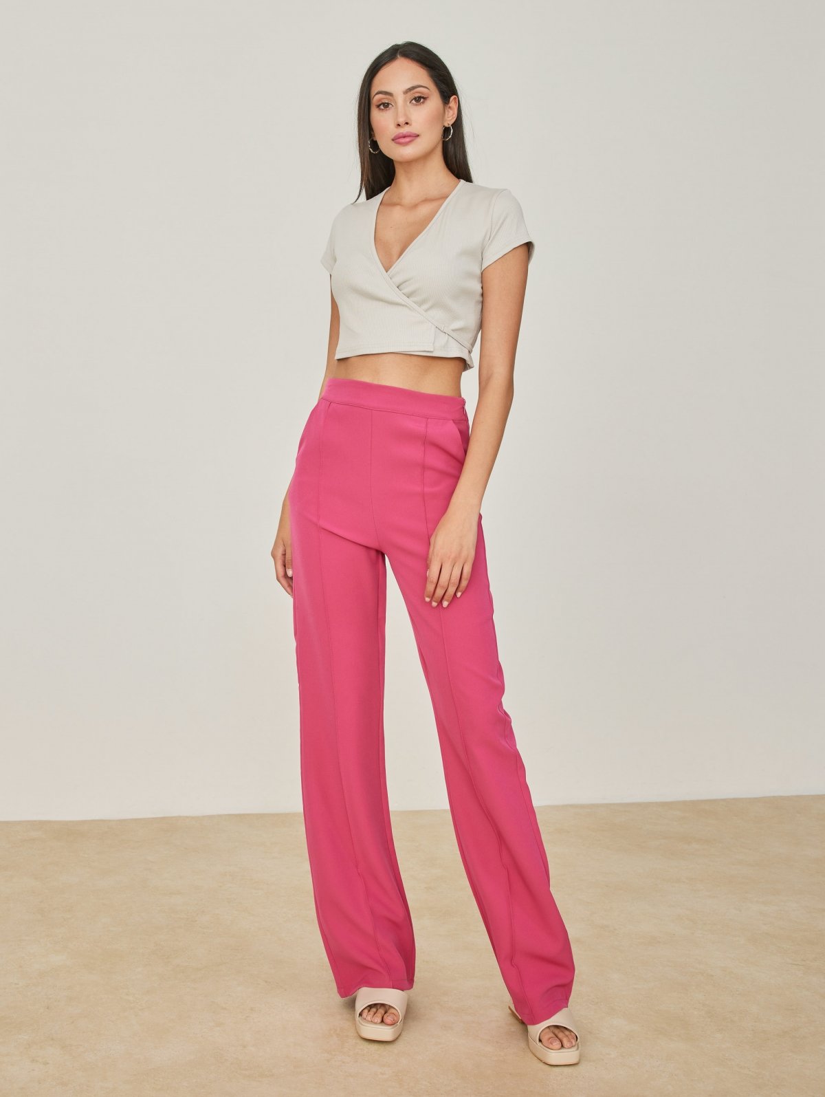 Παντελόνι υφασμάτινο με κάθετη ραφή. Κλείνει με φερμουάρ στο πλάι. Made in Italy.