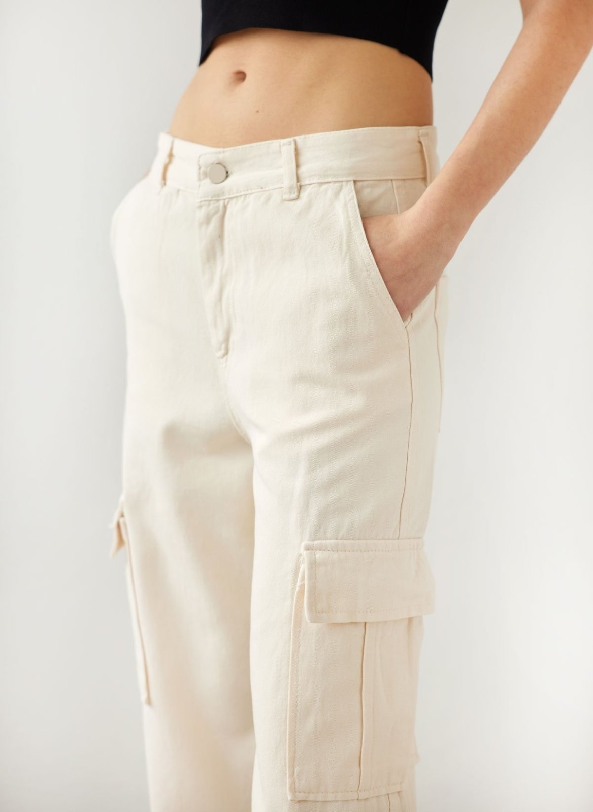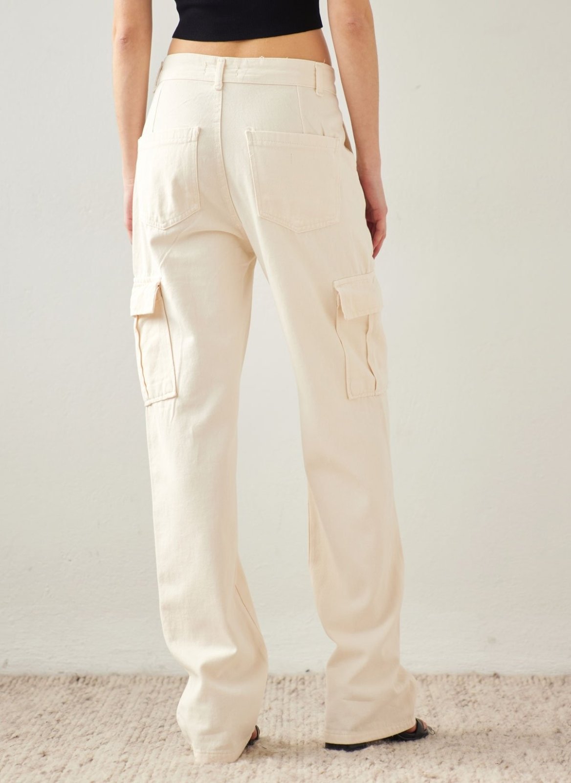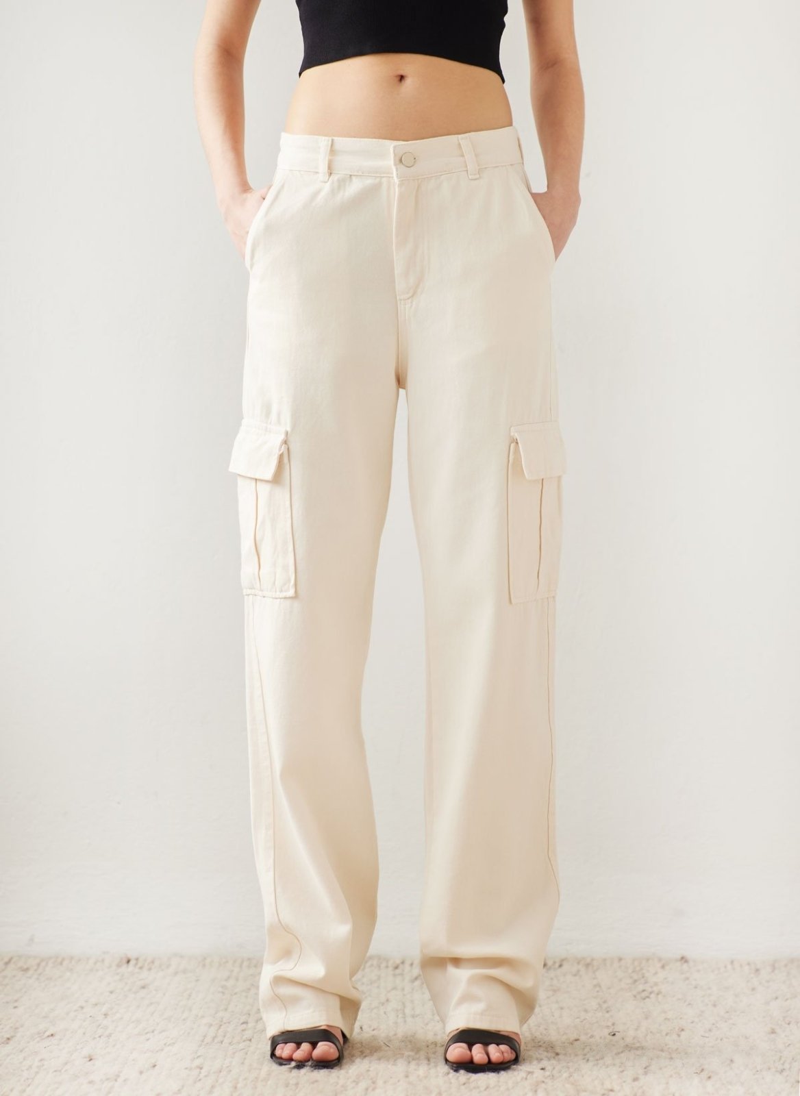 Cargo ψηλόμεσο τζιν παντελόνι. Έχει φαρδιά πατζάκια.