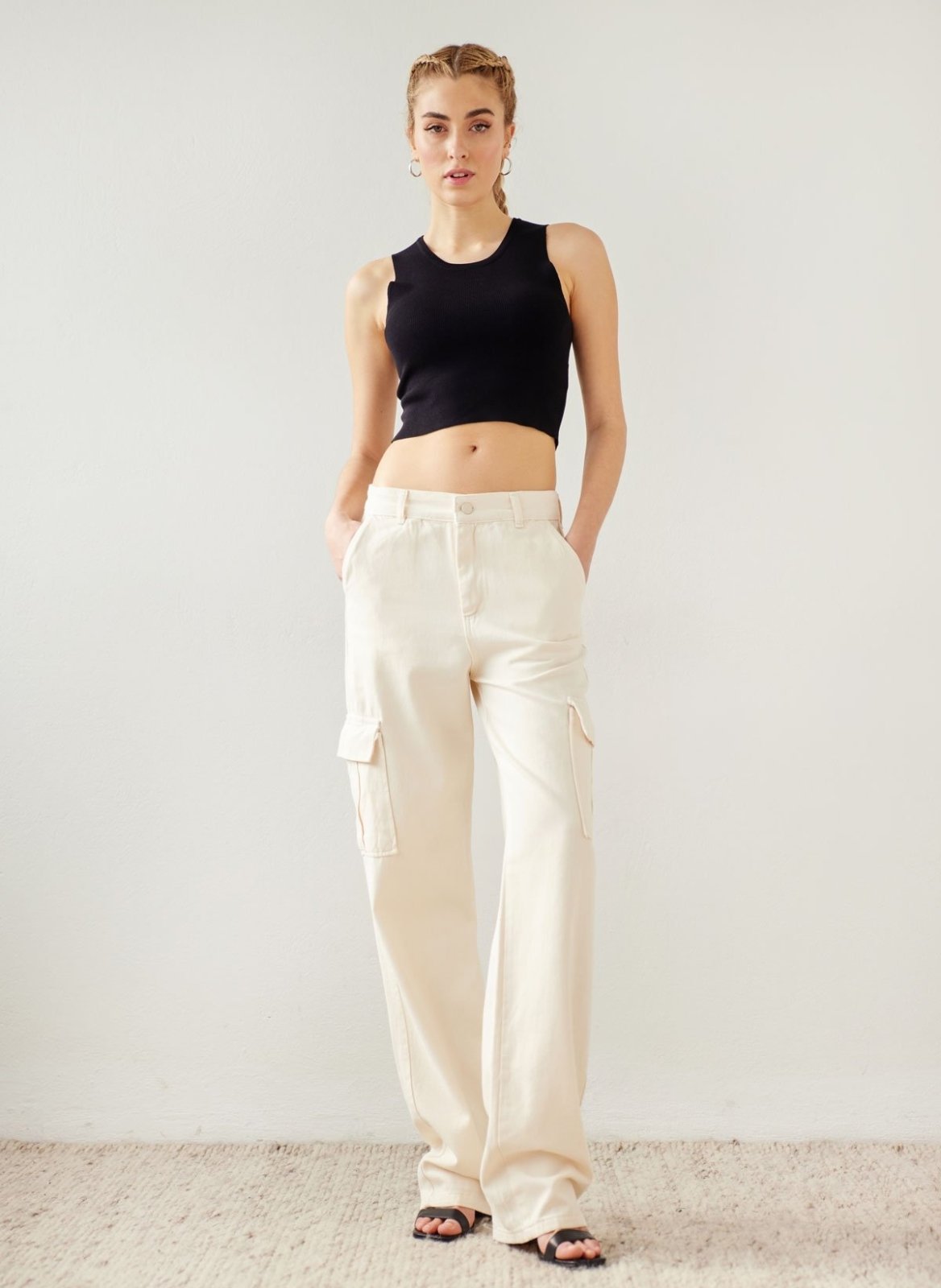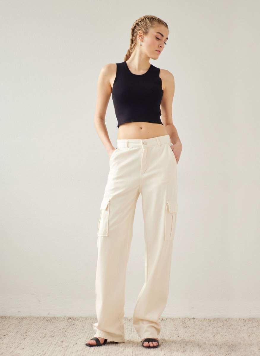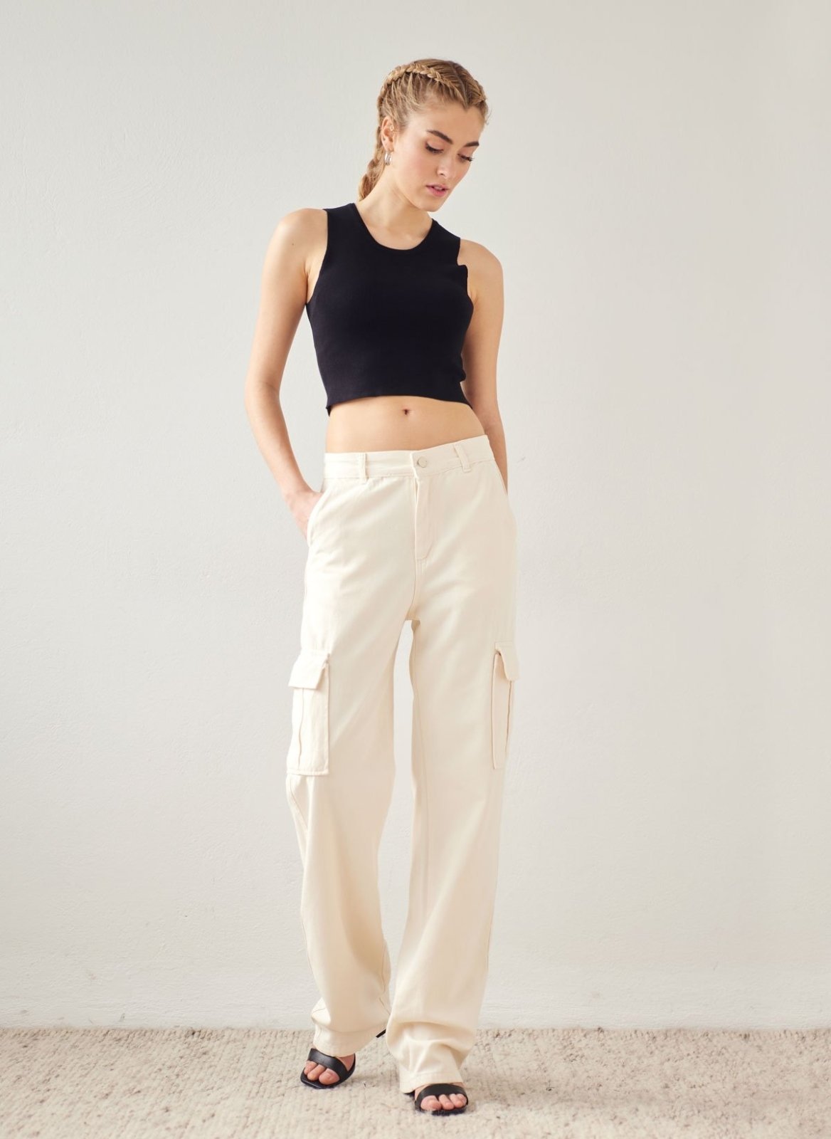 Cargo ψηλόμεσο τζιν παντελόνι. Έχει φαρδιά πατζάκια.
