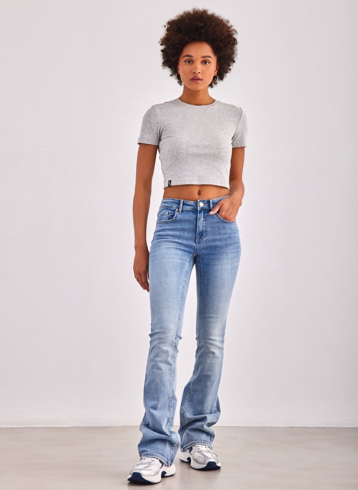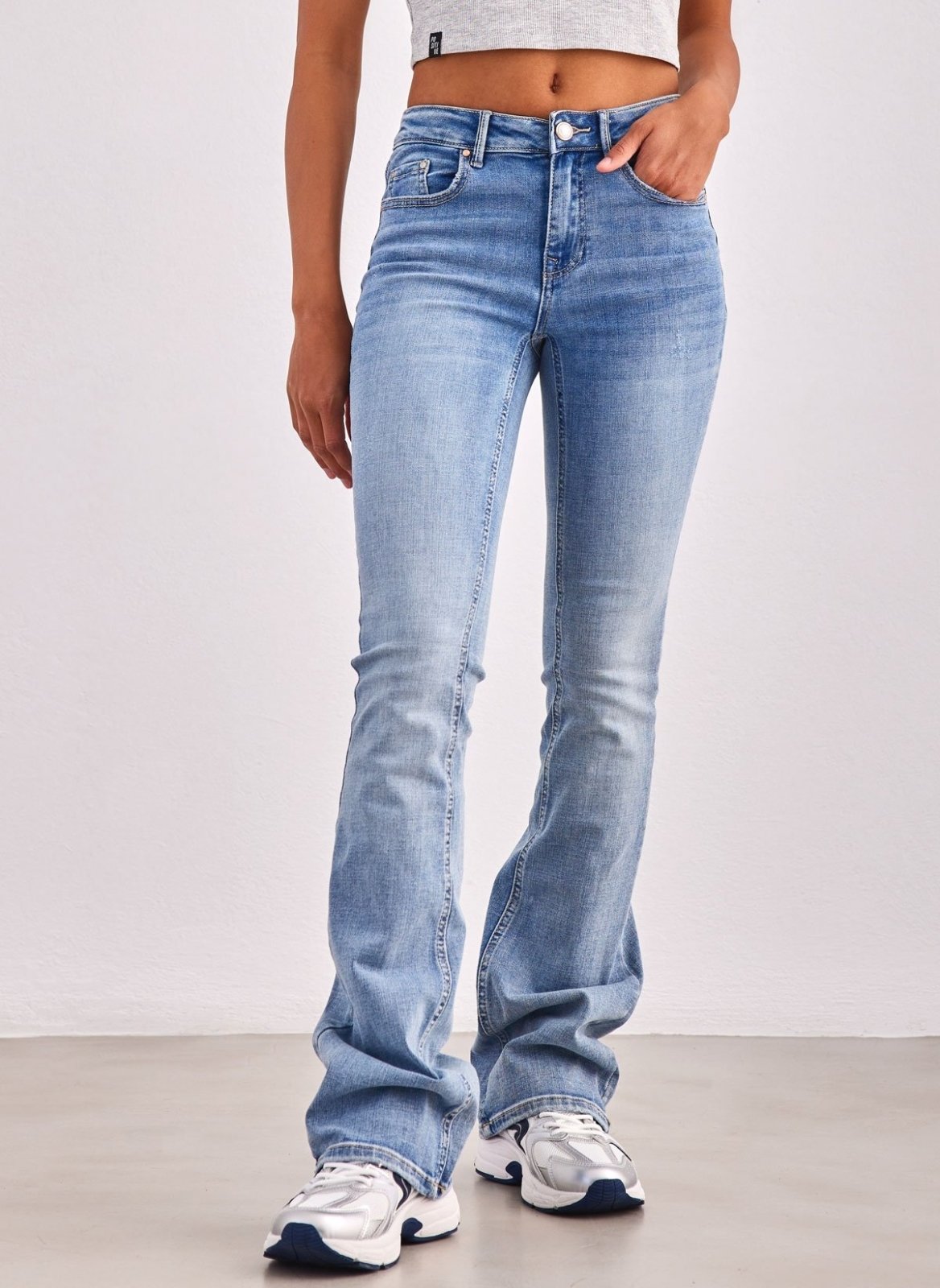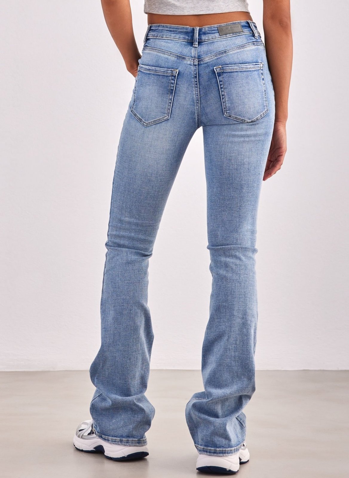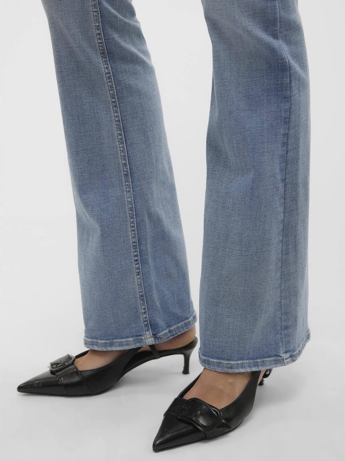 Παντελόνι τζιν καμπάνα Vero Moda. Ψηλόμεσο με ελαστική εφαρμογή. Τσέπες στο πλάι και το πίσω μέρος. Κλείνει με φερμουάρ και κουμπί.
