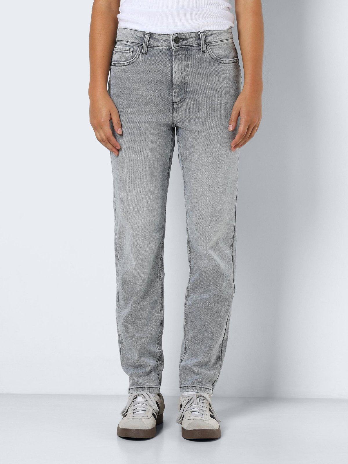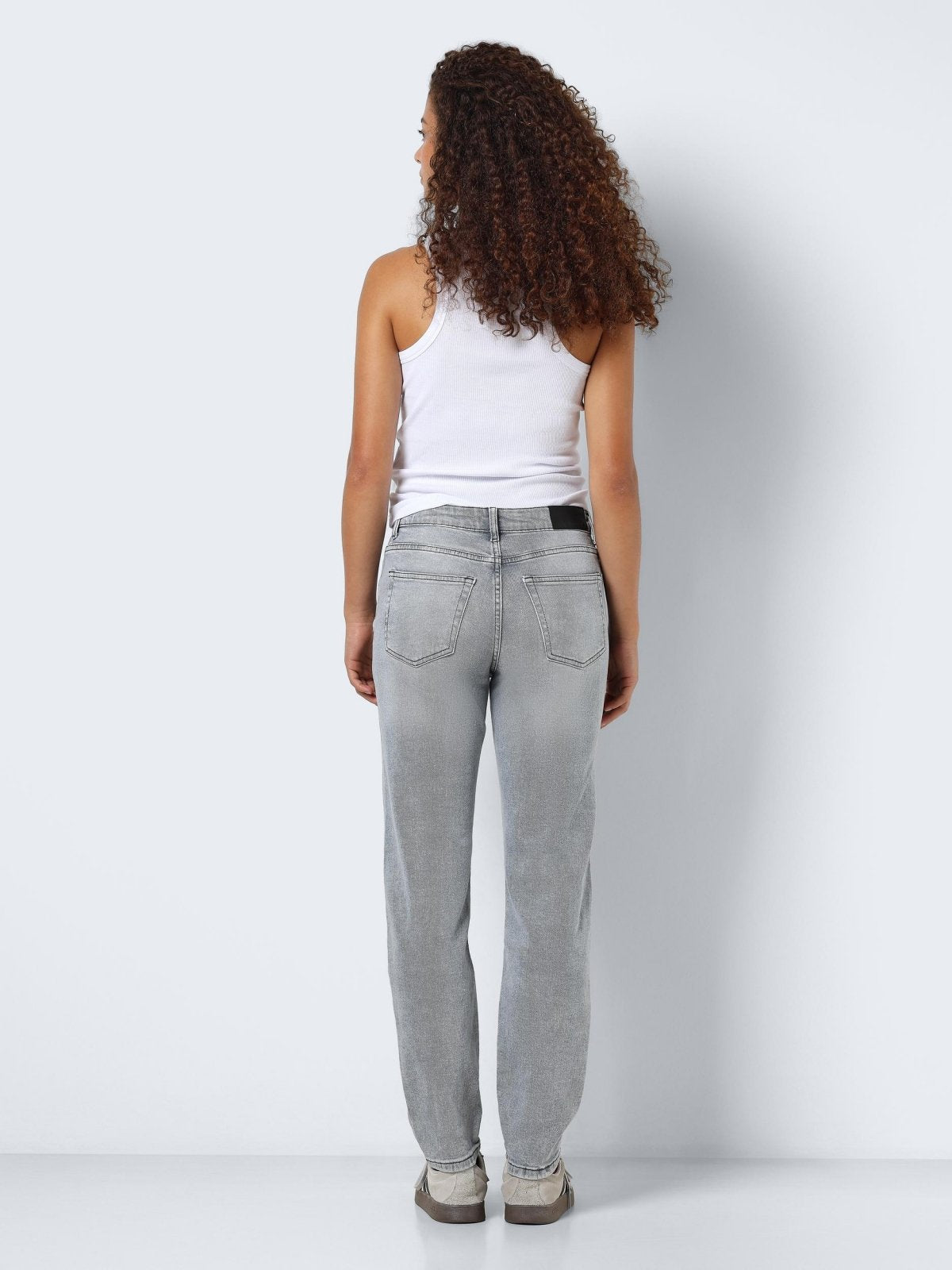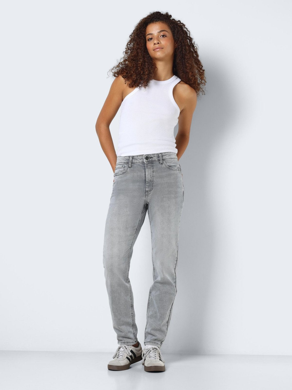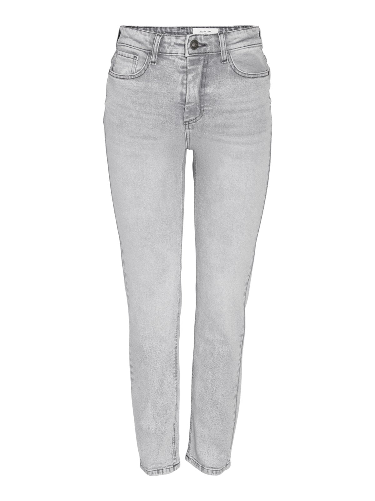 Παντελόνι τζιν ψηλόμεσο Noisy May. Έχει τσέπες στο πλάι και το πίσω μέρος. Ίσια γραμμή.