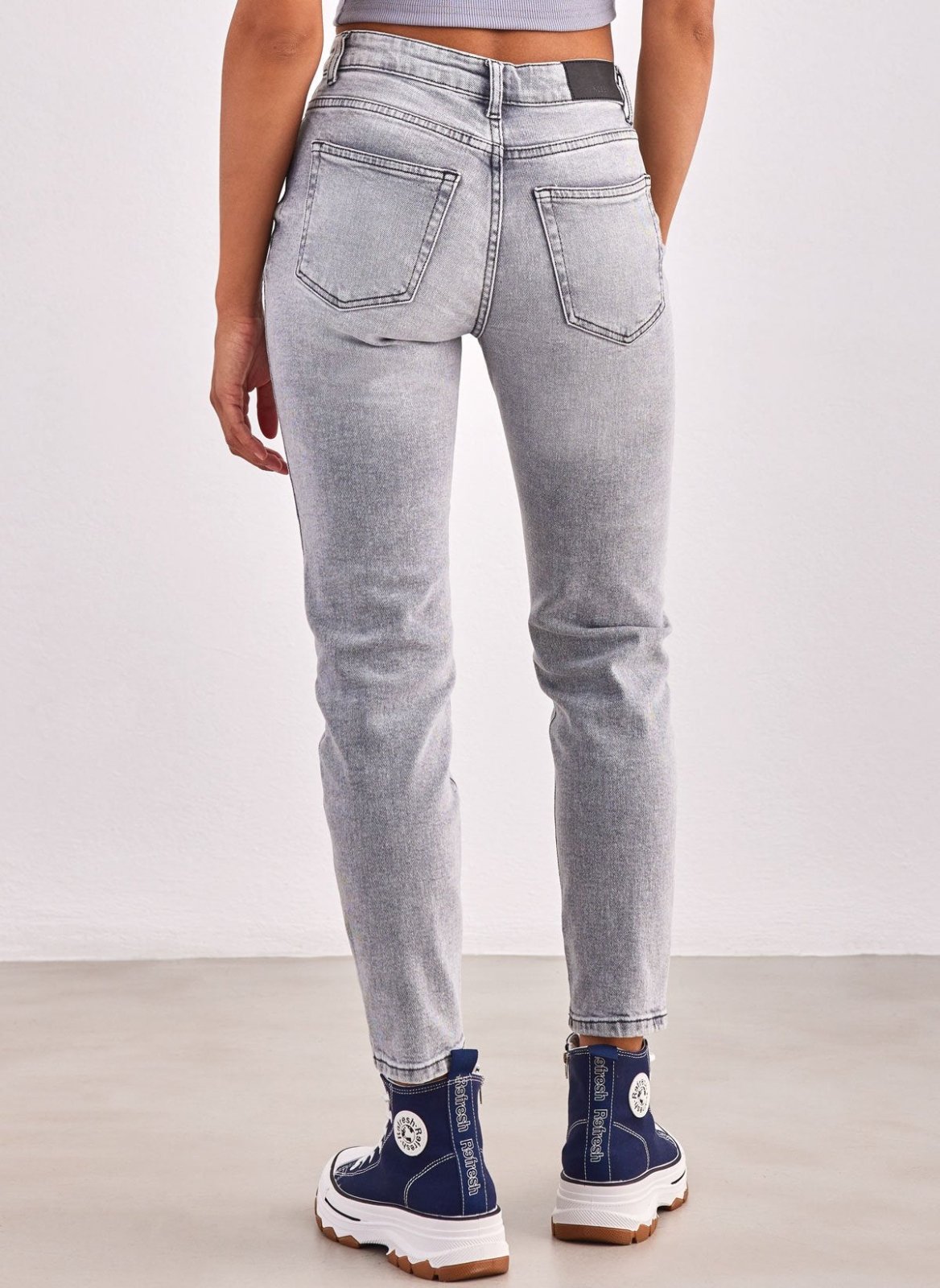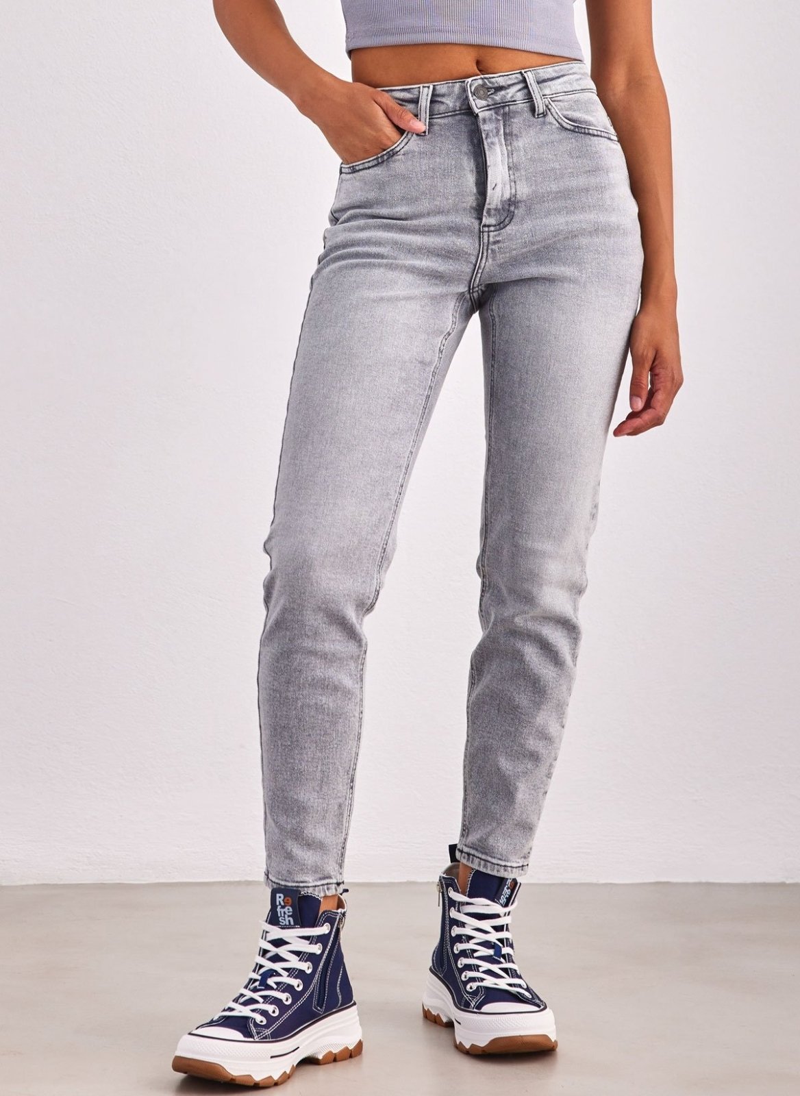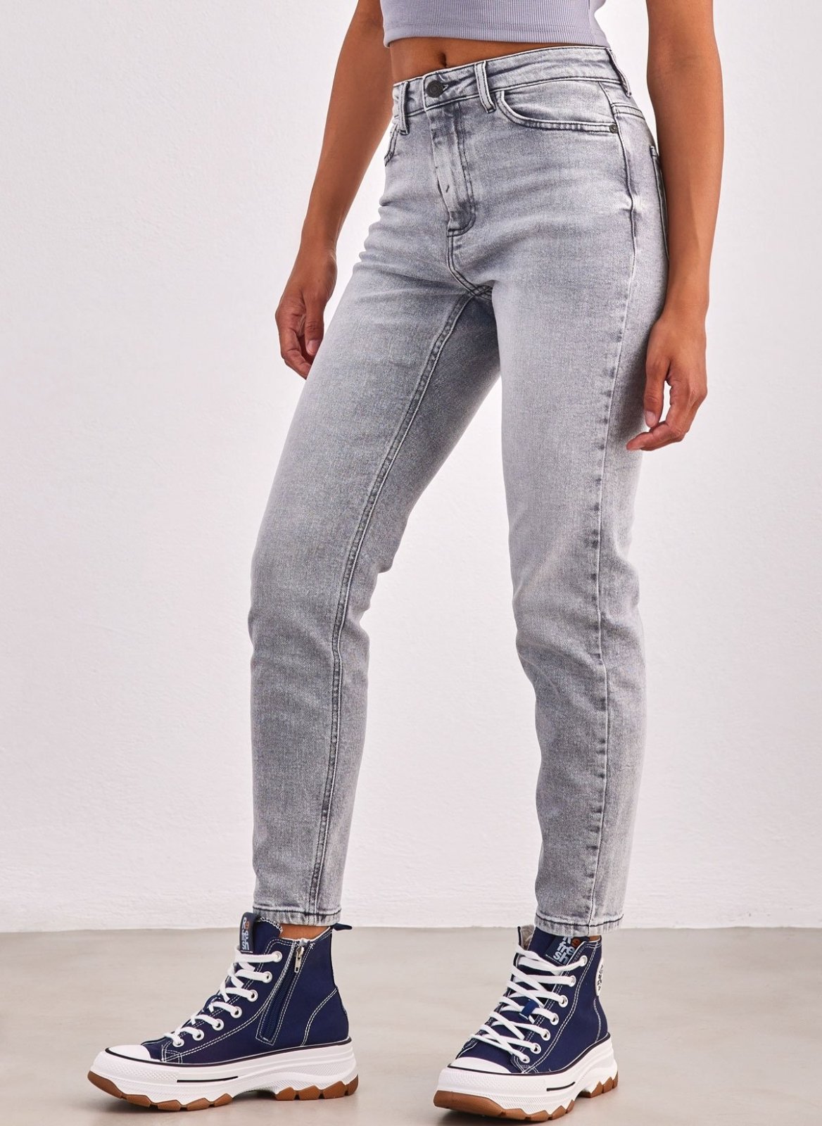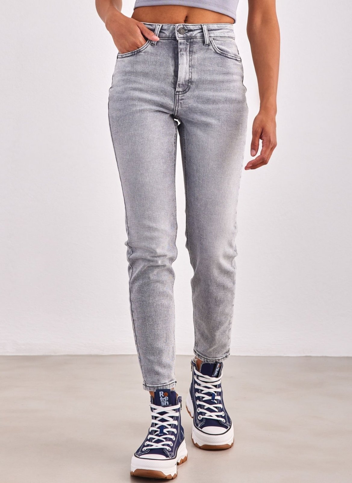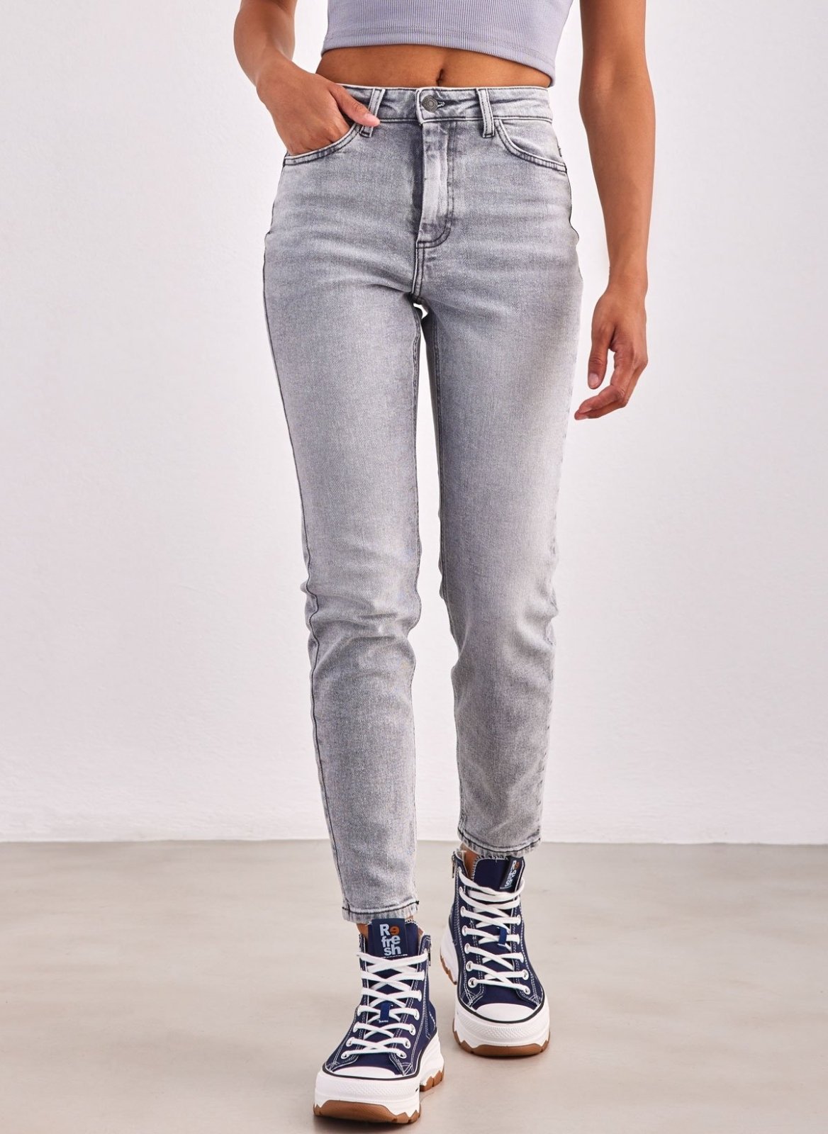 Παντελόνι τζιν ψηλόμεσο Noisy May. Έχει τσέπες στο πλάι και το πίσω μέρος. Ίσια γραμμή.