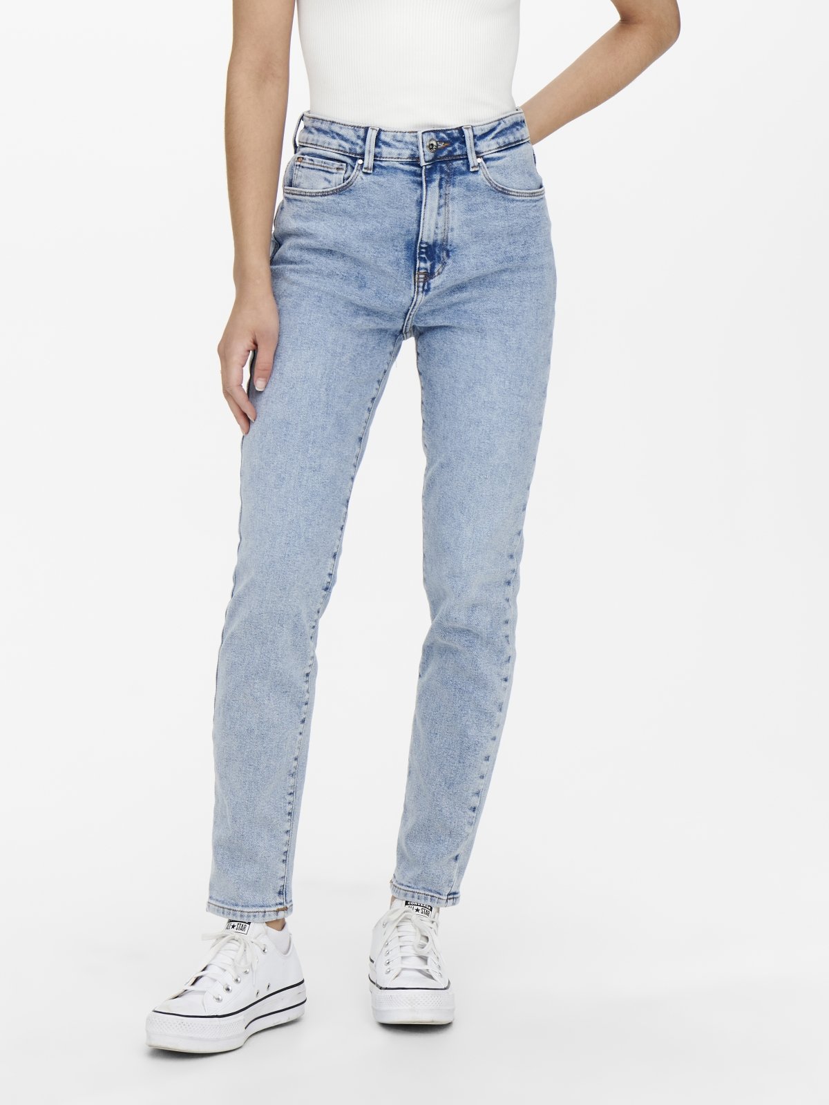 Παντελόνι τζιν straight EMILY ONLY. Ψηλόμεσο σε ίσια γραμμή. Είναι πιο στενό στο τελείωμα. Κλείνει με φερμουάρ και κουμπί. Τσέπες στο πλάι και το πίσω μέρος.