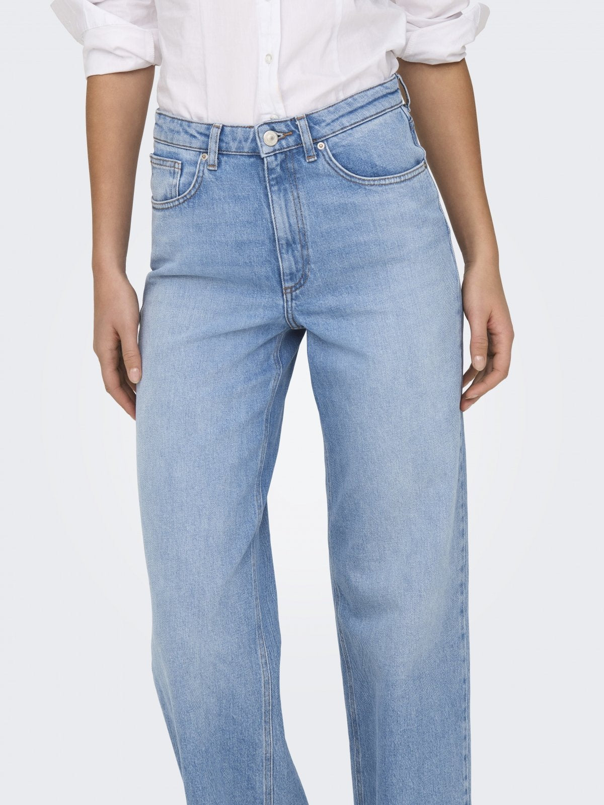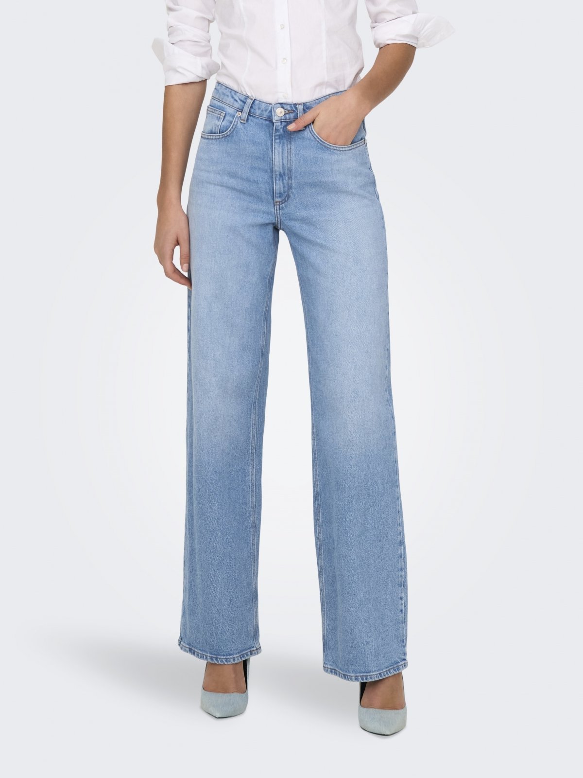 Παντελόνι τζιν JUIICY ONLY. Ψηλόμεσο με wideleg γραμμή στα μπατζάκια. Τσέπες στο πλάι και το πίσω μέρος. Κλείνει με φερμουάρ.