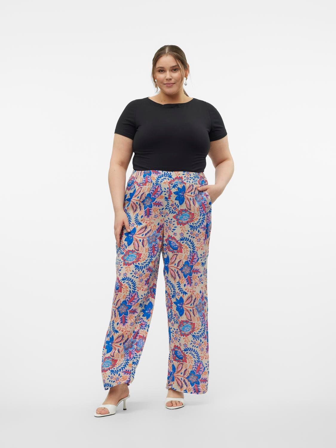 Παντελόνι plus size με print Vero Moda curve. Έχει τσέπες στο πλάι. Φαρδύ λάστιχο στη μέση.