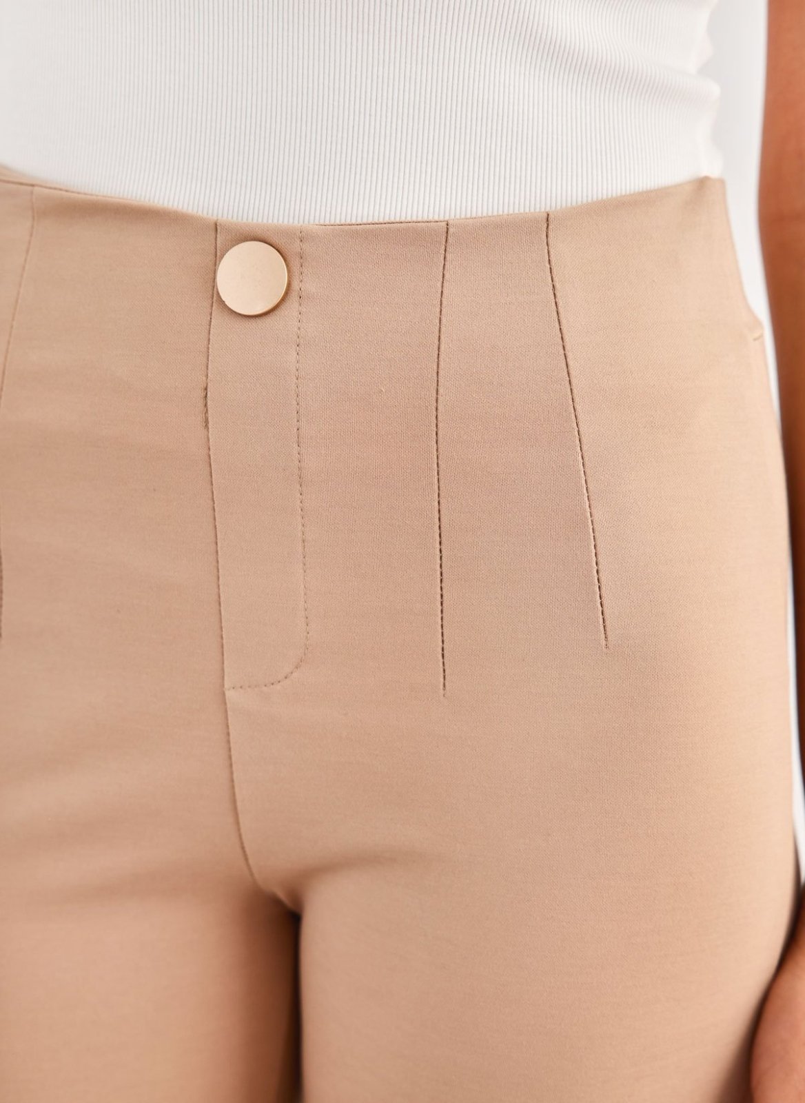 Παντελόνι υφασμάτινο με εφέ κουμπί - Μπεζ