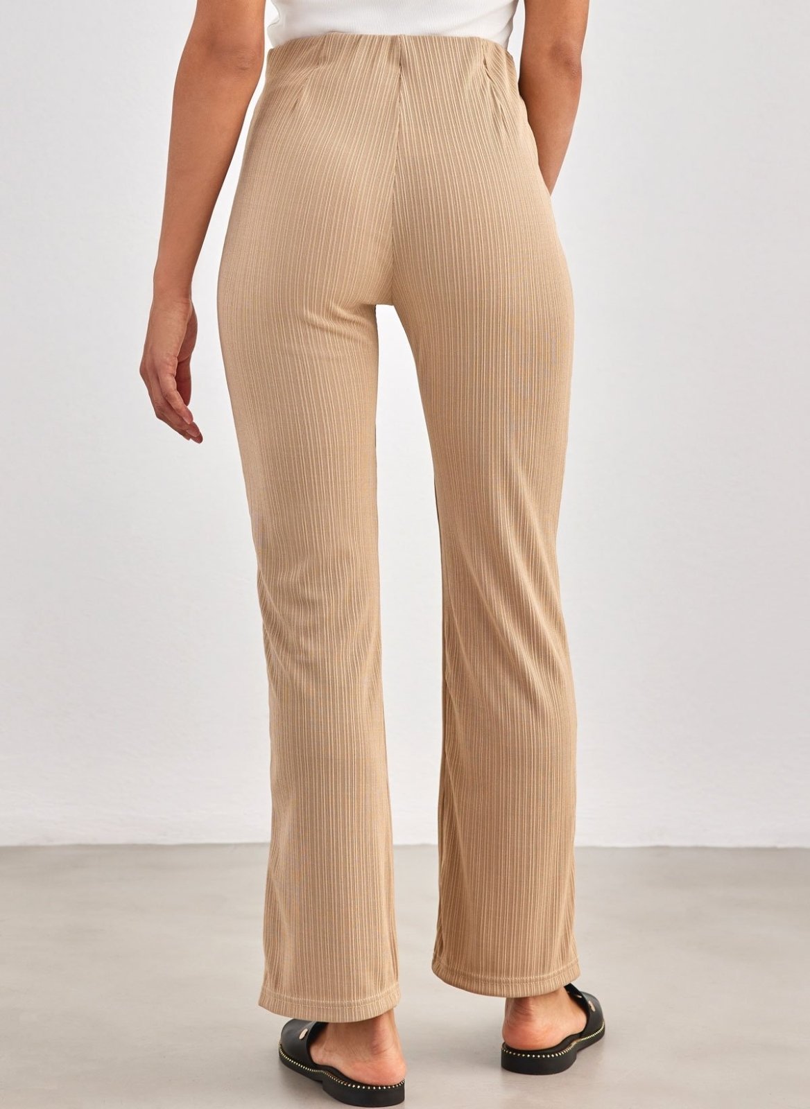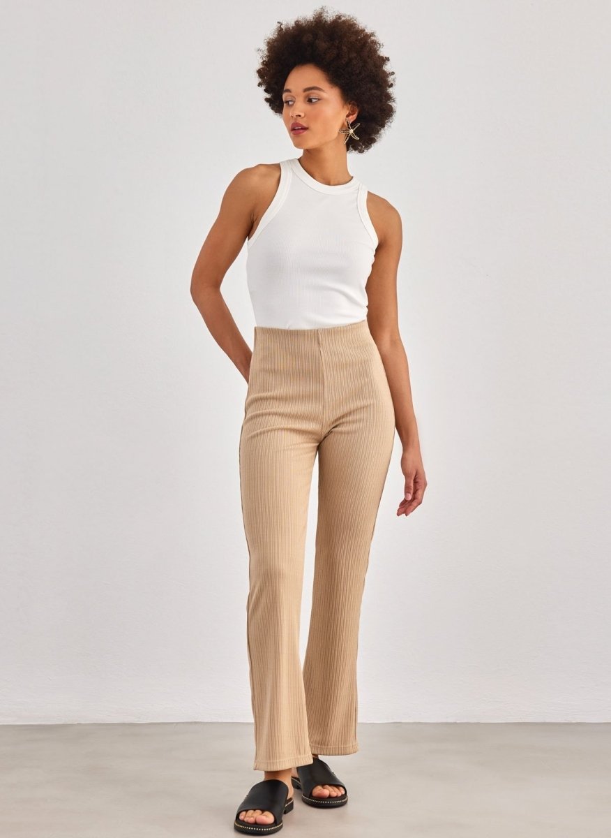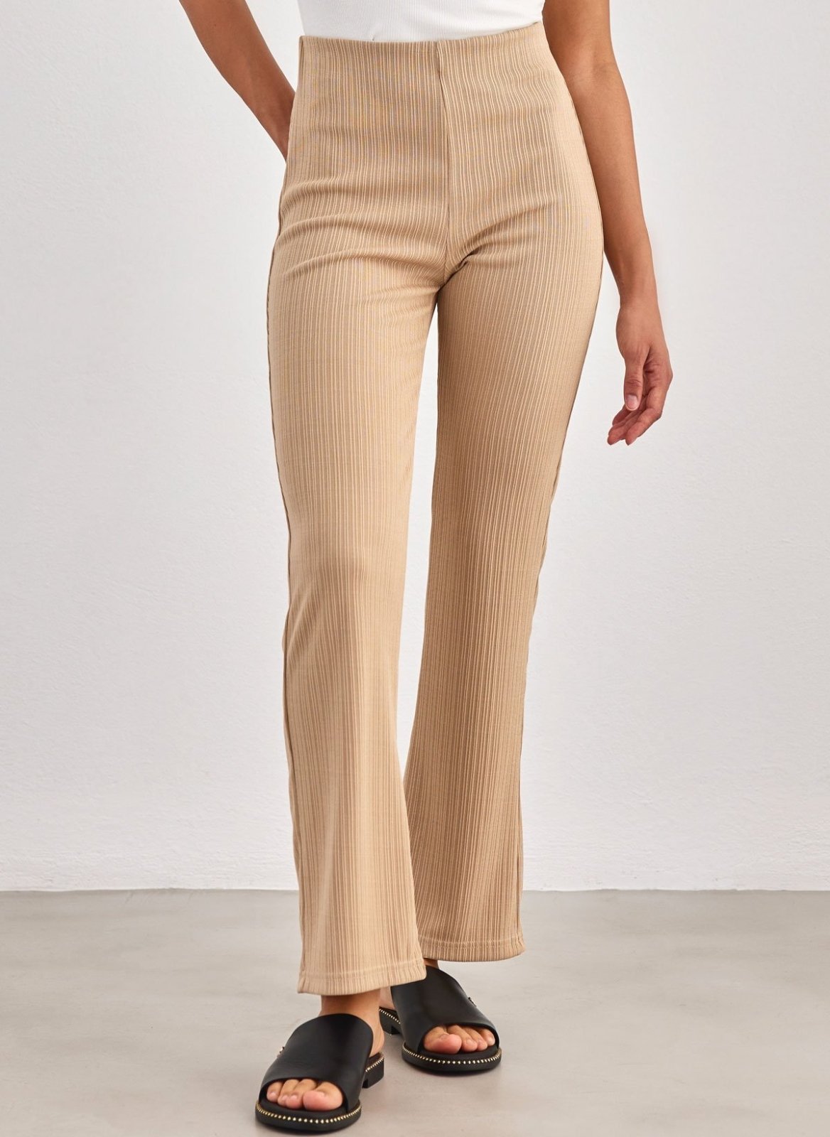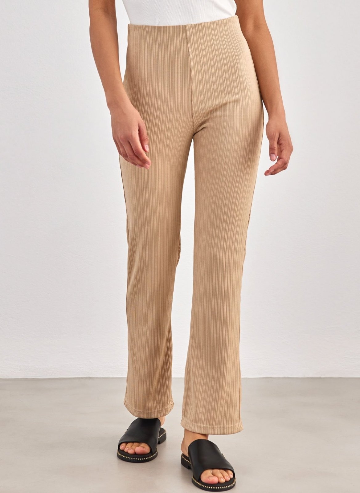 Παντελόνι υφασμάτινι με ελαστική πλέξη και ανάγλυφη ρίγα στην ύφανση. Ψηλόμεσο με εφαρμοστή γραμμή. Ίσιο τελείωμα στα μπατζάκια.