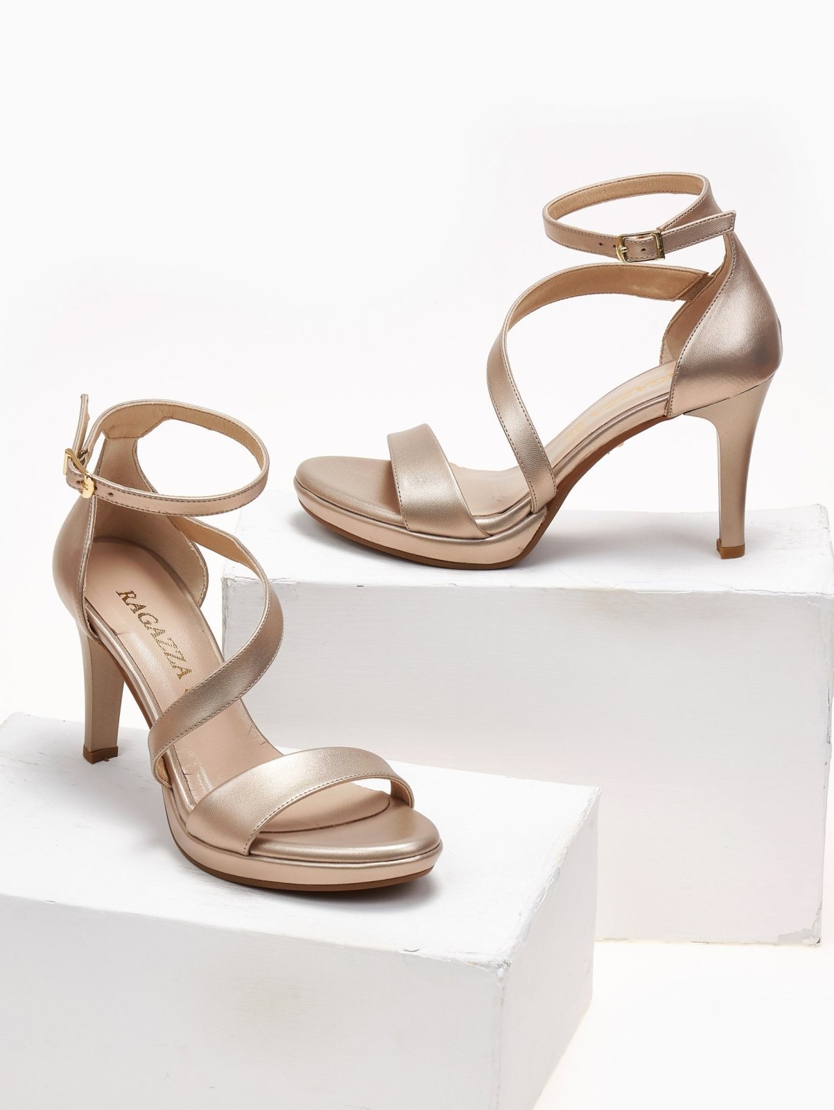 Πέδιλα δερμάτινα με λεπτή φιάπα Rafazza. Έχουν φάσα στα δάκτυλα και λοξό λουράκι στο ύψος του κουτεπιέ. Κλειστή φτέρνα. Δένουν με μπαρέτα στο ύψος του αστραγάλου. Δερμάτινος πάτος. Ελληνικής κατασκευής.