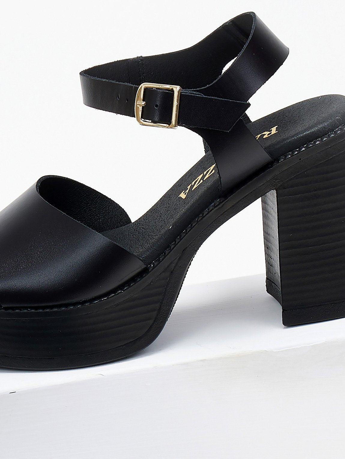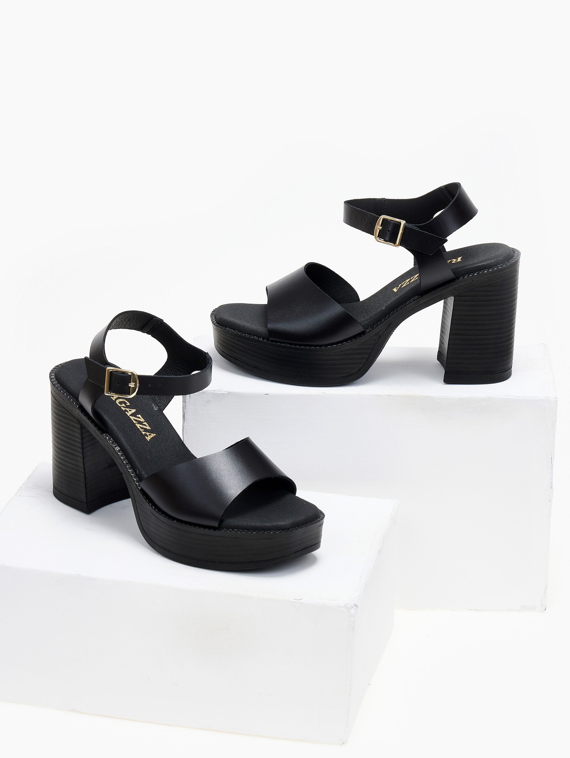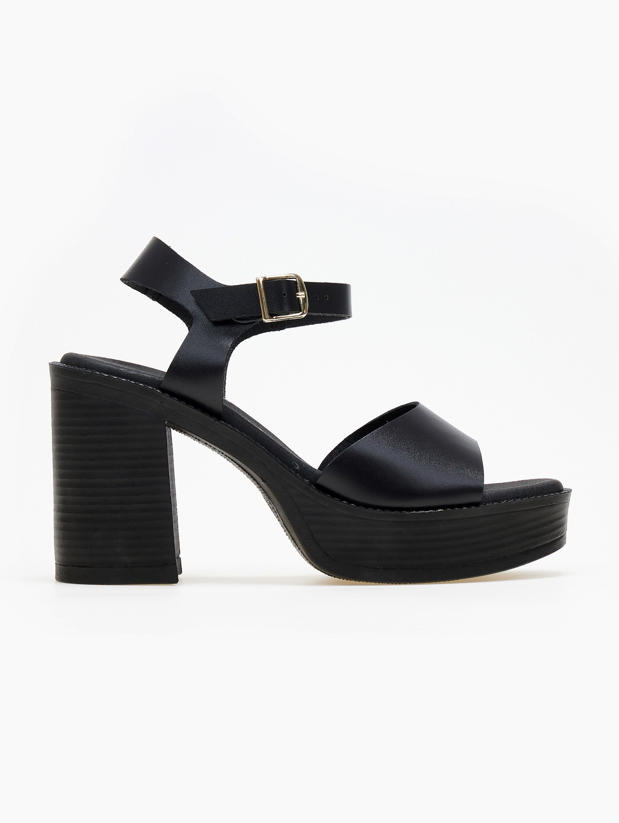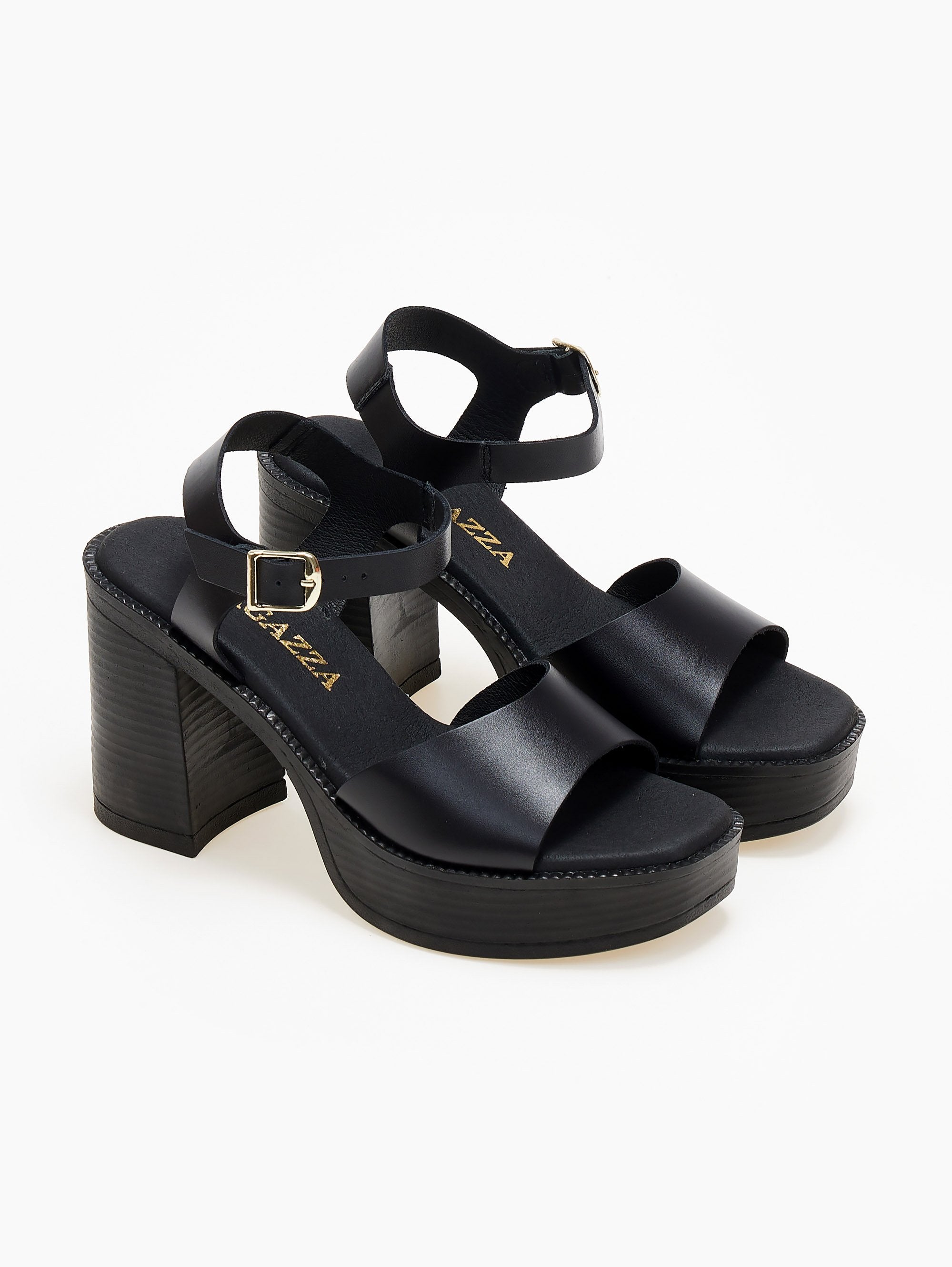 Leather platform sandals with ankle strap and a wood-effect heel for stable lift. Dryflex adds breathability, shock absorption and odor control. Crafted for modern women.