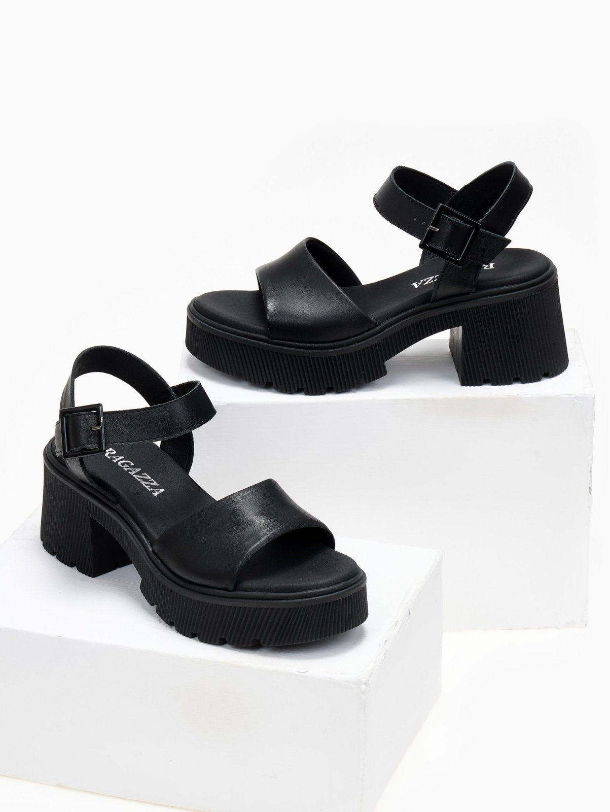 Πέδιλα δερμάτινα Ragazza 01242 - Μαύρο