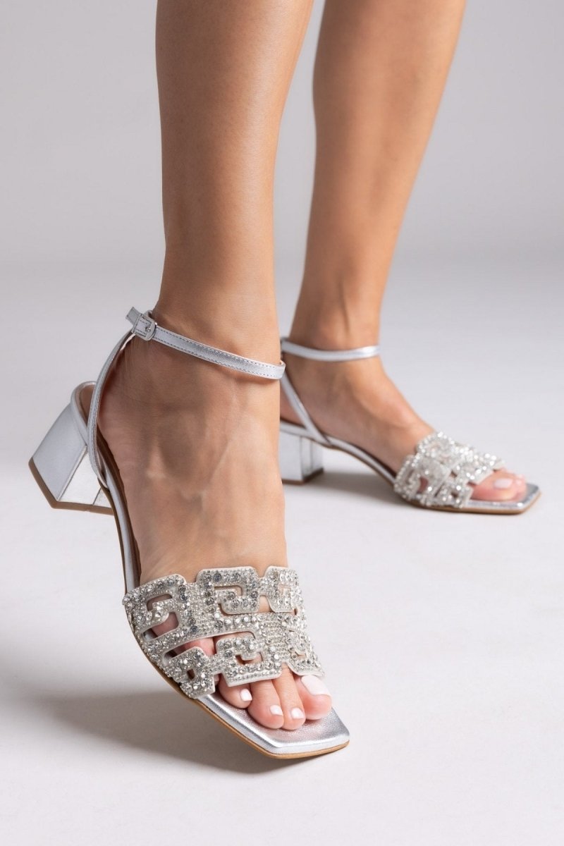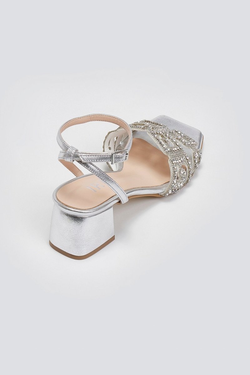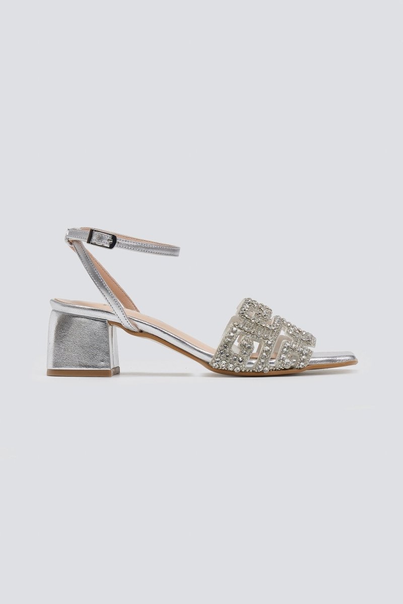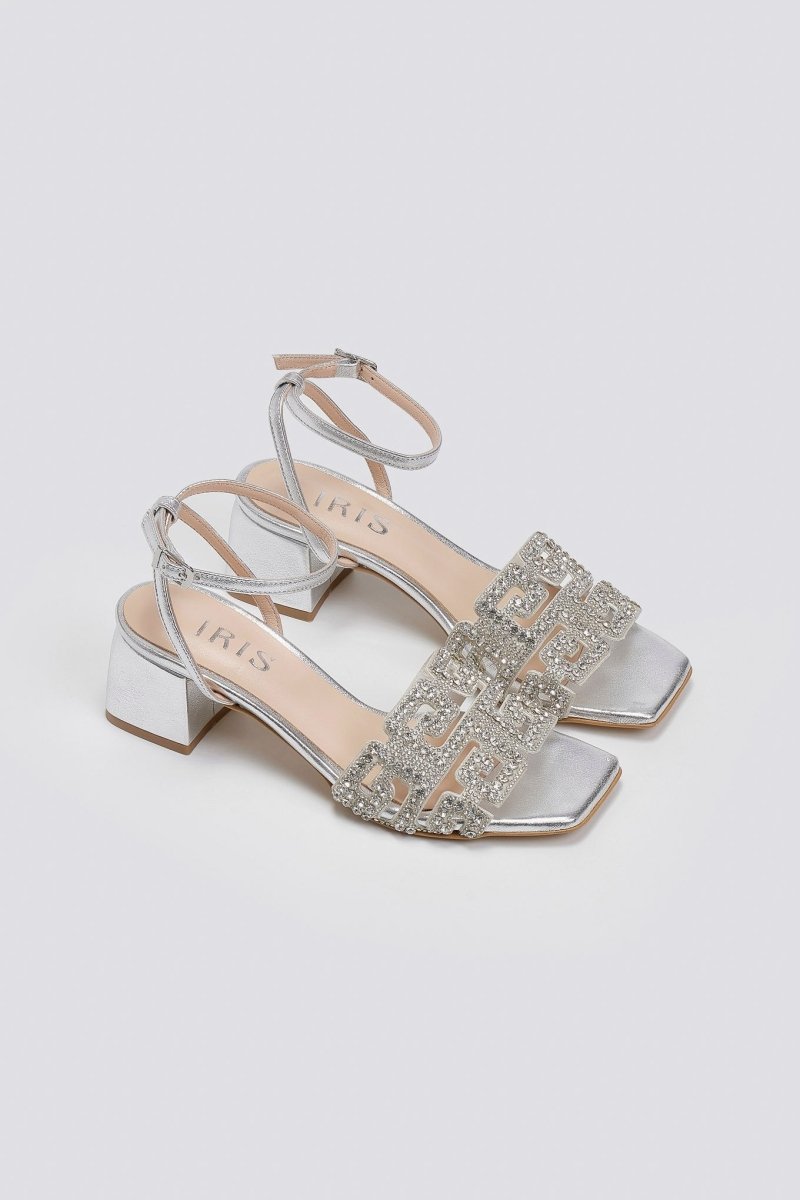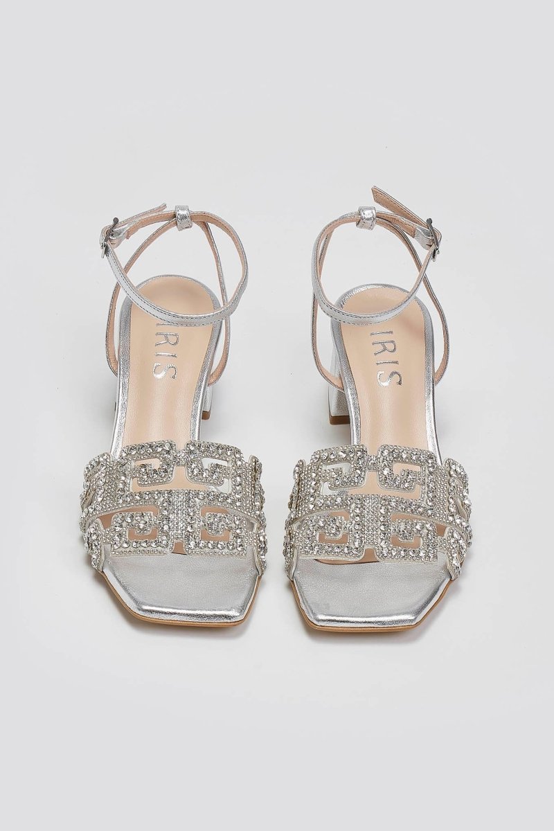 Πέδιλα δερμάτινα με στρας φάσα Iris sandals - Ασημί
