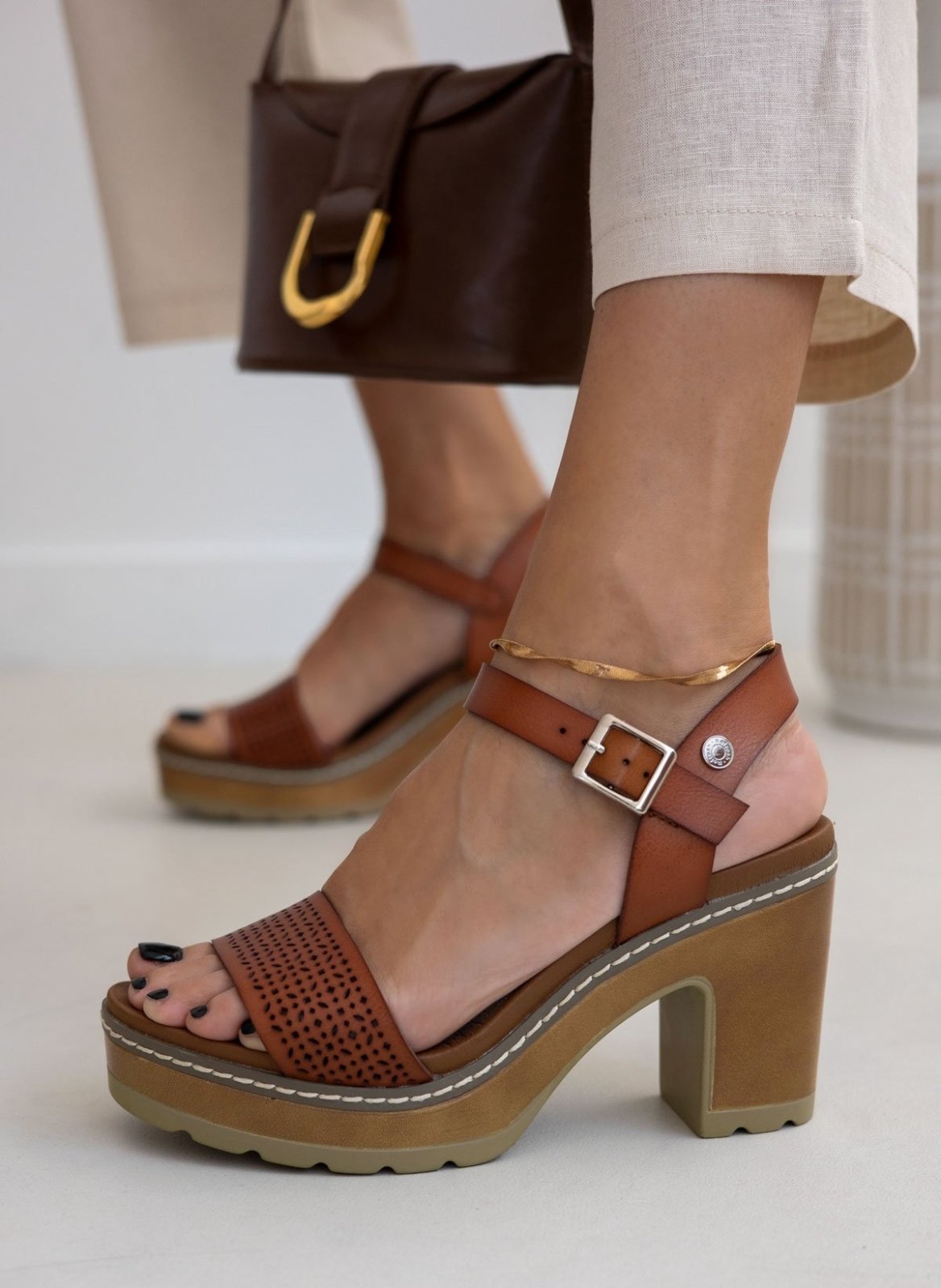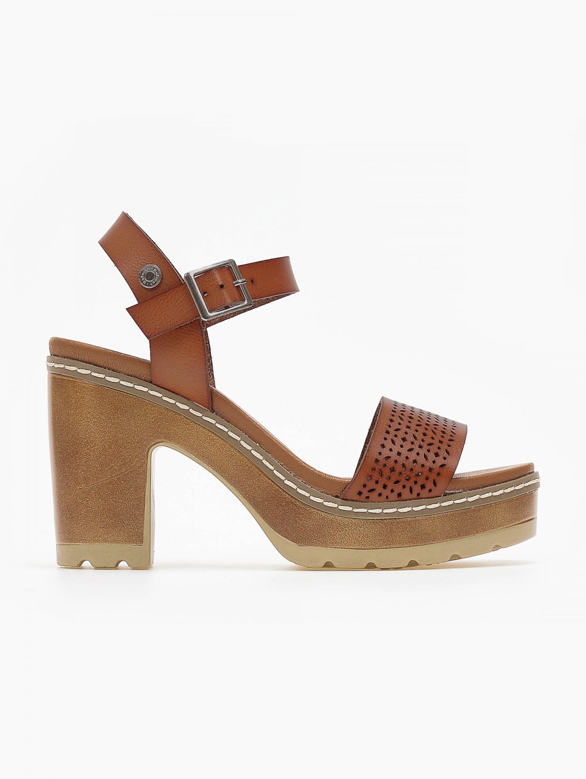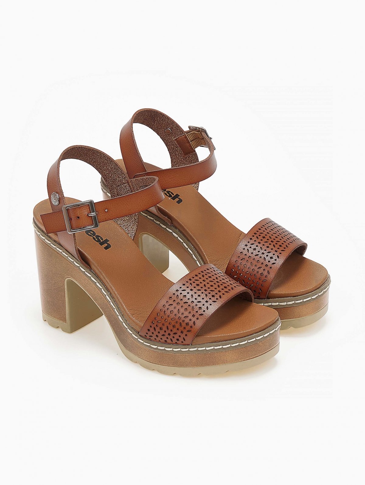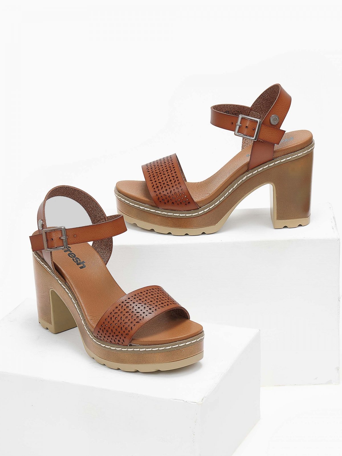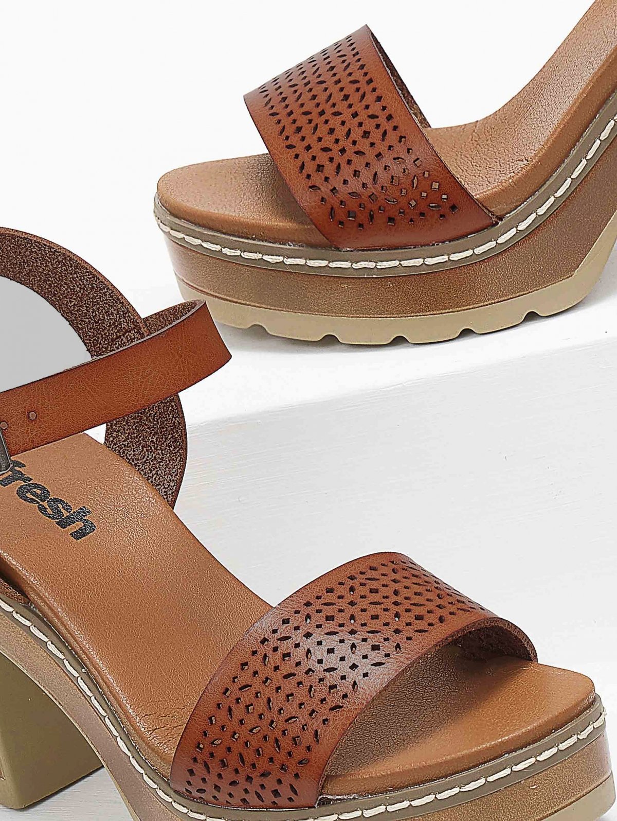 Πέδιλα Refresh με διάτρητο σχέδιο στη φάσα. Δένουν με μπαρέτα στο ύψος του αστραγάλου. Ελαφριά σόλα με εξωτερική ραφή. Χοντρό τακούνι. Peta vegan approved.