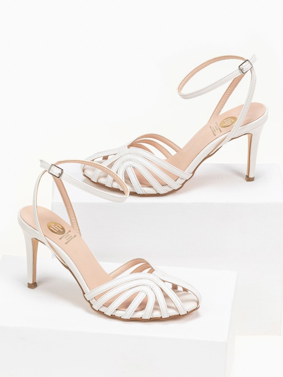 Ρετρό TFP πέδιλα σε μεταλλικές αποχρώσεις. Δένουν με χιαστί λουράκια στο ύψος του αστραγάλου. Ελληνικής κατασκευής.