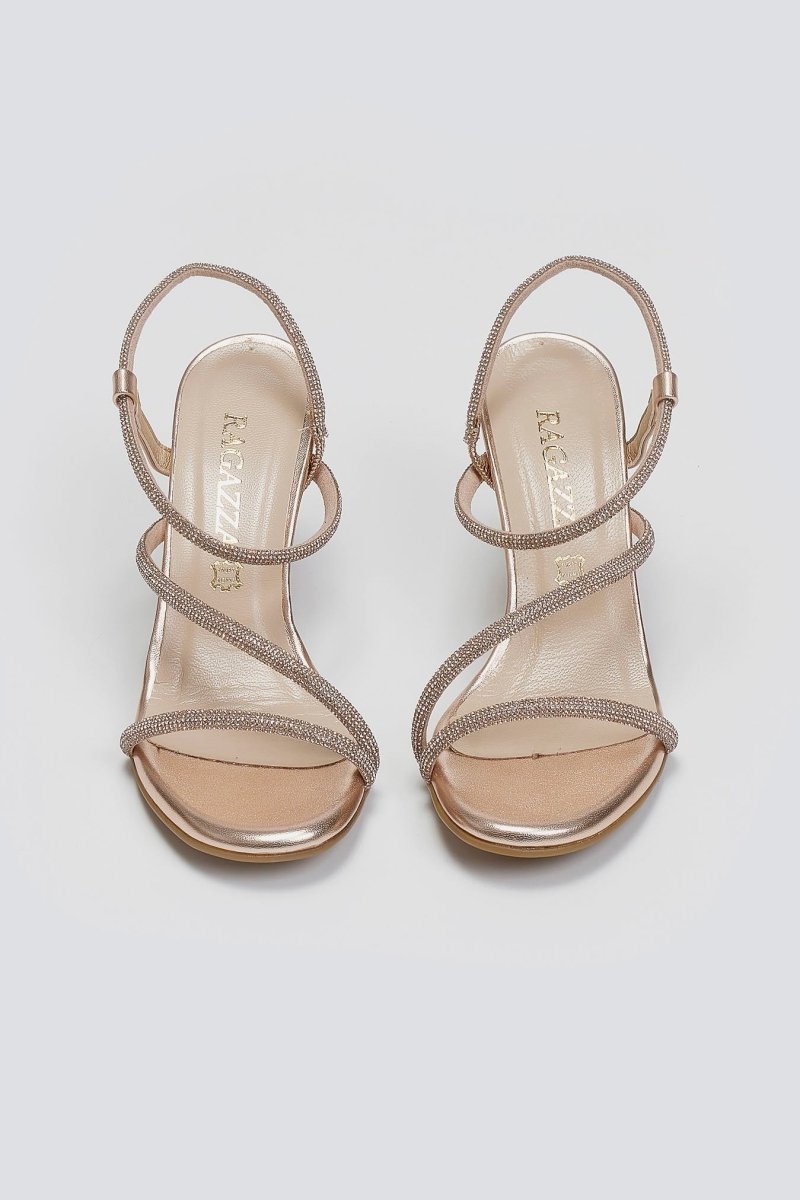 Πέδιλα με περαστό στρας λουράκι Ragazza - Χαλκός