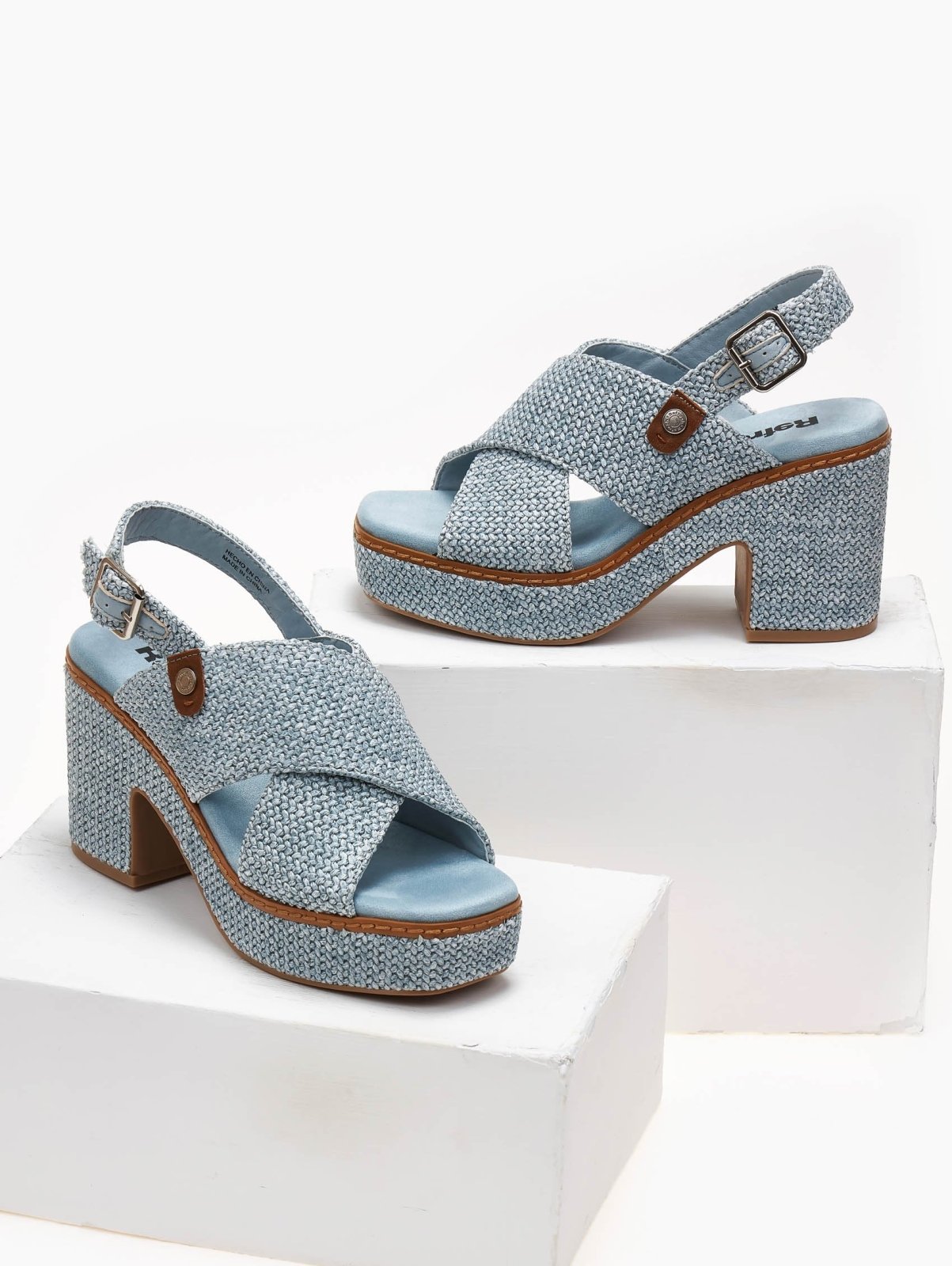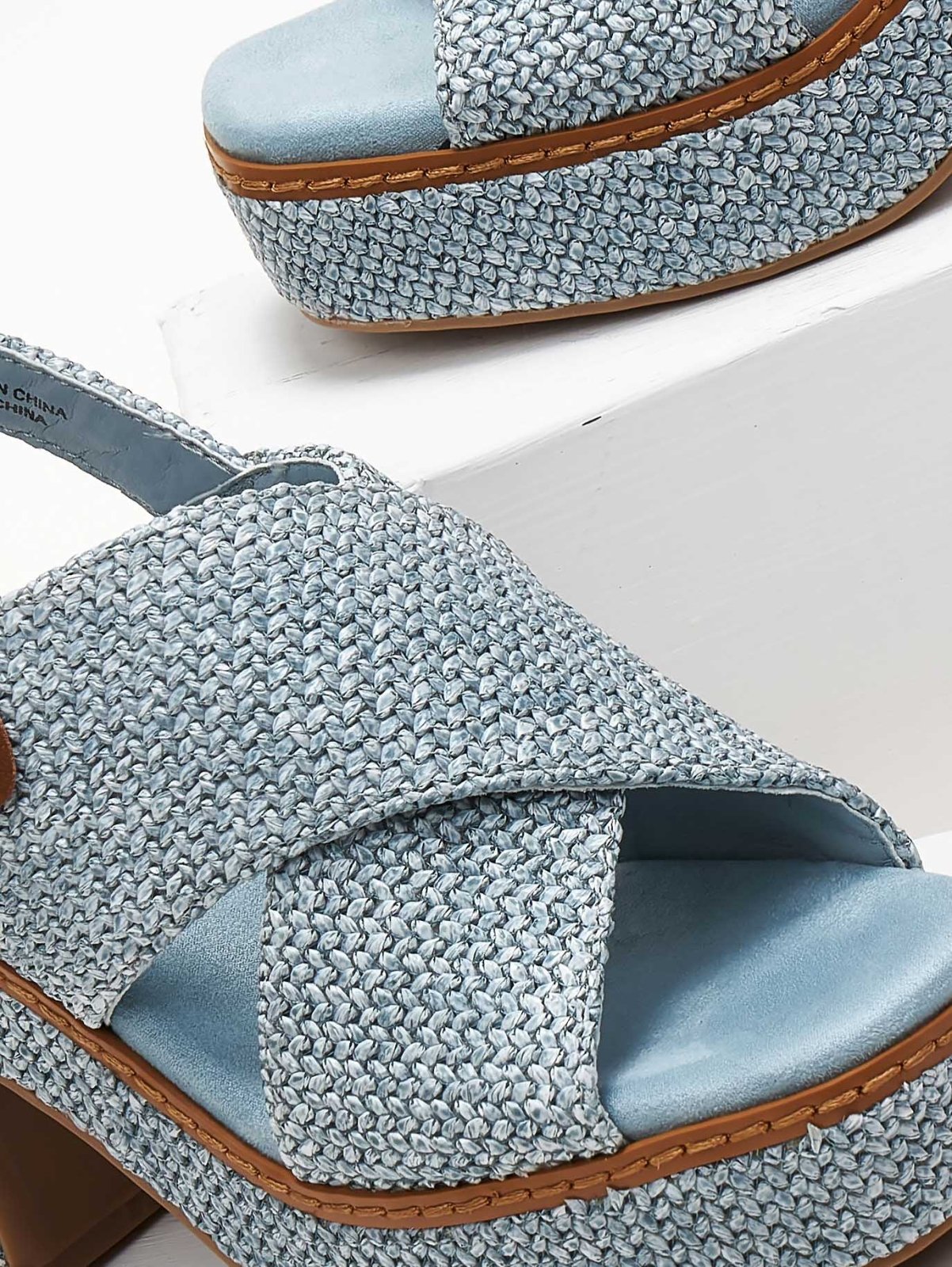 Platforms πέδιλα απο ψάθα Refresh. Έχουν φαρδιές crossover φάσες. Λεπτομέρεια εξωτερική ραφή στη σόλα. Δένουν με λουράκι με μεταλλικό τοκά. Comfort μαλακός πάτος με τεχνολογία Biotech Memory Foam pro. Peta Vegan Approved.
