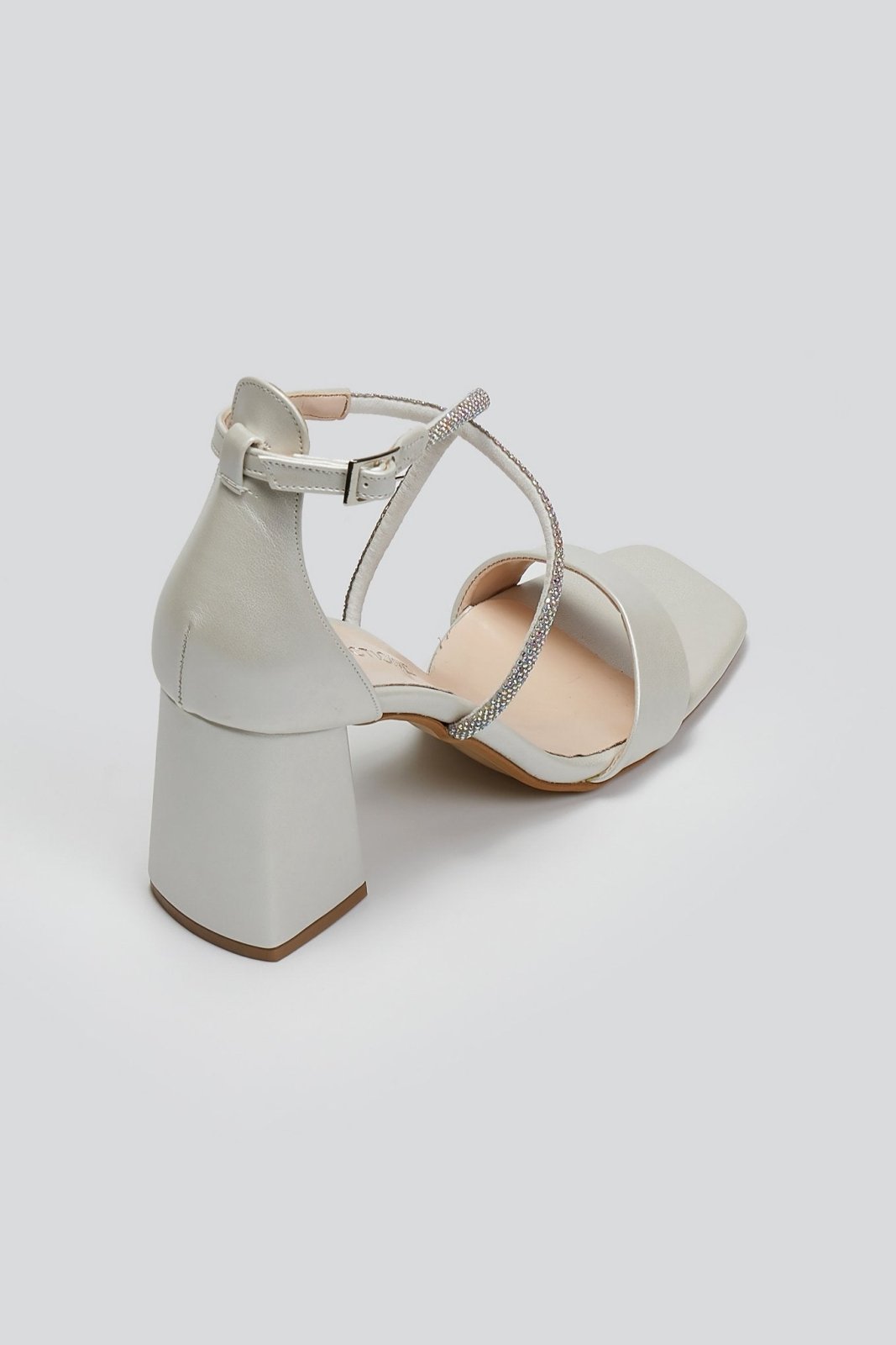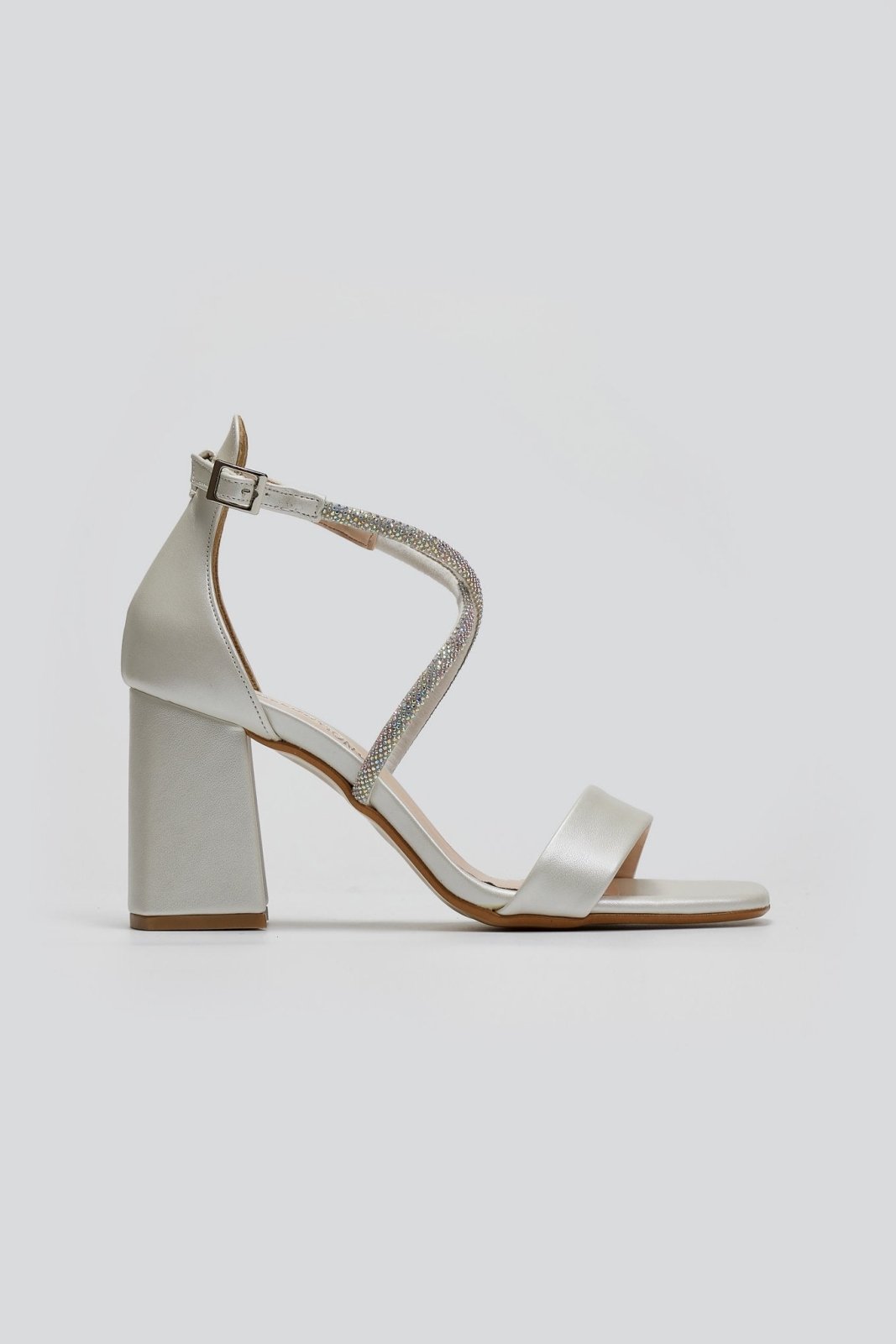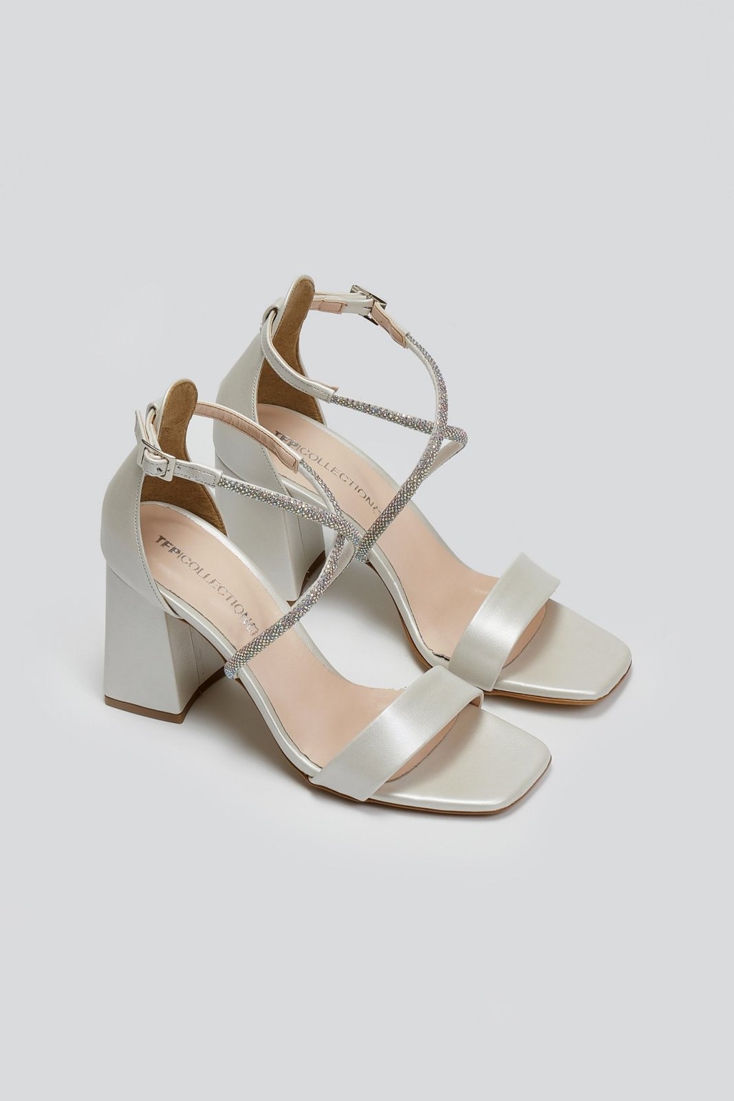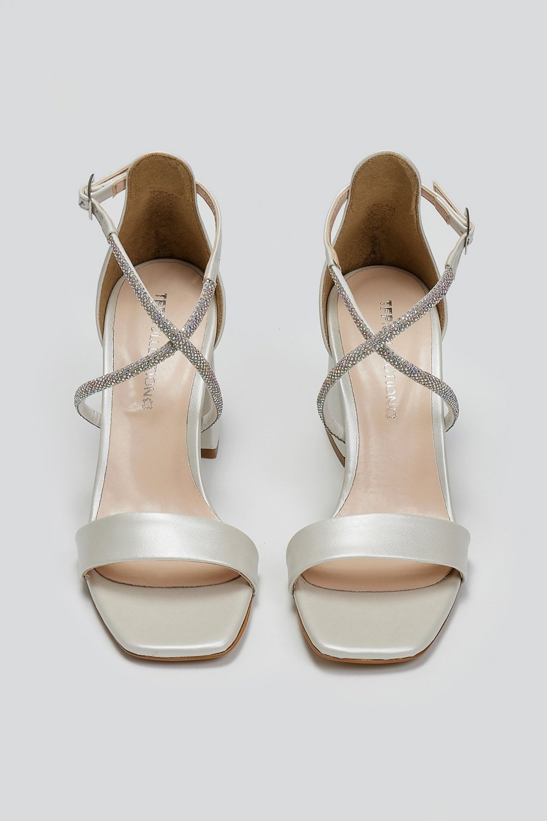 Πέδιλα σατέν crossover με στρας TFP - Λευκό Πέρλα