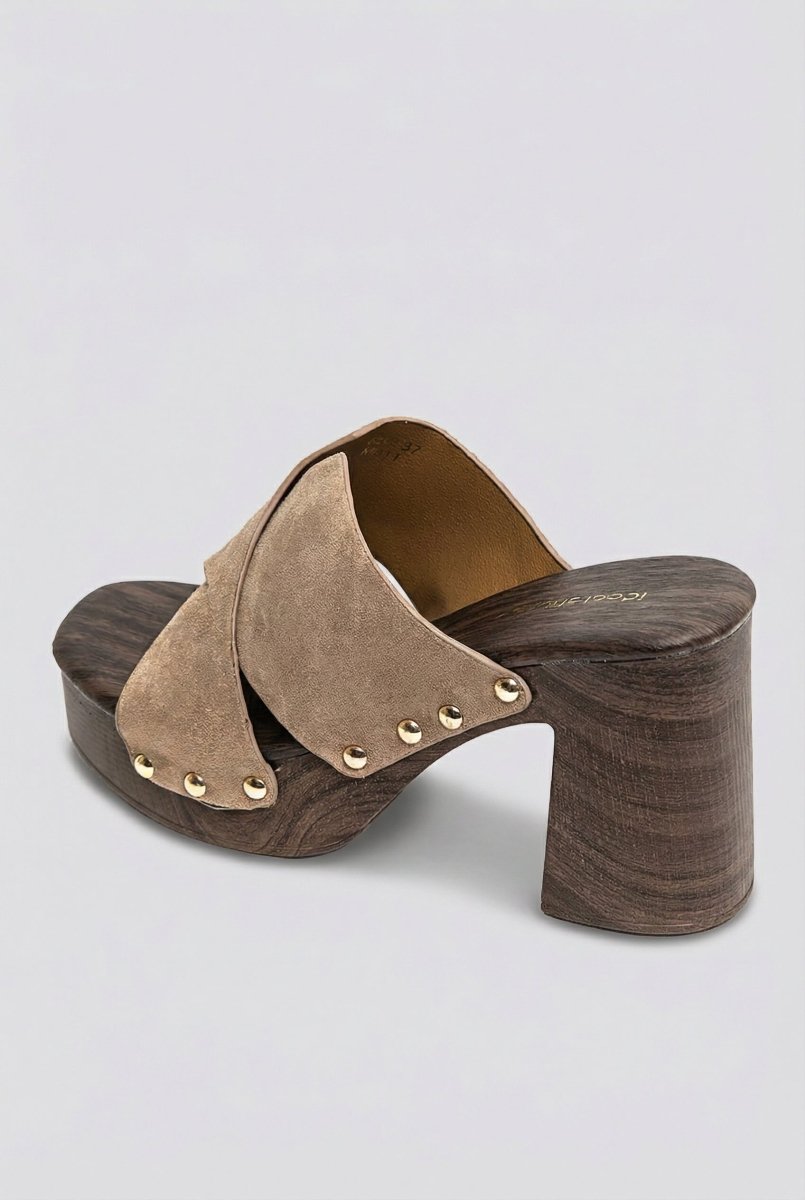 Platform Mules Stud Detail - Taupe Suede