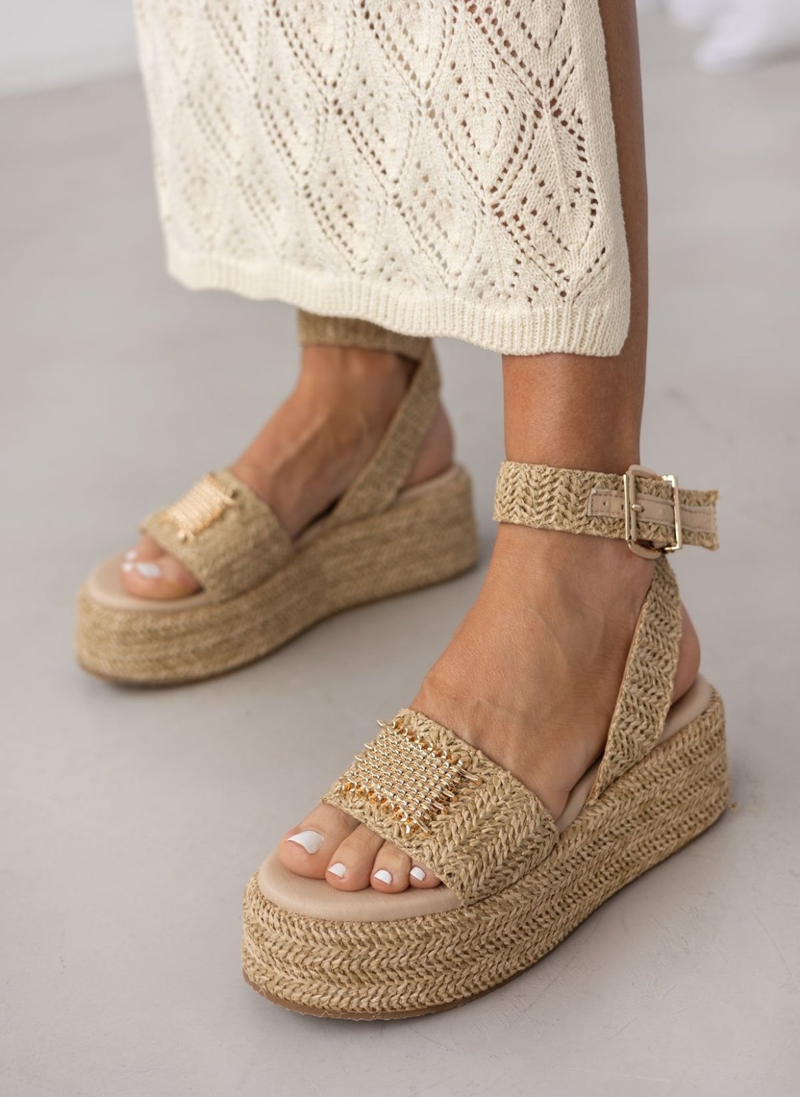 Woven Straw Platforms - Μπεζ