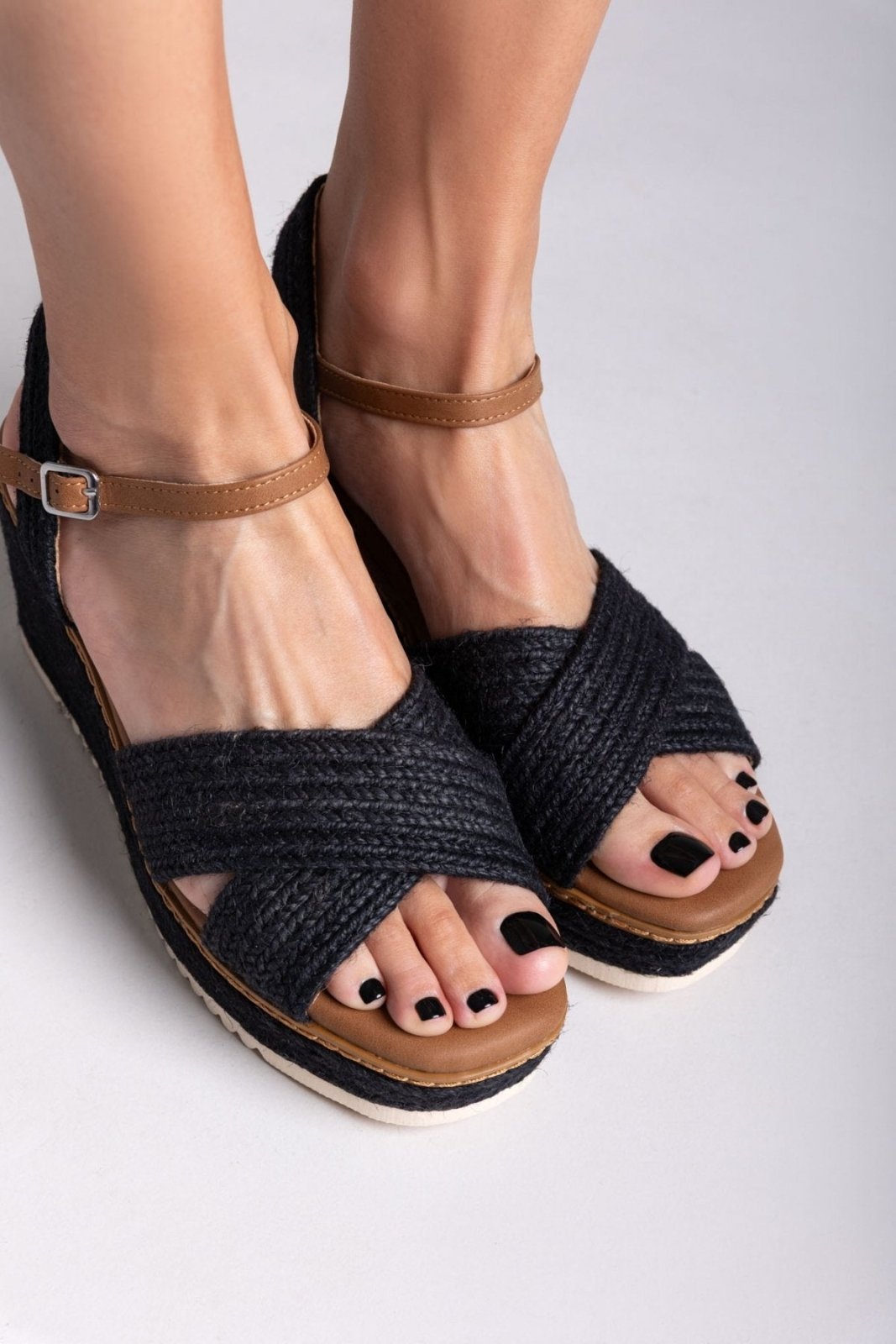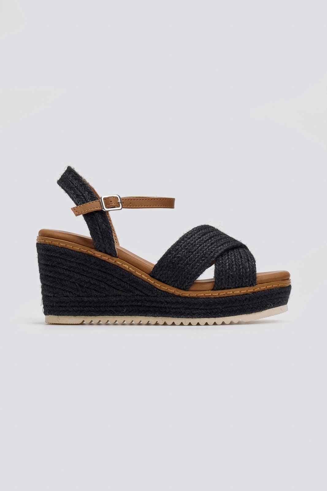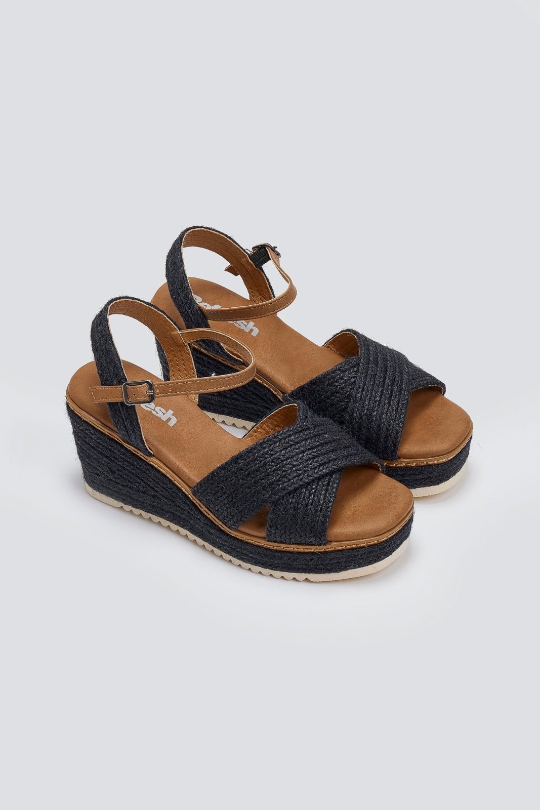 Πλατφόρμες από σχοινί REFRESH. Έχουν crossover φάσες στα δάκτυλα. Δένουν με μπαρέτα στο ύψος του αστραγάλου. Comfort μαλακός πάτος με τεχνολογία Biotech Memory Foam pro. Peta Vegan Approved.