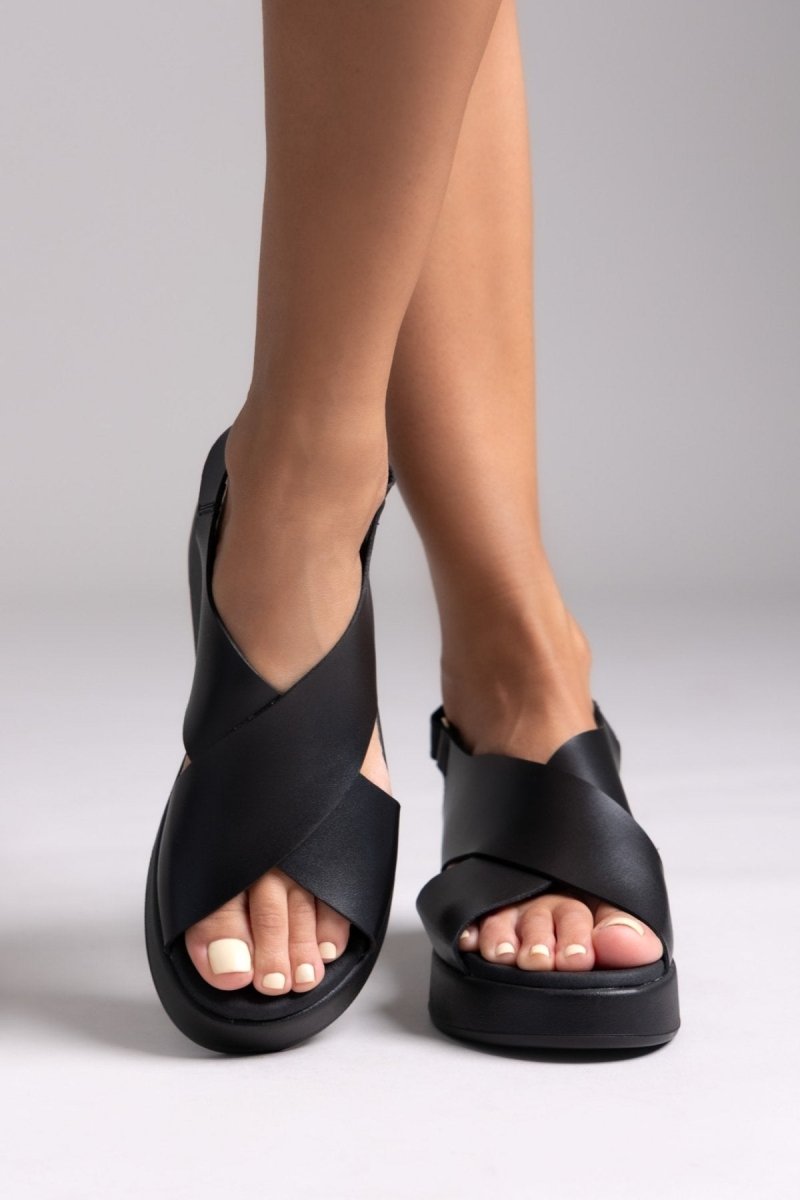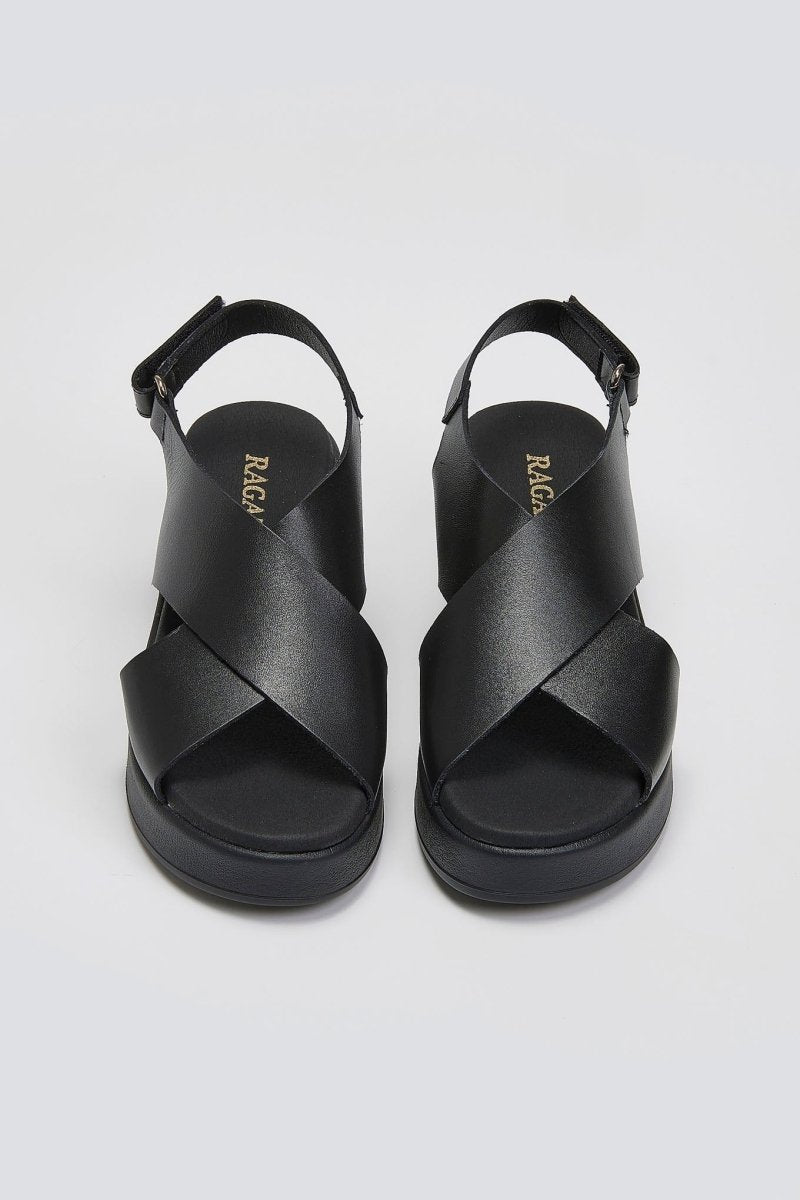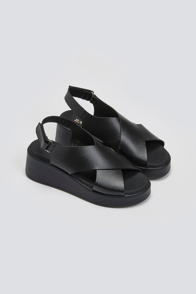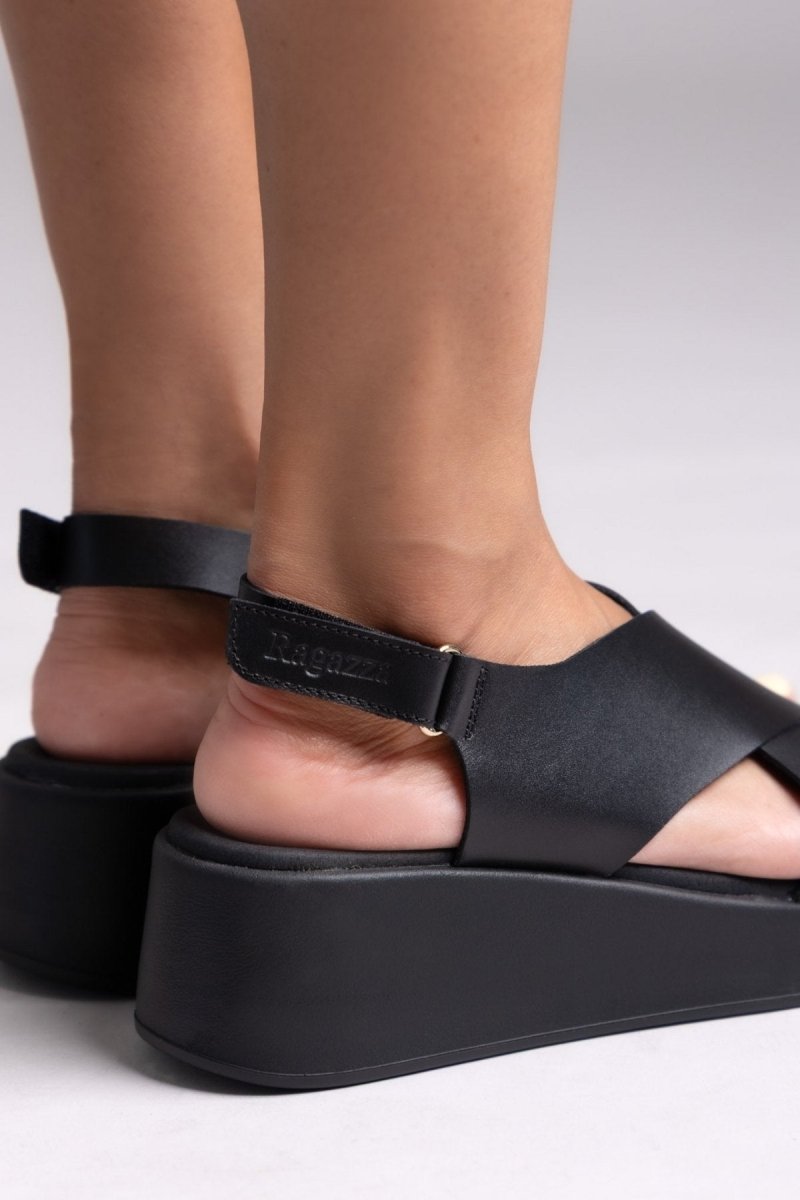 Πλατφόρμες δερμάτινες crossover Ragazza 01137 - Μαύρο