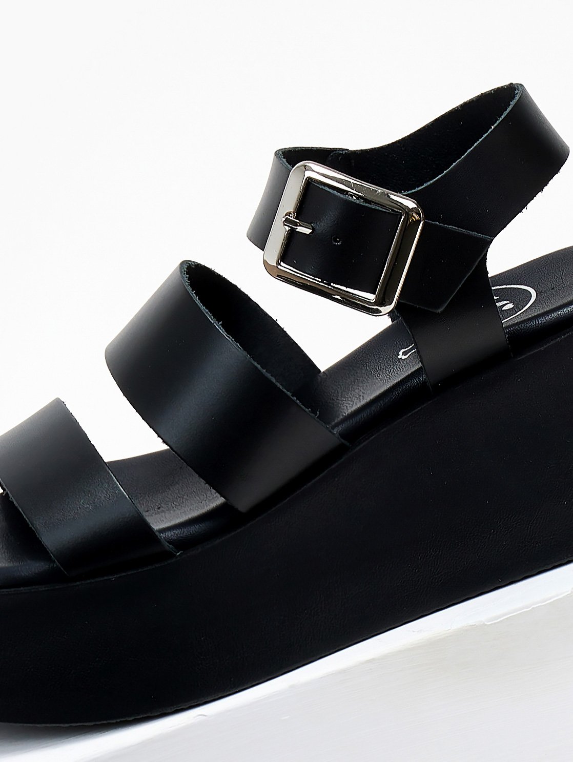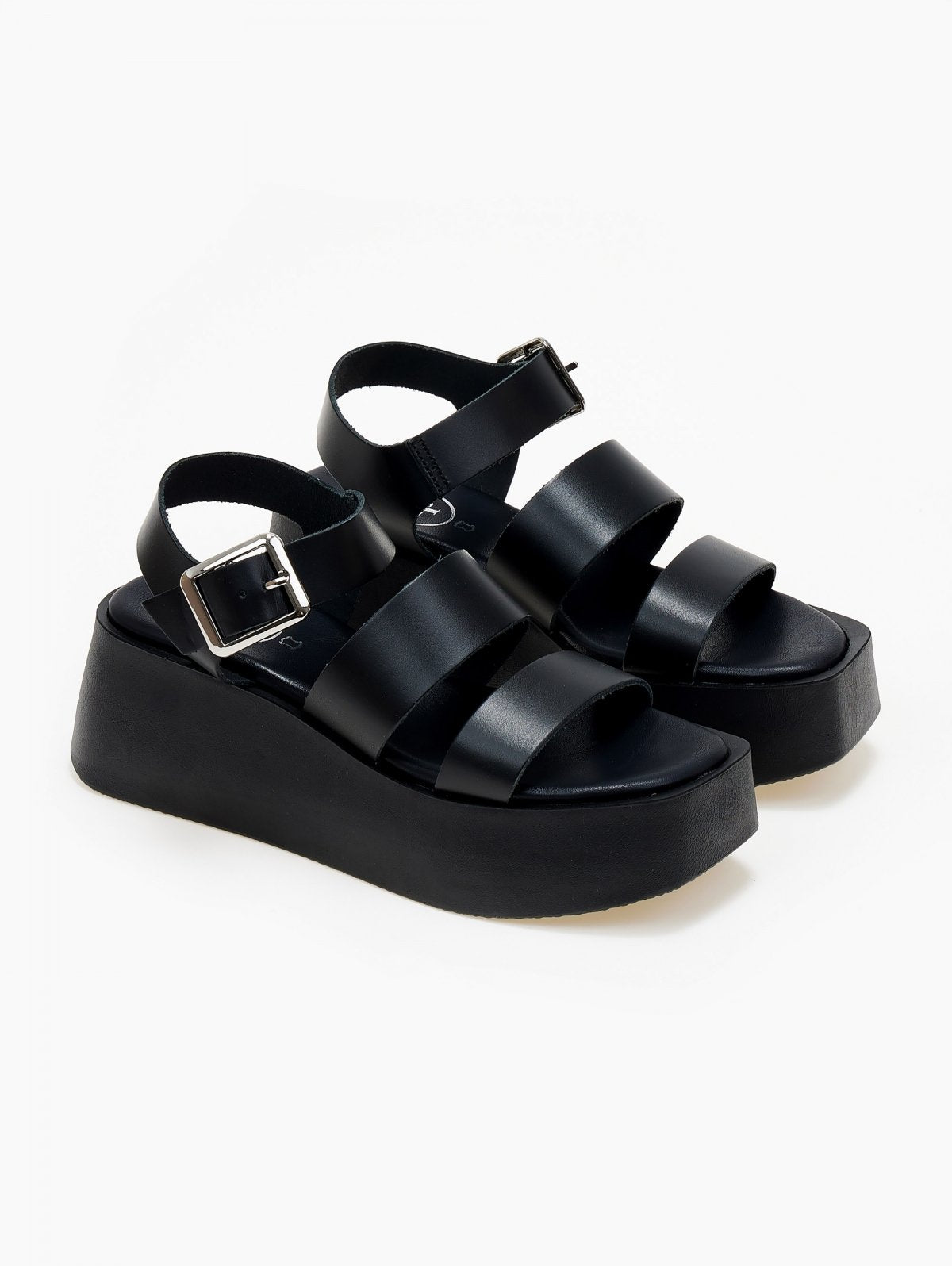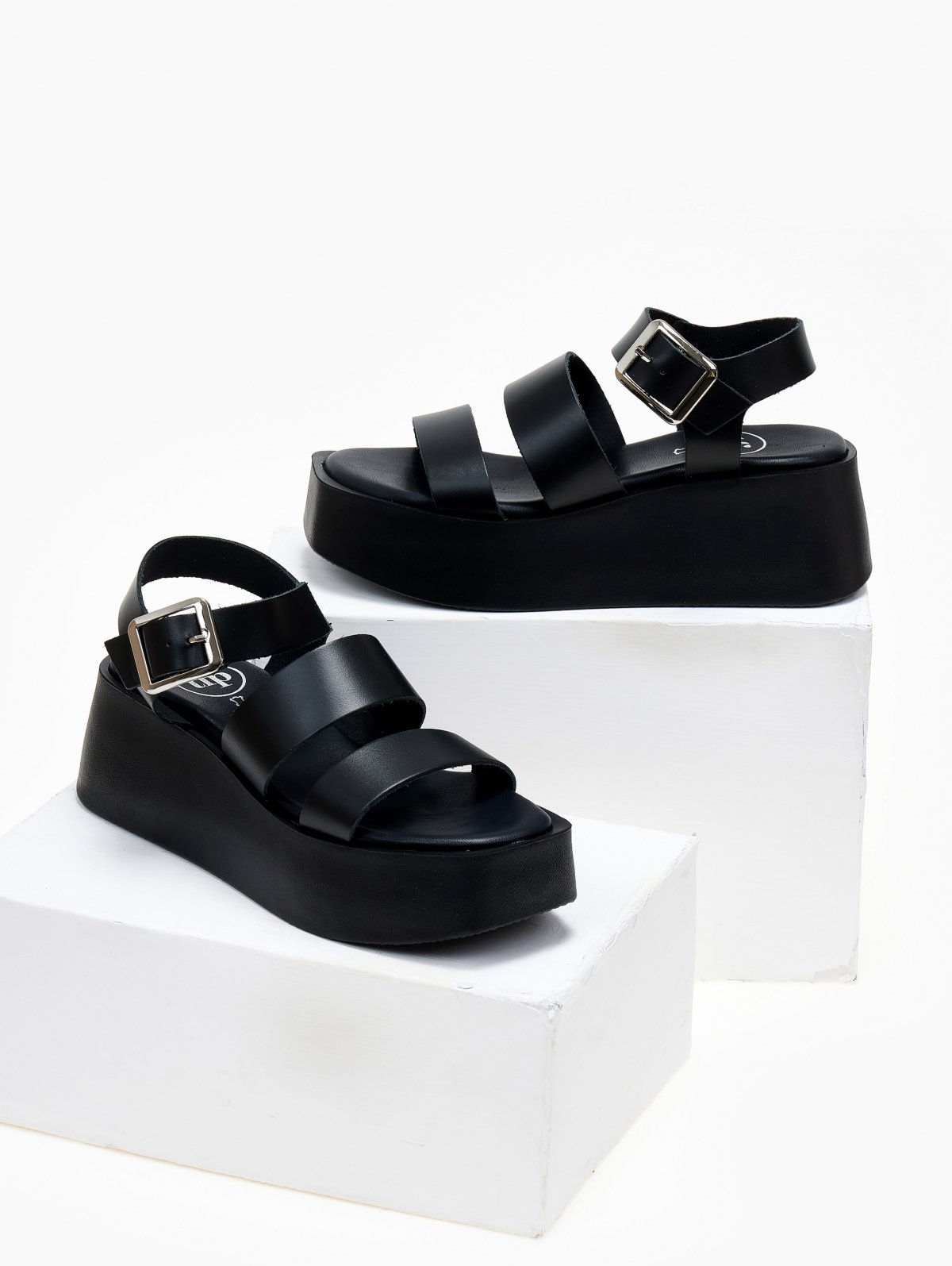 Πλατφόρμες δερμάτινες με διπλή φάσα TFP - Μαύρο