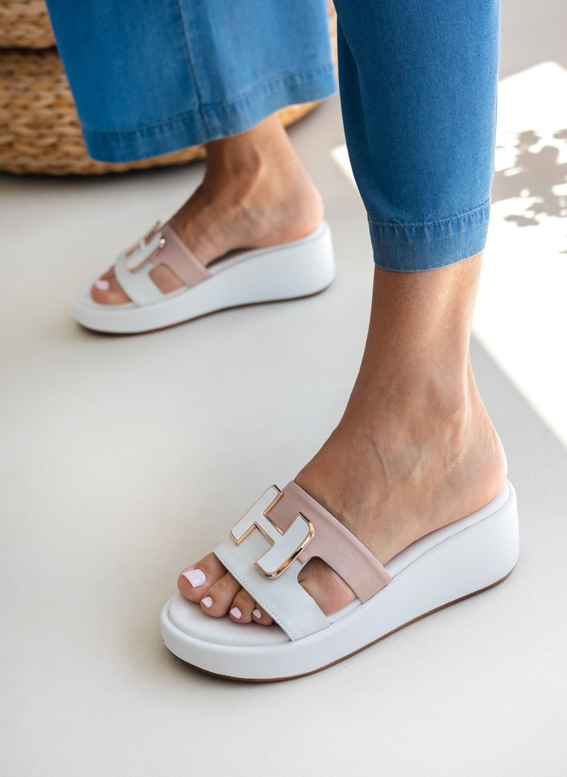 Πλατφόρμες δερμάτινες Mariella Fabiani 2441/75 - Λευκό/Nude