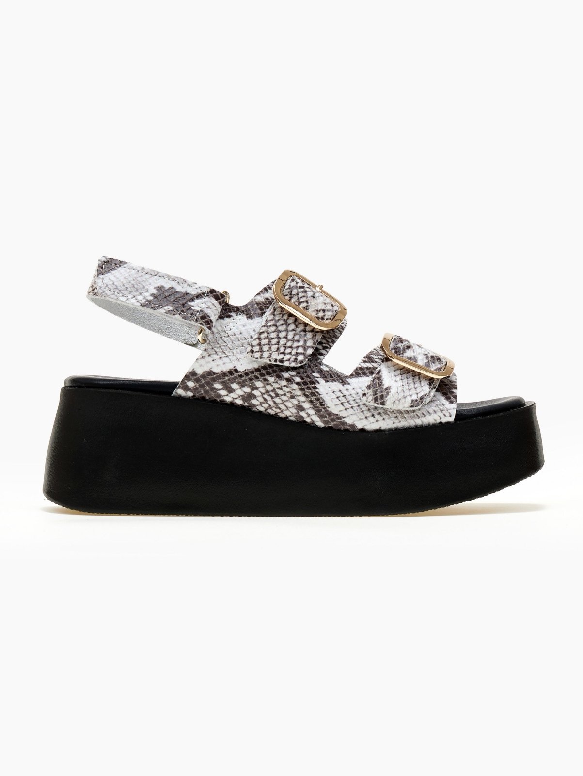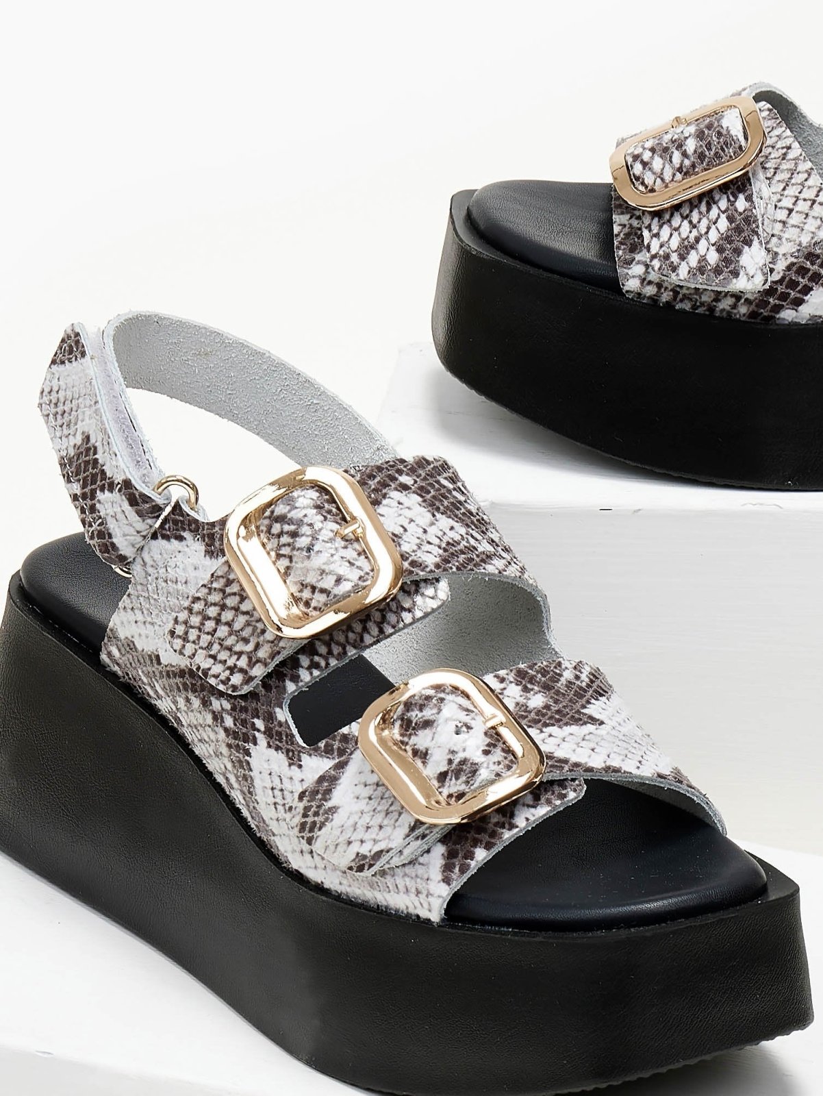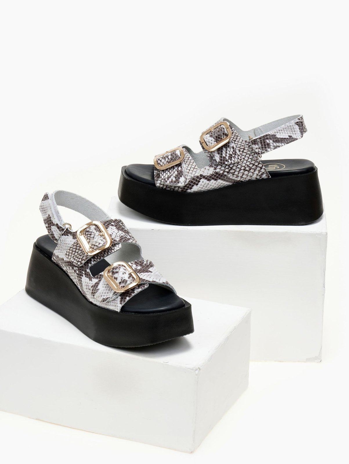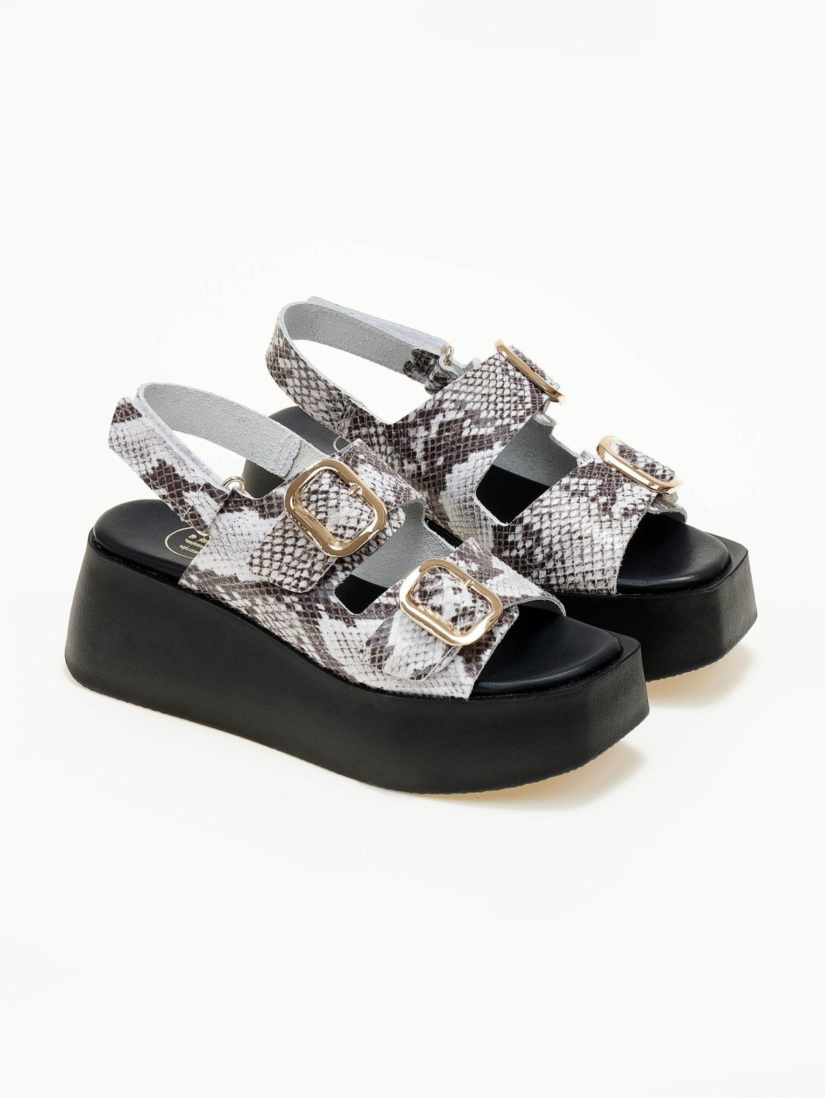 Πλατφόρμες δερμάτινες με animal print TFP. Φαρδιές φάσες με μεγάλους τοκάδες. Κλείνουν στο πλάι με velcro αυτοκόλλητο. Δερμάτινος πάτος με ενίσχυση. Ελληνικής κατασκευής.