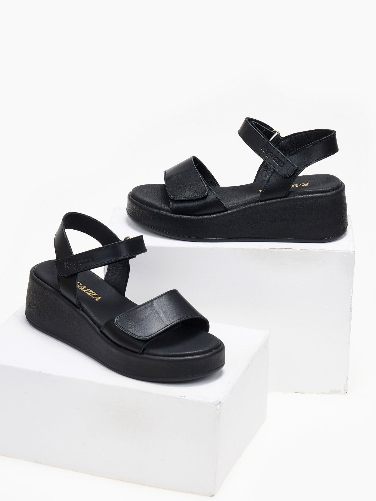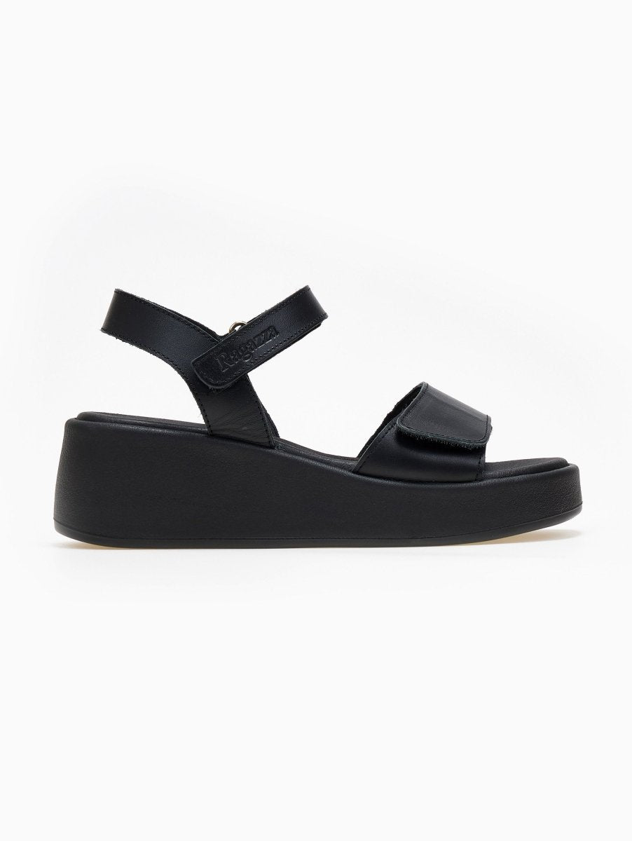 Πλατφόρμες από γνήσιο δέρμα Ragazza. Έχουν φαρδιά φάσα με velcro αυτοκόλλητο στα δάκτυλα. Δένουν με μπαρέτα στο ύψος του κουτεπιέ. Η Ελληνική εταιρία Ragazza ειδικεύεται στα ανατομικά (comfort) παπούτσια τα οποία διαθέτουν την κορυφαία τεχνολογία Dryflex στο εσωτερικό τους, που προσφέρει απόλυτη διαπνοή, απορρόφηση κραδασμών και προστασία από οσμές. Είναι η ιδανική επιλογή για ατελείωτες ώρες βαδίσματος και άνεσης.