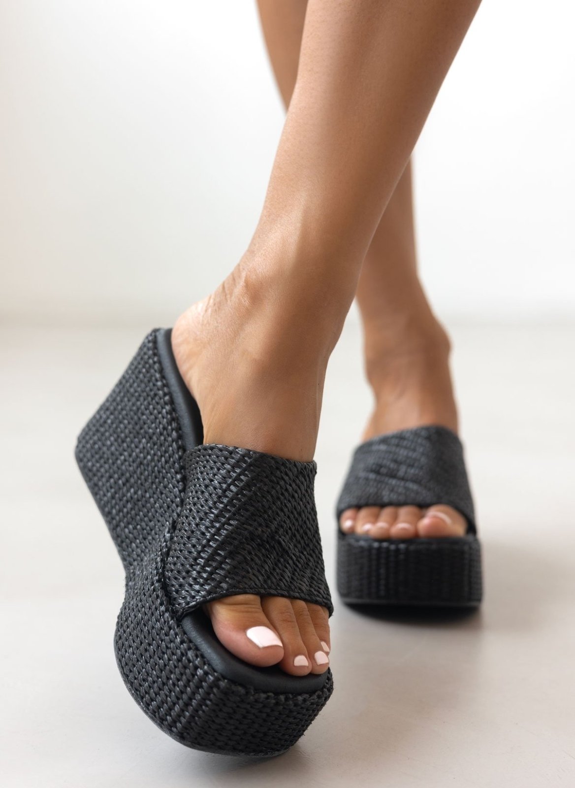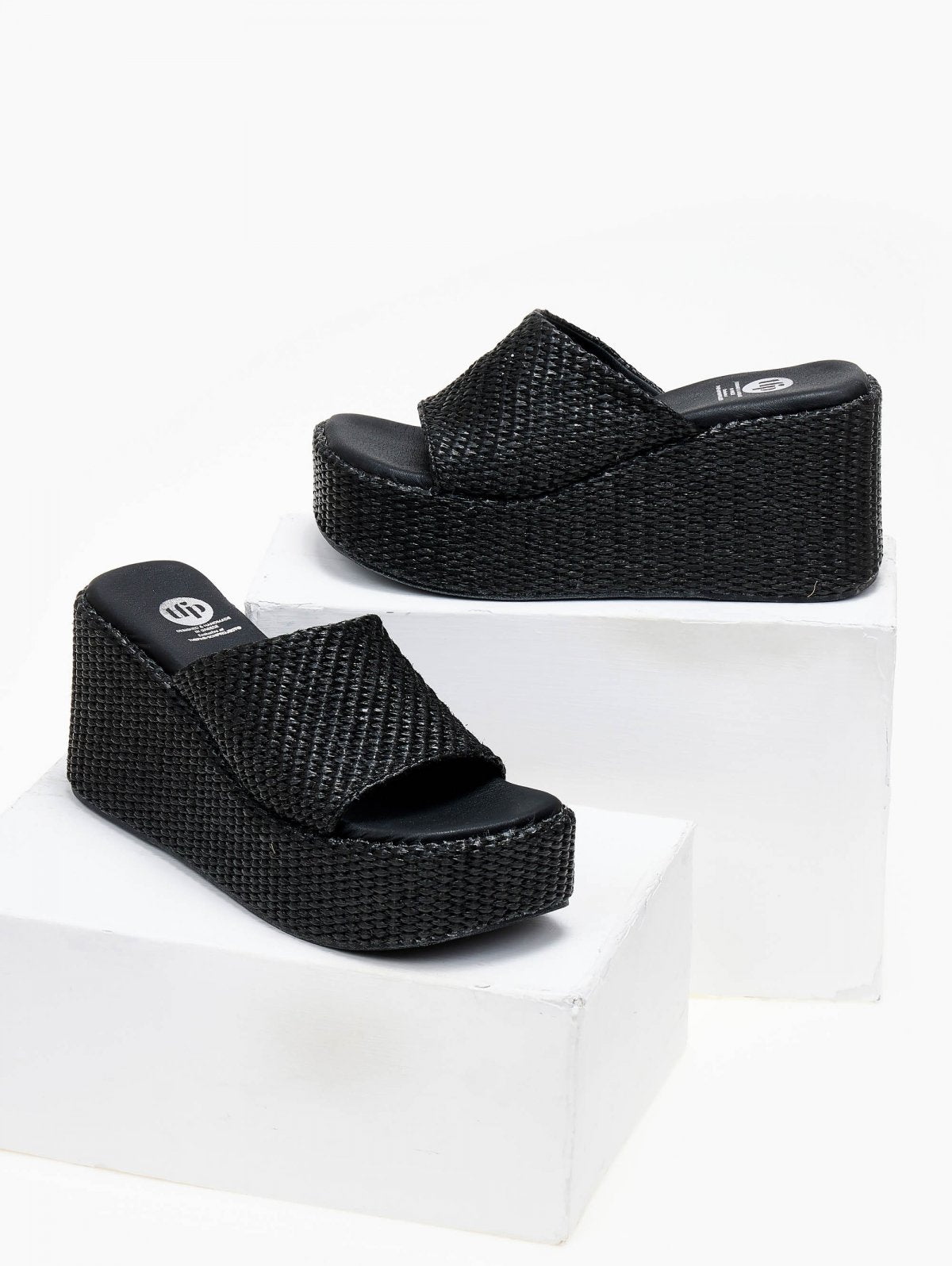 Πλατφόρμες από ψάθα TFP. Φαρδιά ψάθινη φάσα και ντυμένη σόλα. Μαλακός πάτος με ενίσχυση. Ελληνικής κατασκευής.