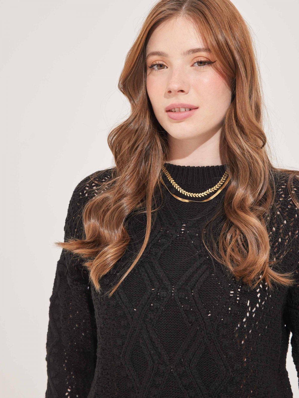 Πλεκτή μπλούζα με διάτρητο σχέδιο - Μαύρο