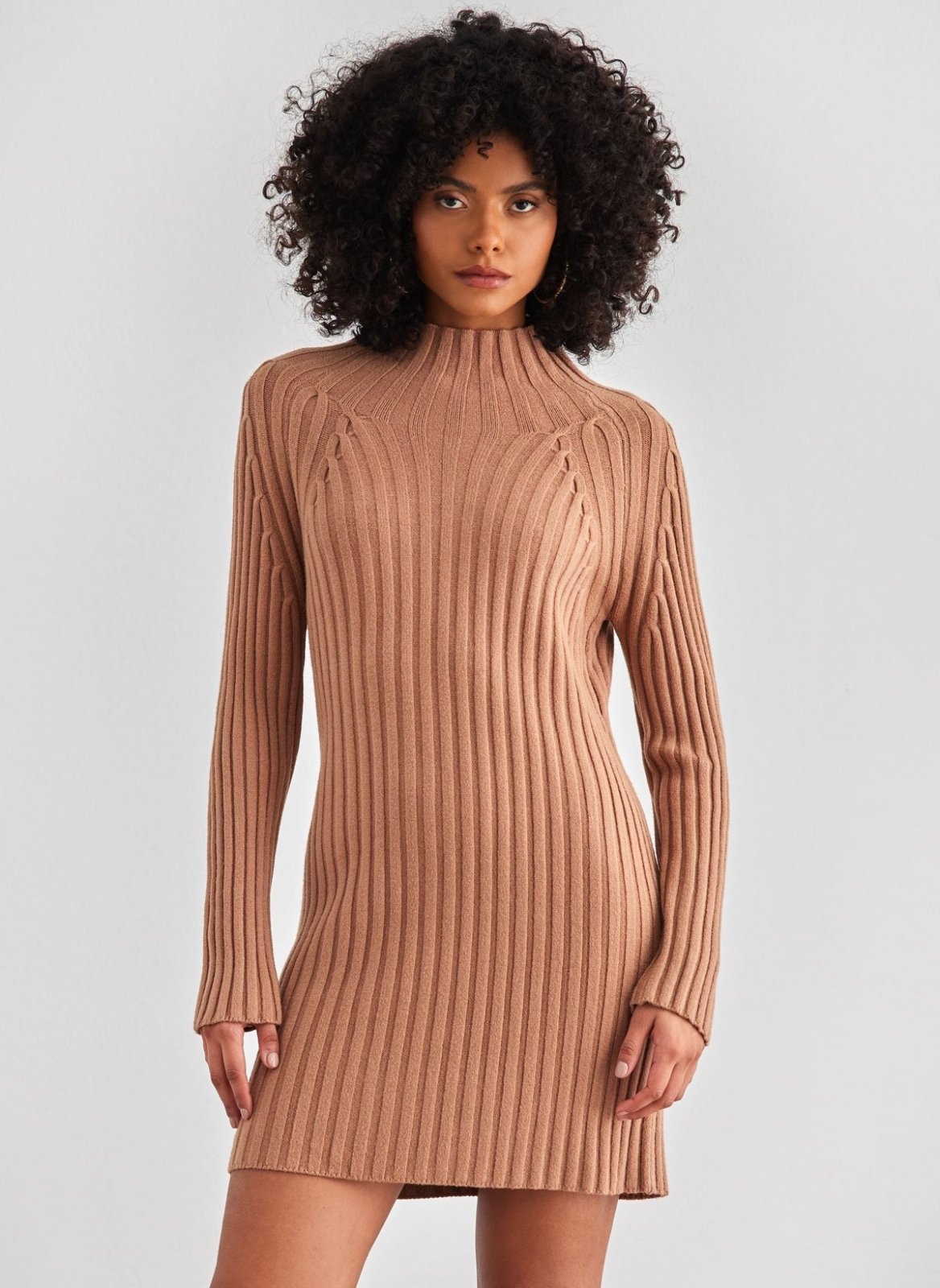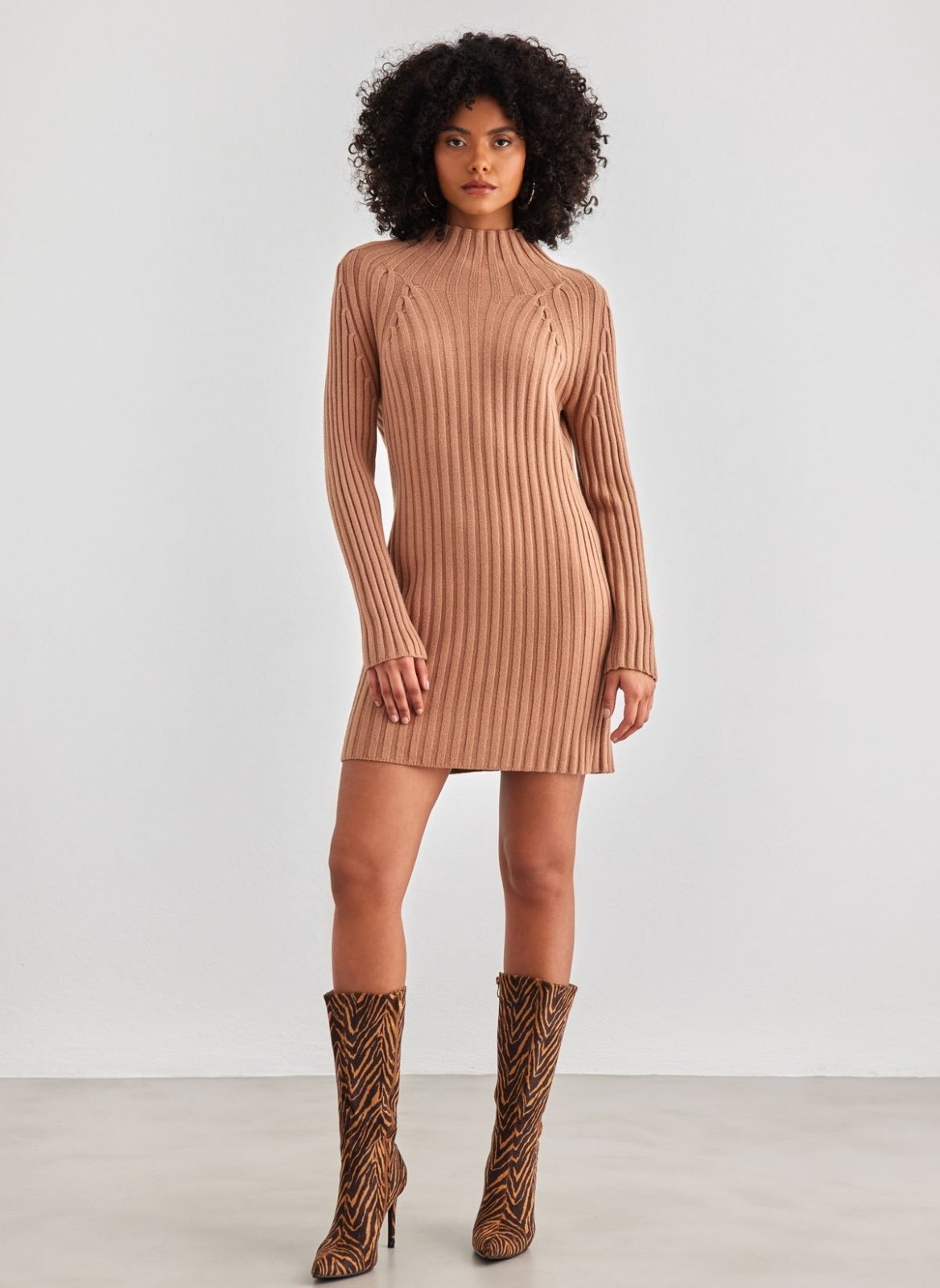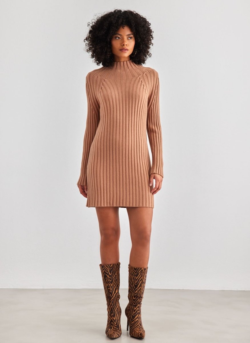 Πλεκτό φόρεμα μίνι - Caramel