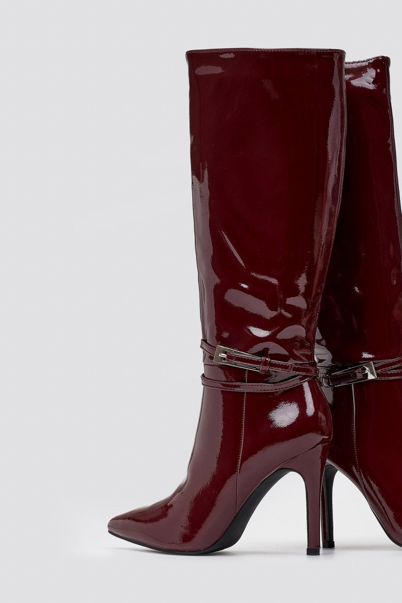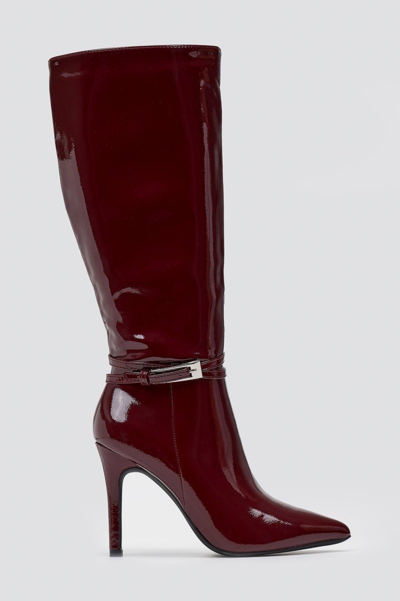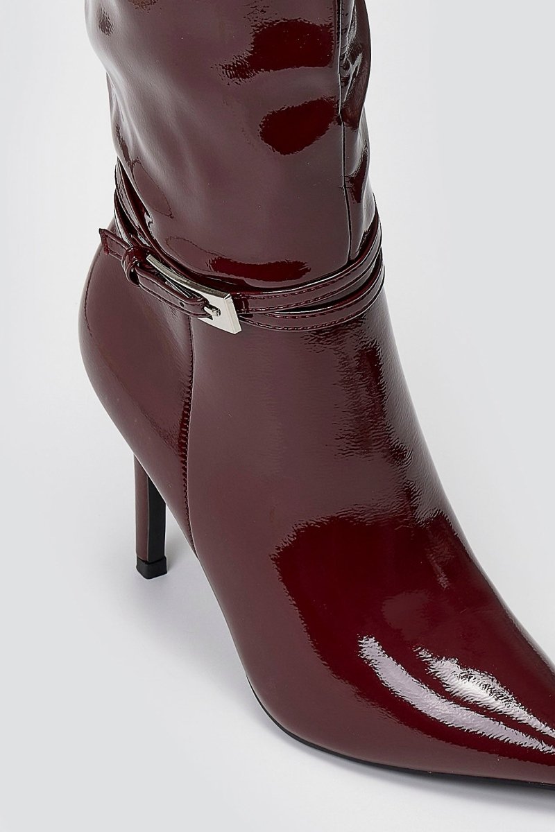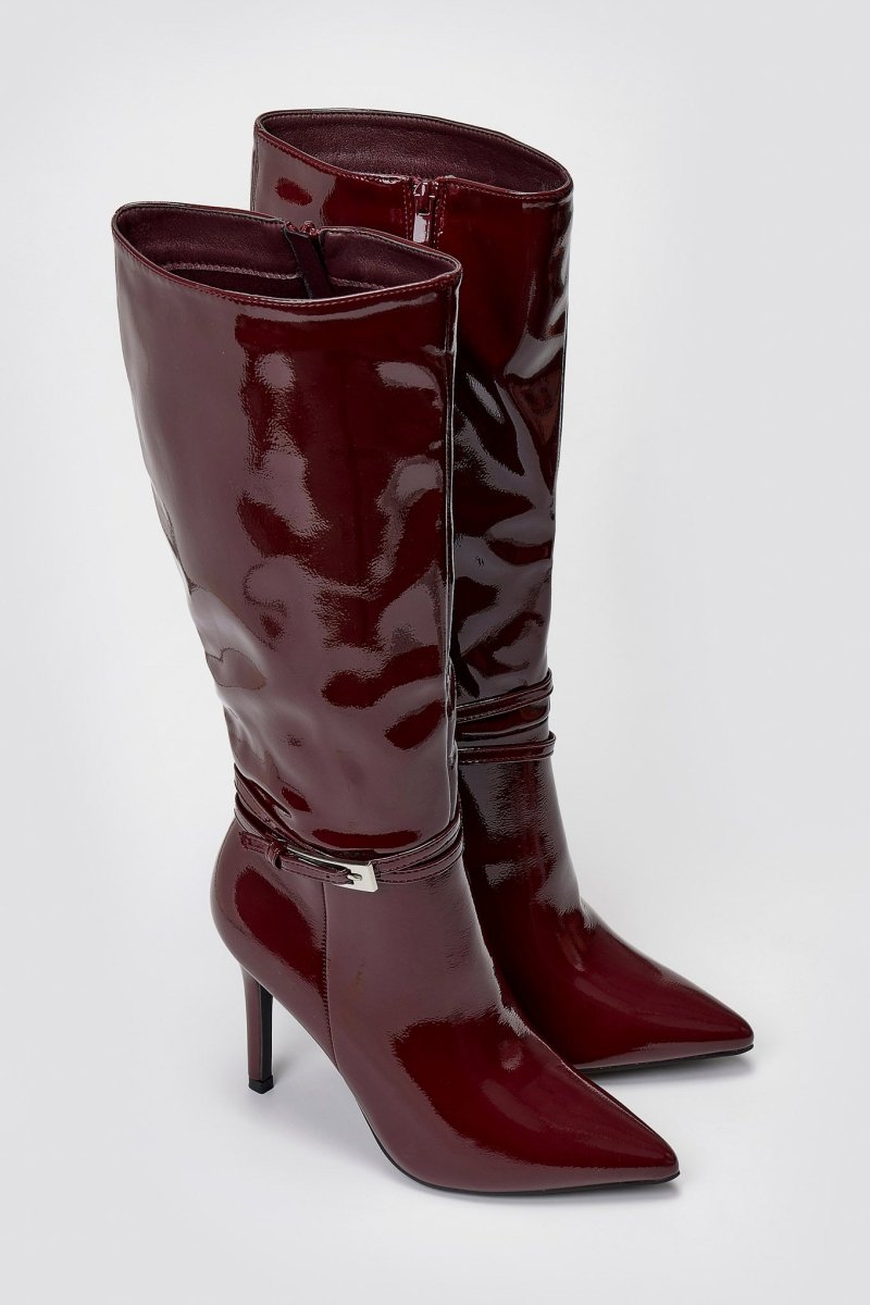 Pointed Patent Boots with Stiletto Heel - Burgundy Patent