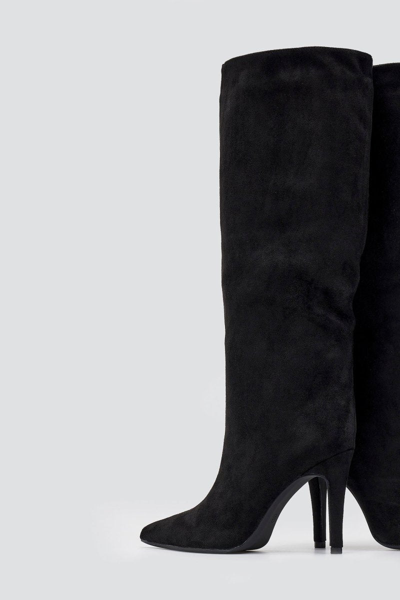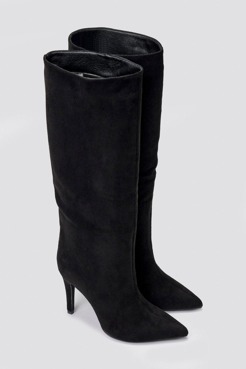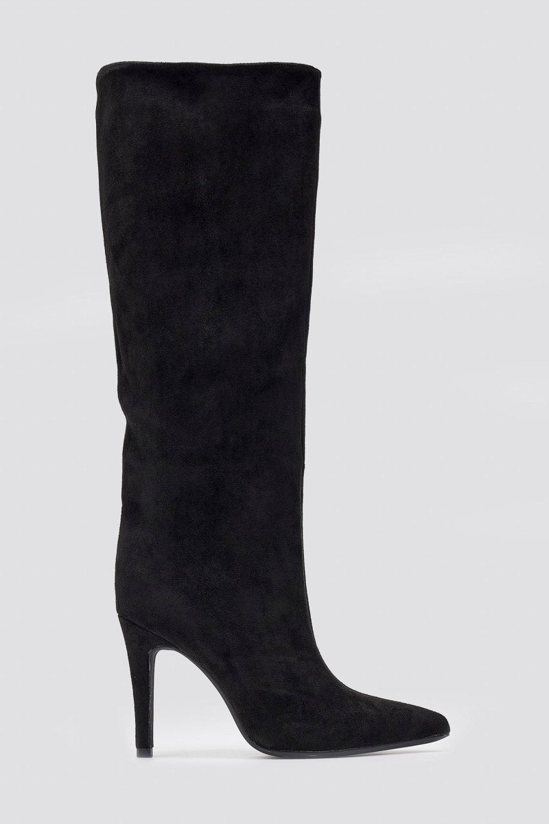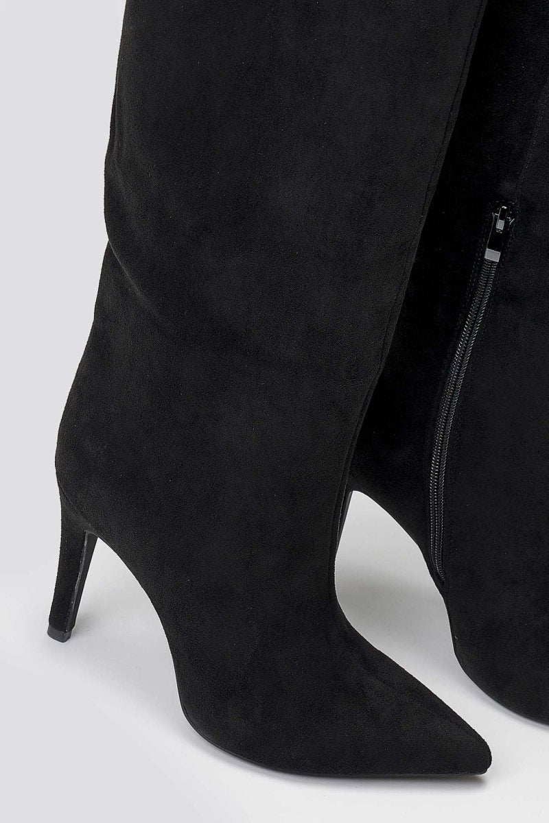 Pointed Suede Boots with Stiletto Heel - Black Suede