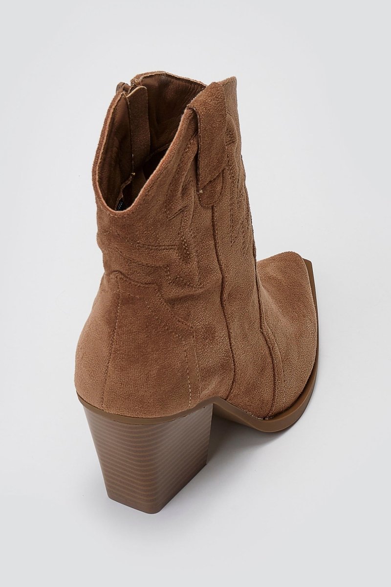 Pointed Suede Cowboy Ankle Boots - Camel Suede
