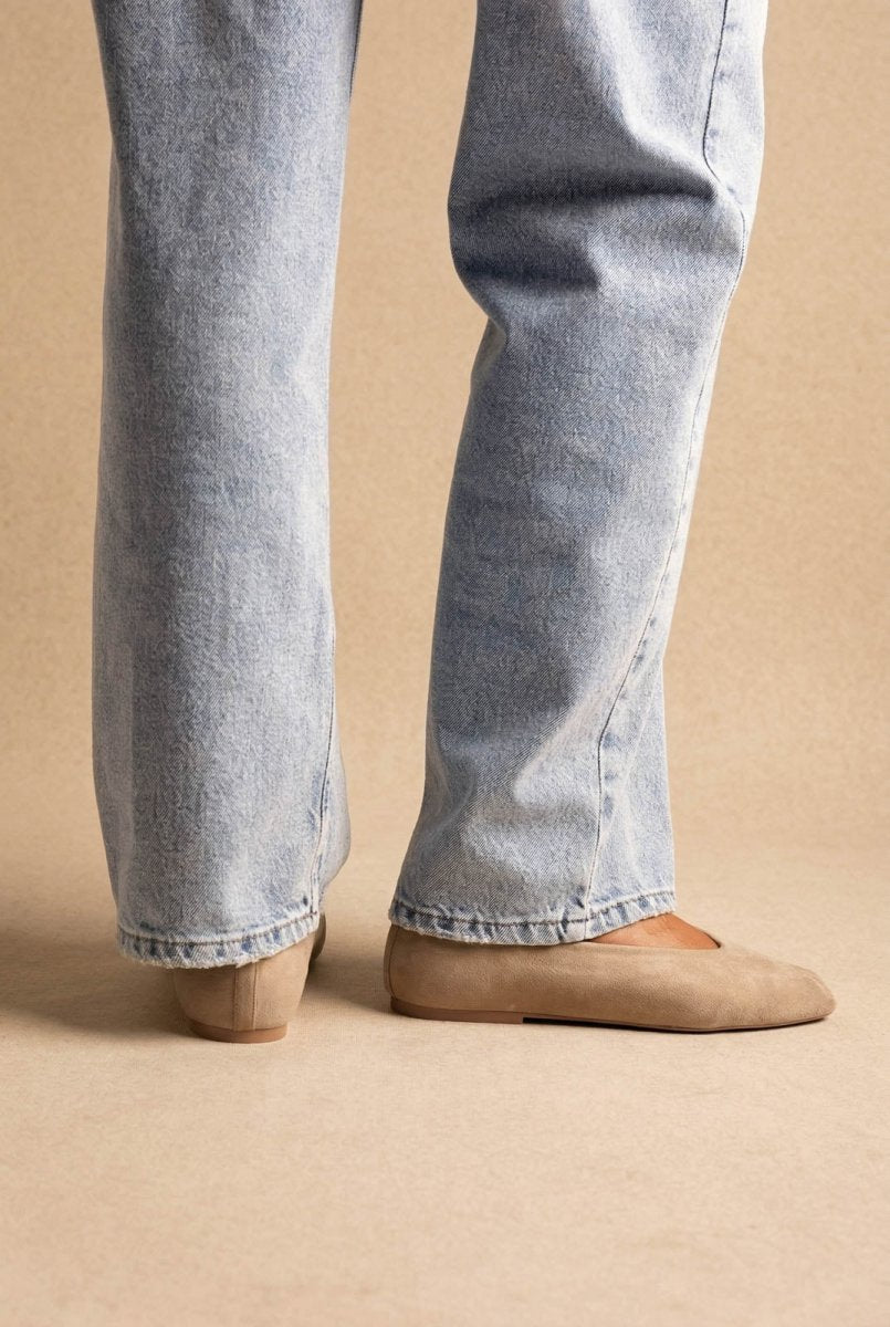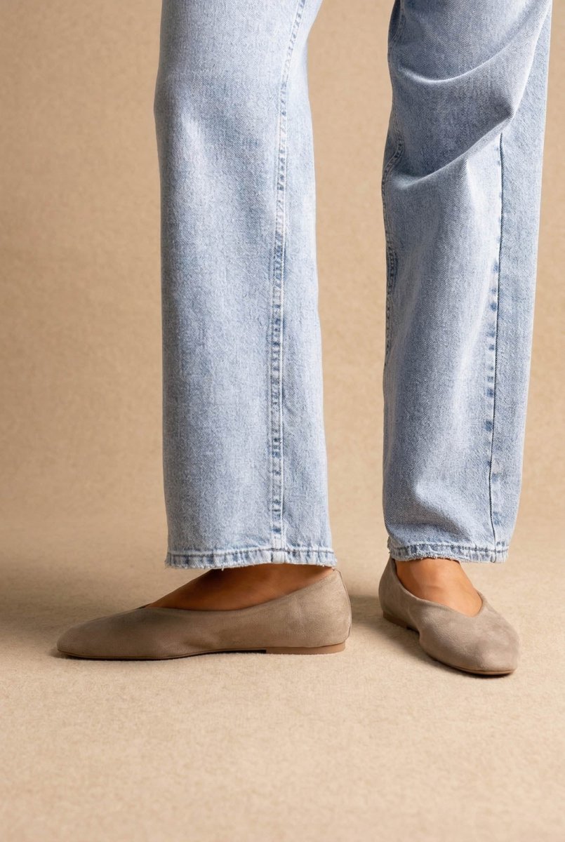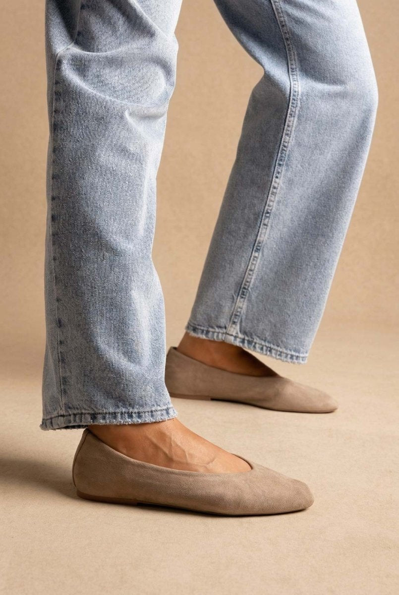 Pointed Toe Ballet Flats - Taupe Suede