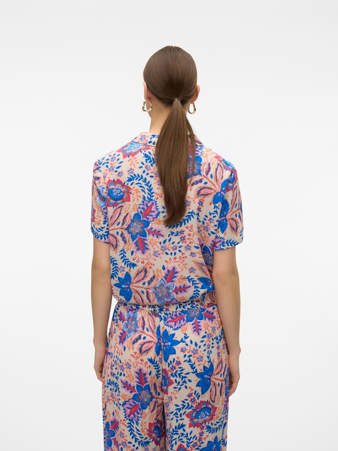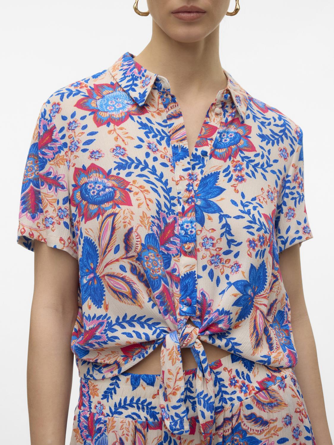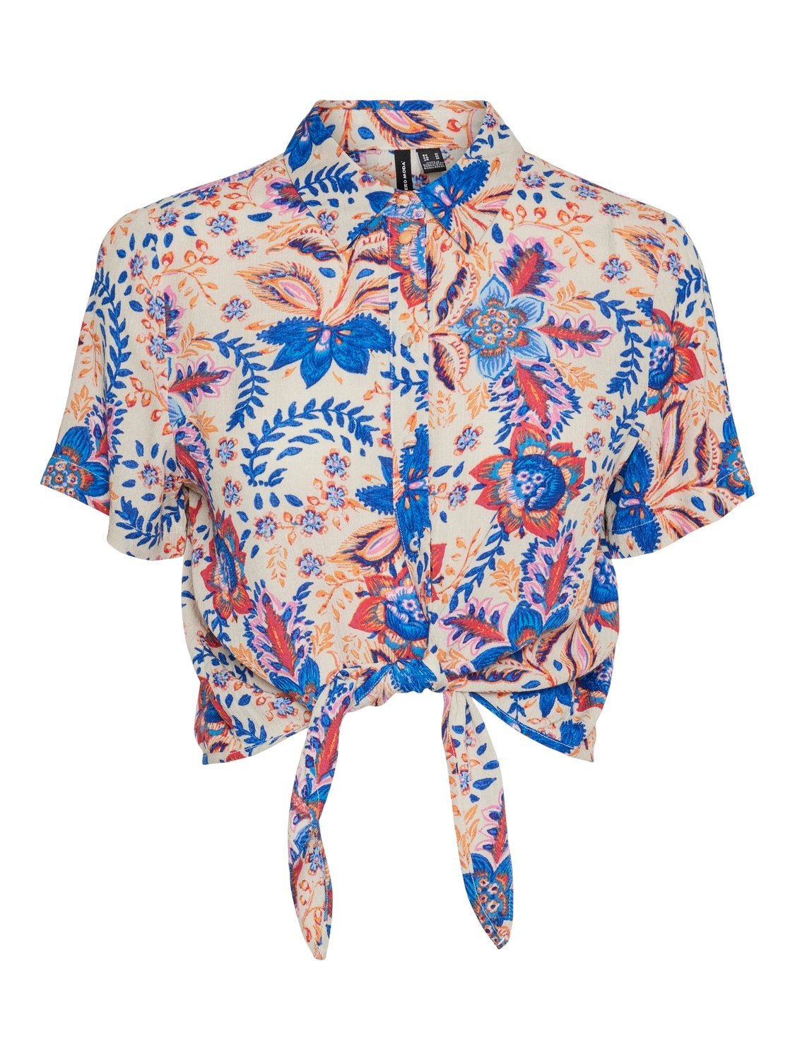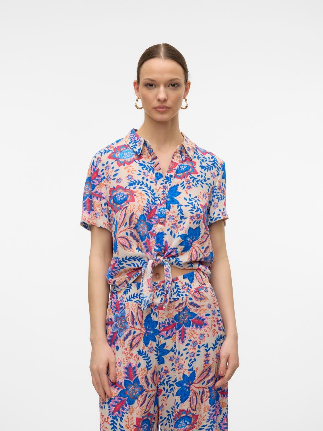 Πουκάμισο crop κοντομάνικο χρωματιστό print Vero Moda. Ντυμένα κουμπιά. Λεπτός γιακάς. Δένει στo τελείωμα.