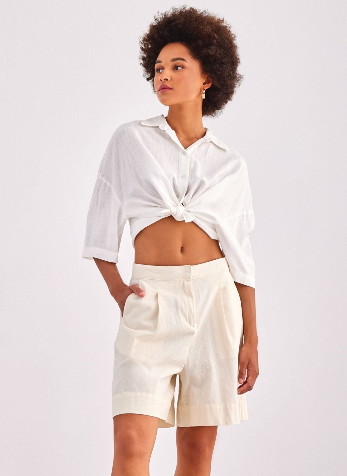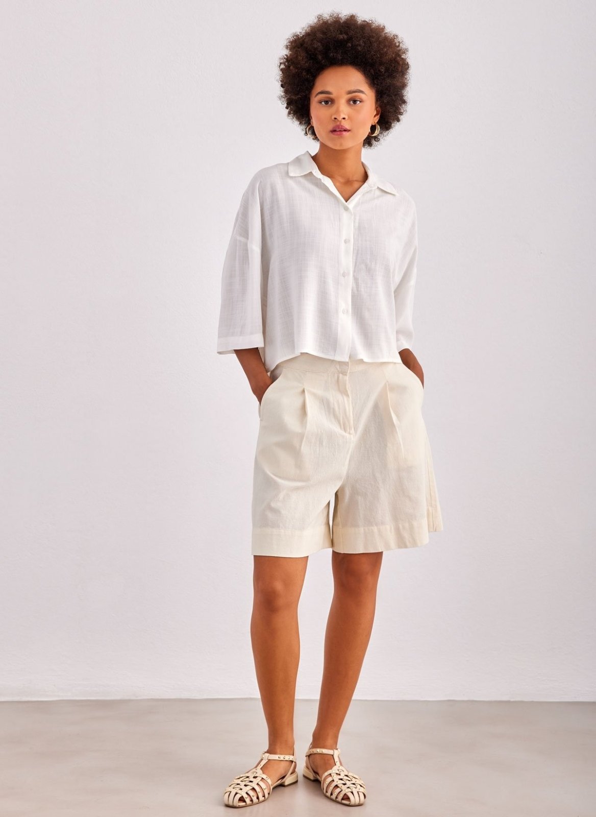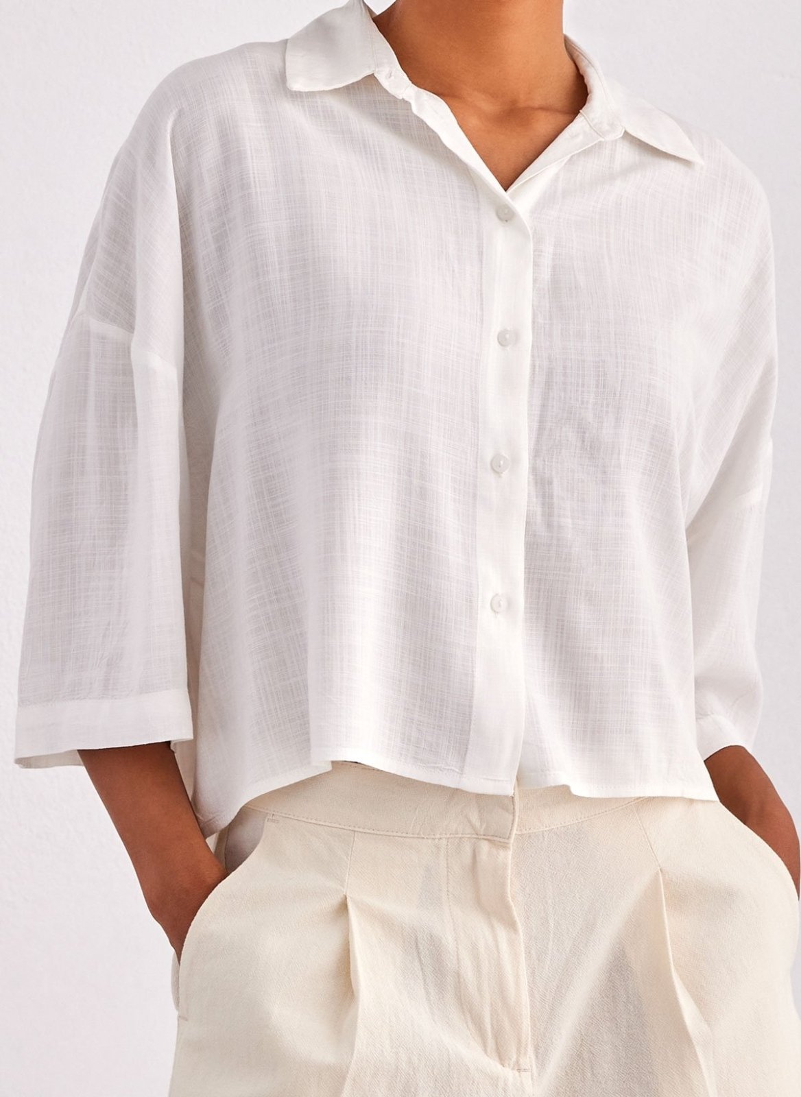 Πουκάμισο κοντό ONLY. Έχει φαρδιά μανίκια 3/4. Ίσιο τελείωμα. Κλείσιμο με κουμπιά.