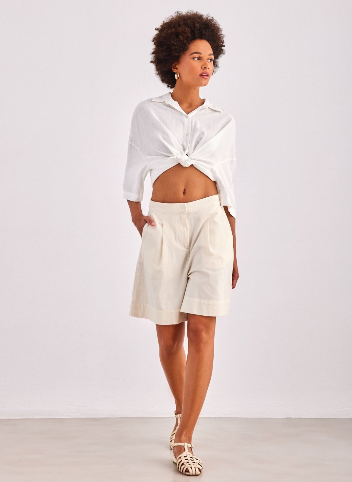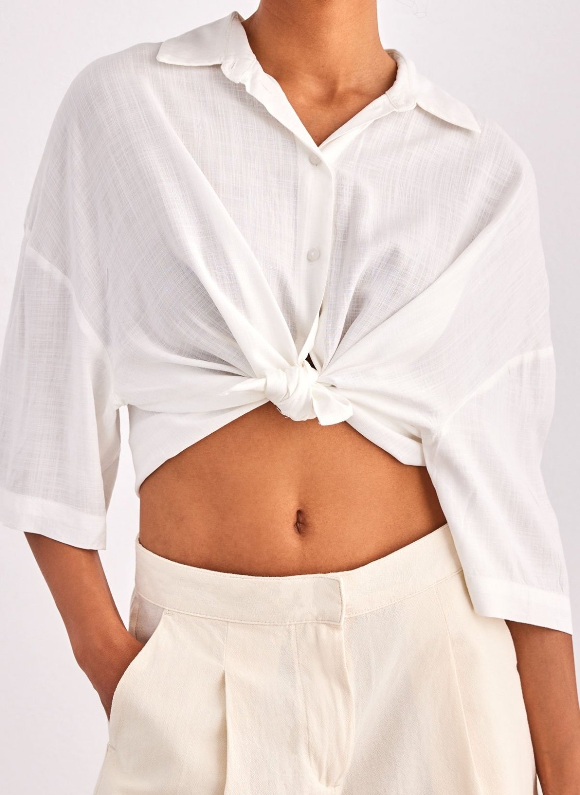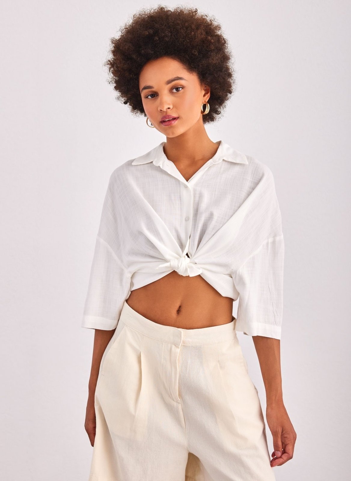 Πουκάμισο κοντό ONLY. Έχει φαρδιά μανίκια 3/4. Ίσιο τελείωμα. Κλείσιμο με κουμπιά.