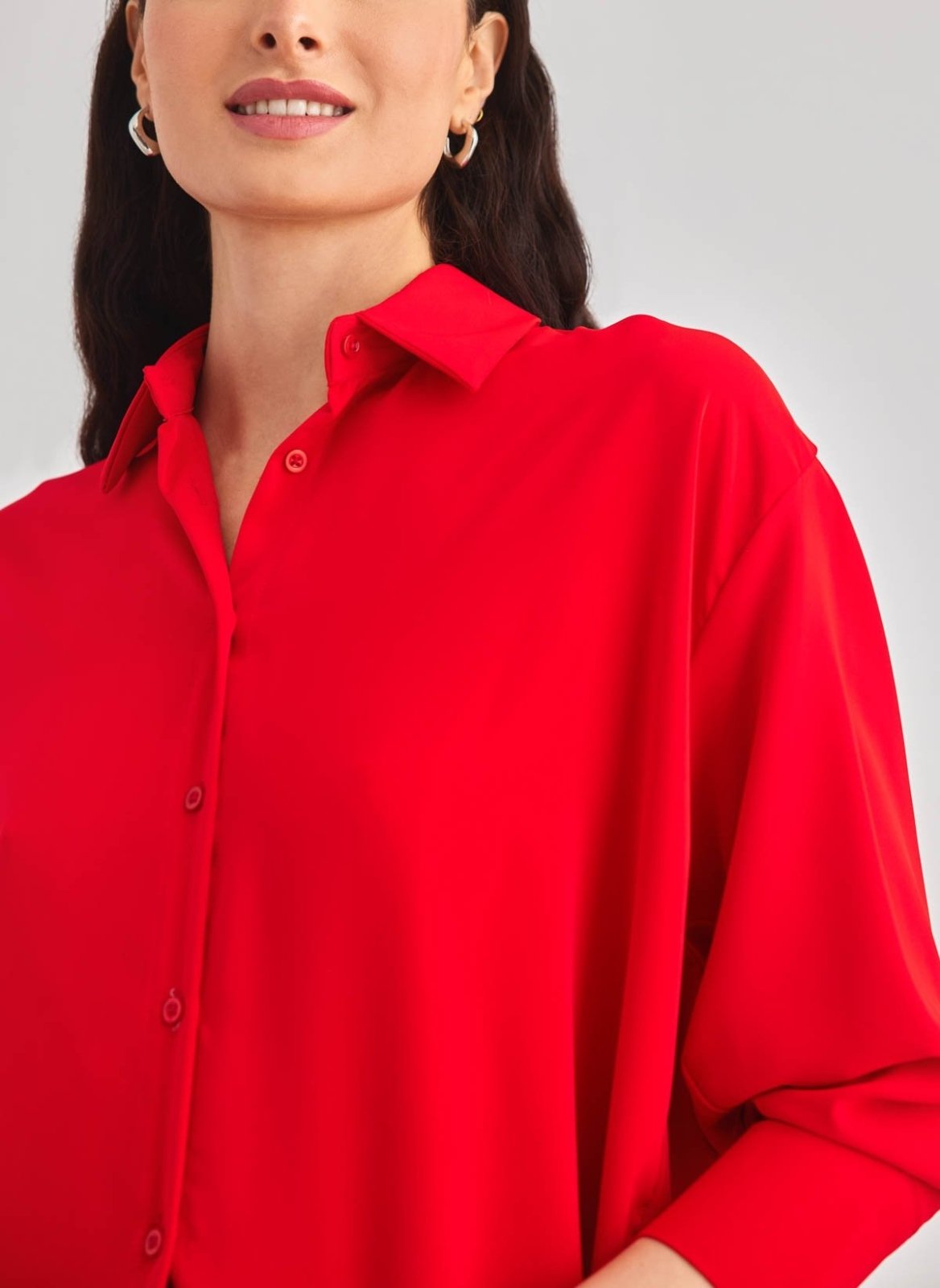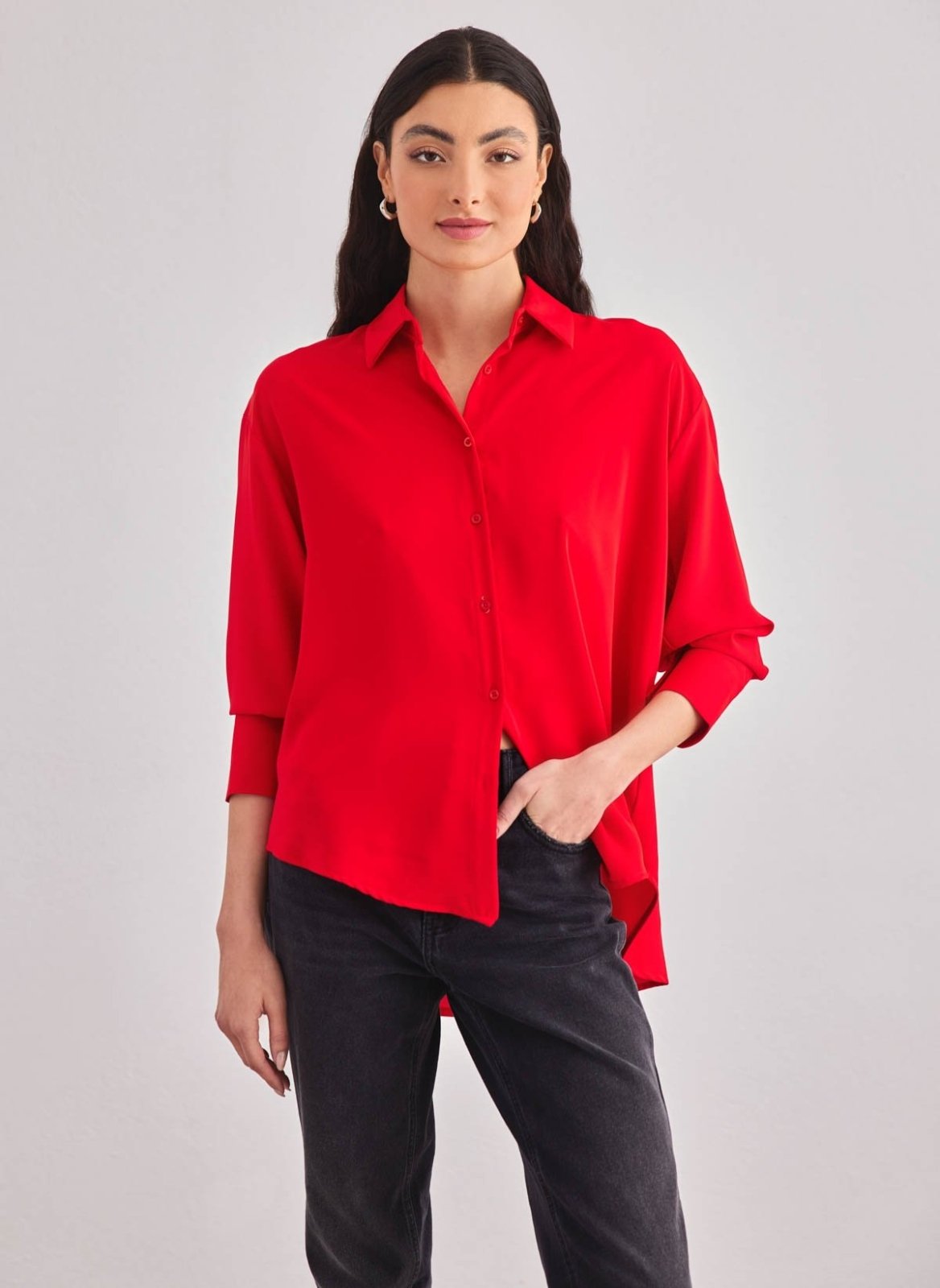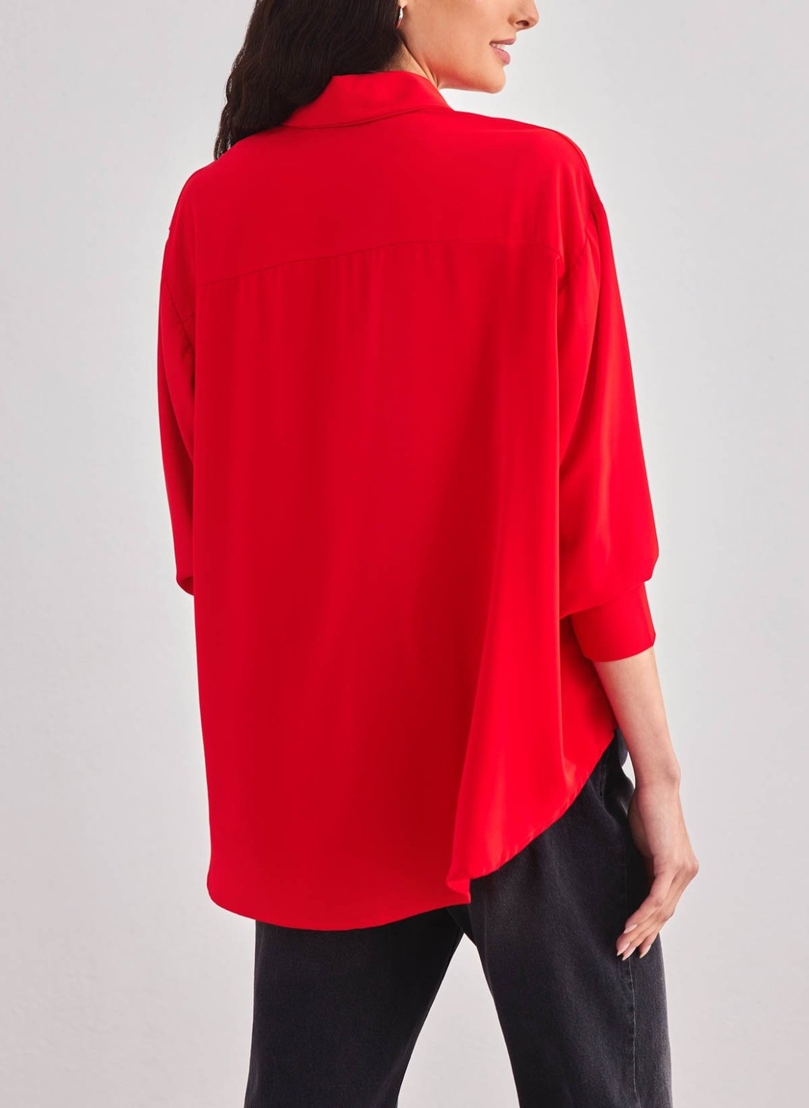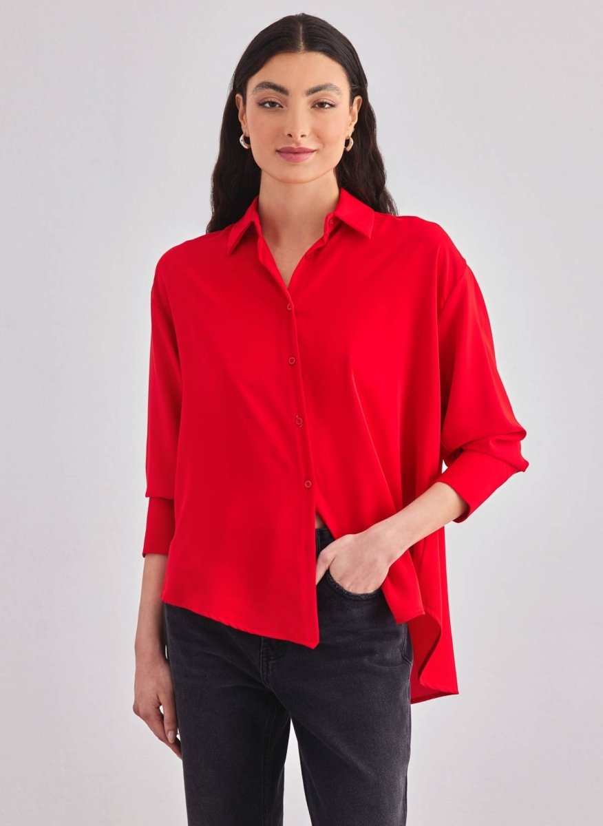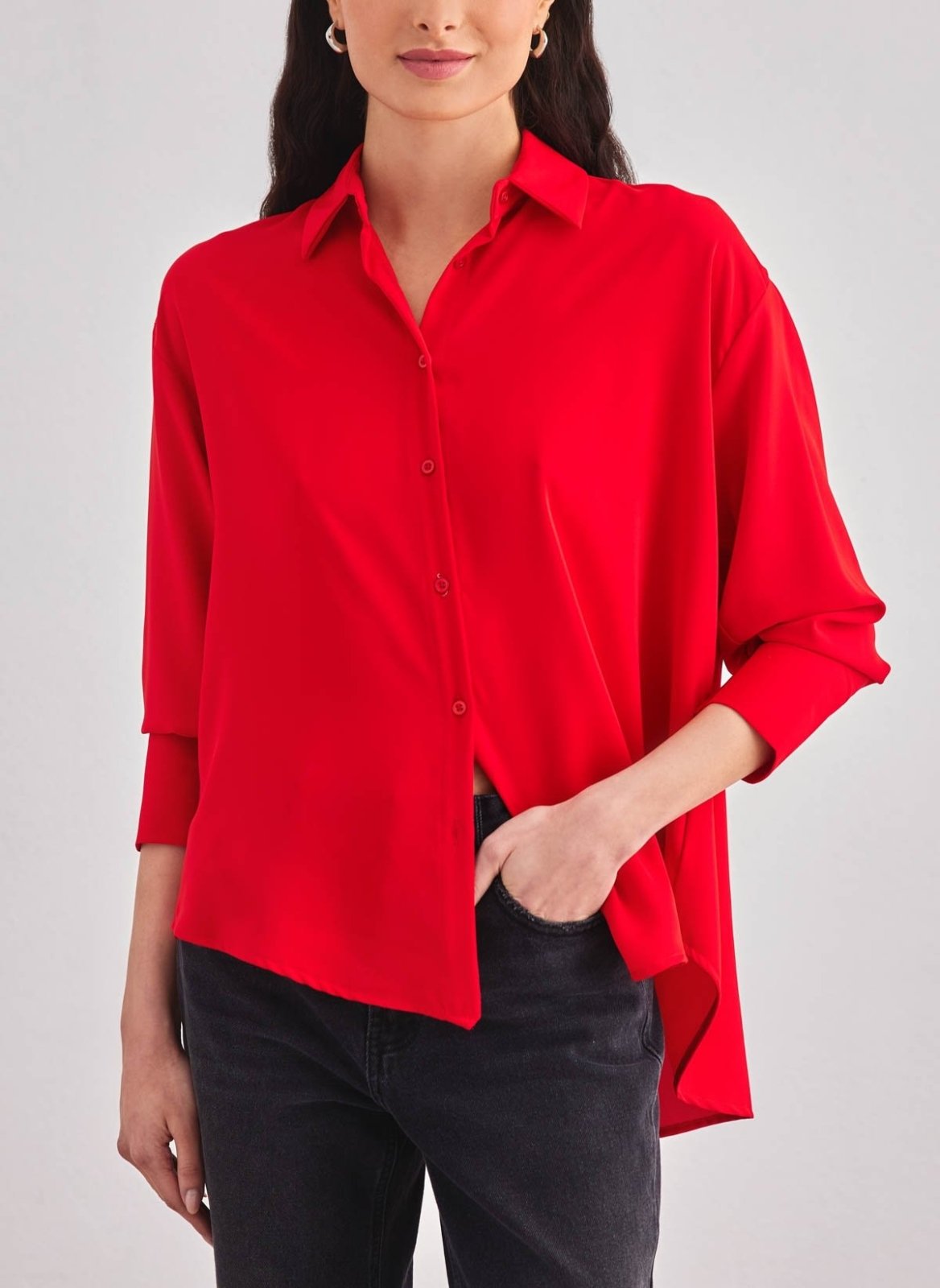 Πουκάμισο oversize με ασύμμετρο τελείωμα - Κόκκινο