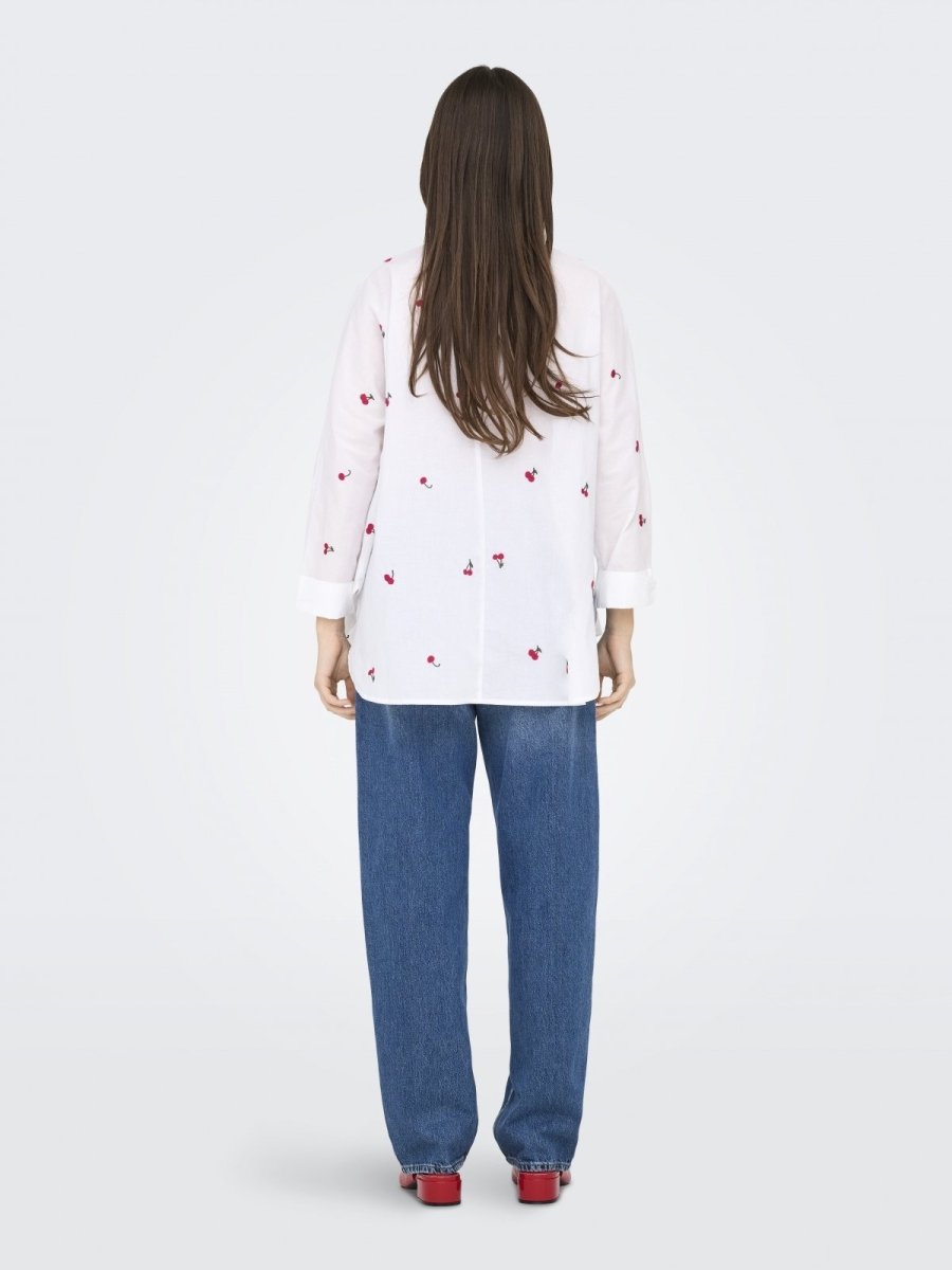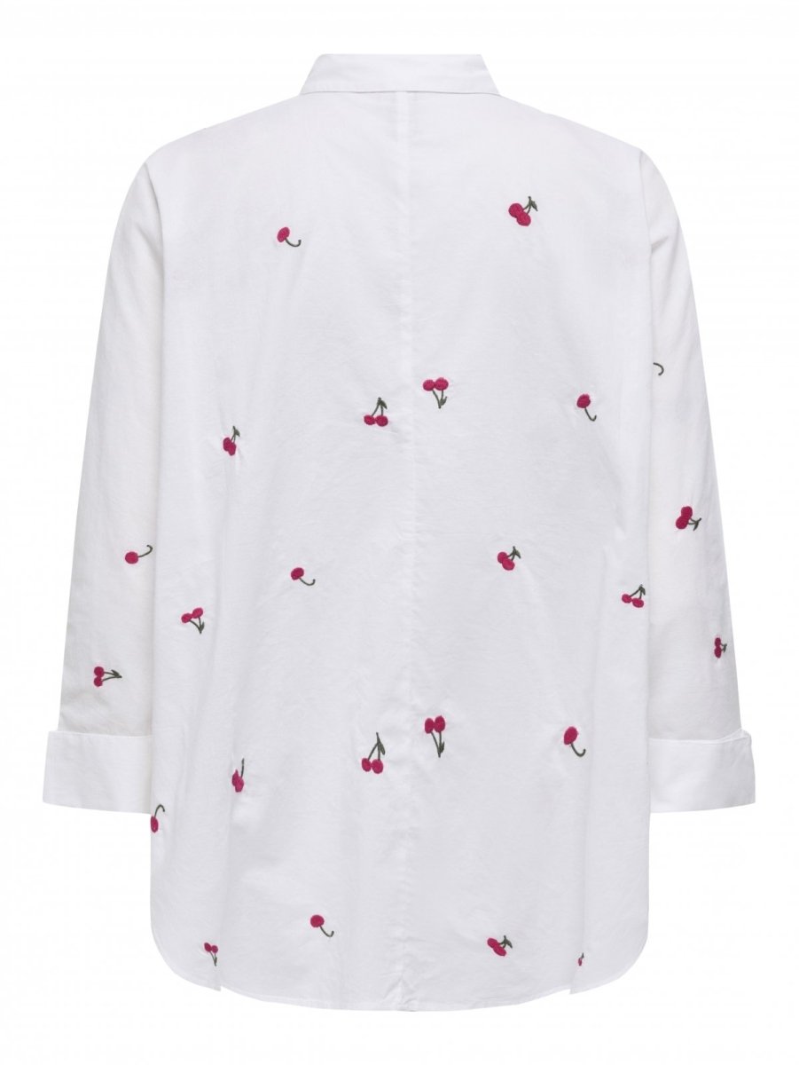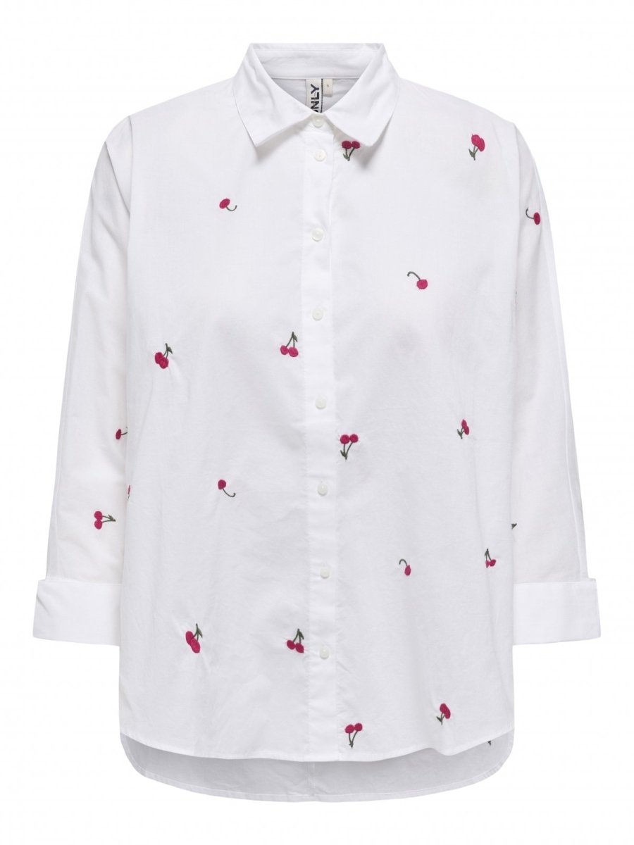 Πουκάμισο με print με κεράσια ONLY. Άνετη γραμμή με οβάλ τελείωμα. Τρουακάρ μανίκια με ρεβέρ.