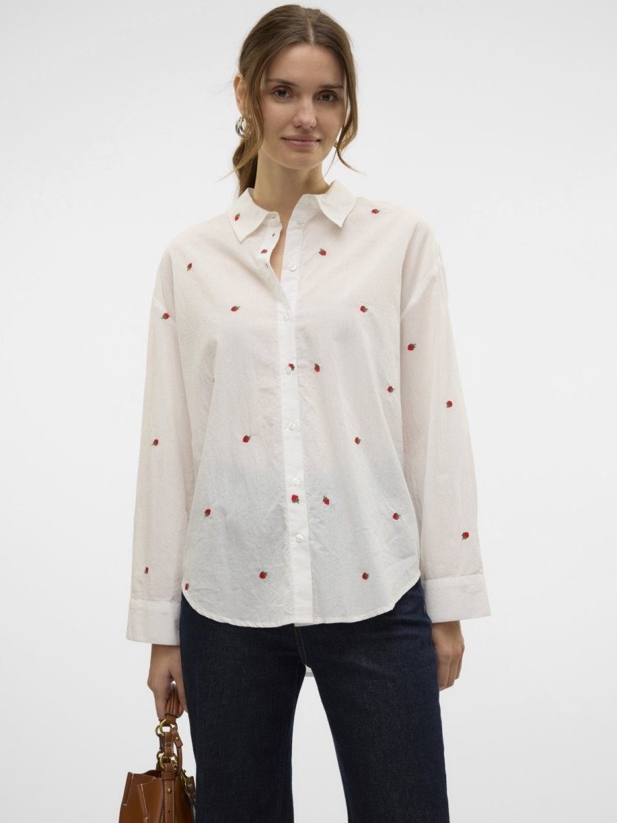 Πουκάμισο σε άνετη γραμμή με φράουλες Vero Moda 10324629 - Λευκό