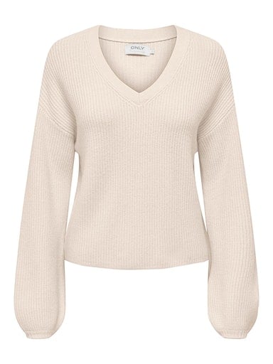 Πουλόβερ crop με v cut λαιμόκοψη ONLY 15294086 - Μπεζ