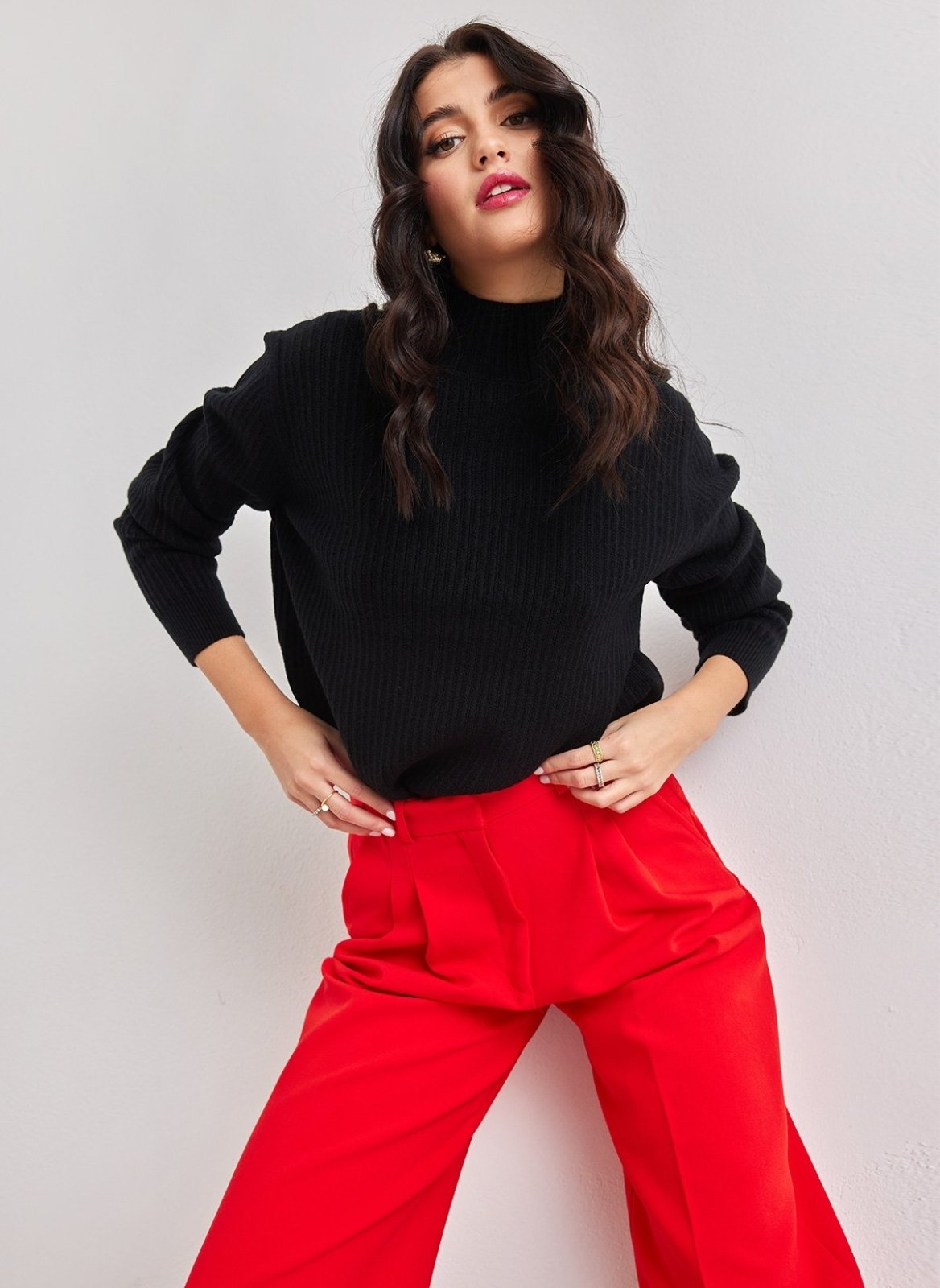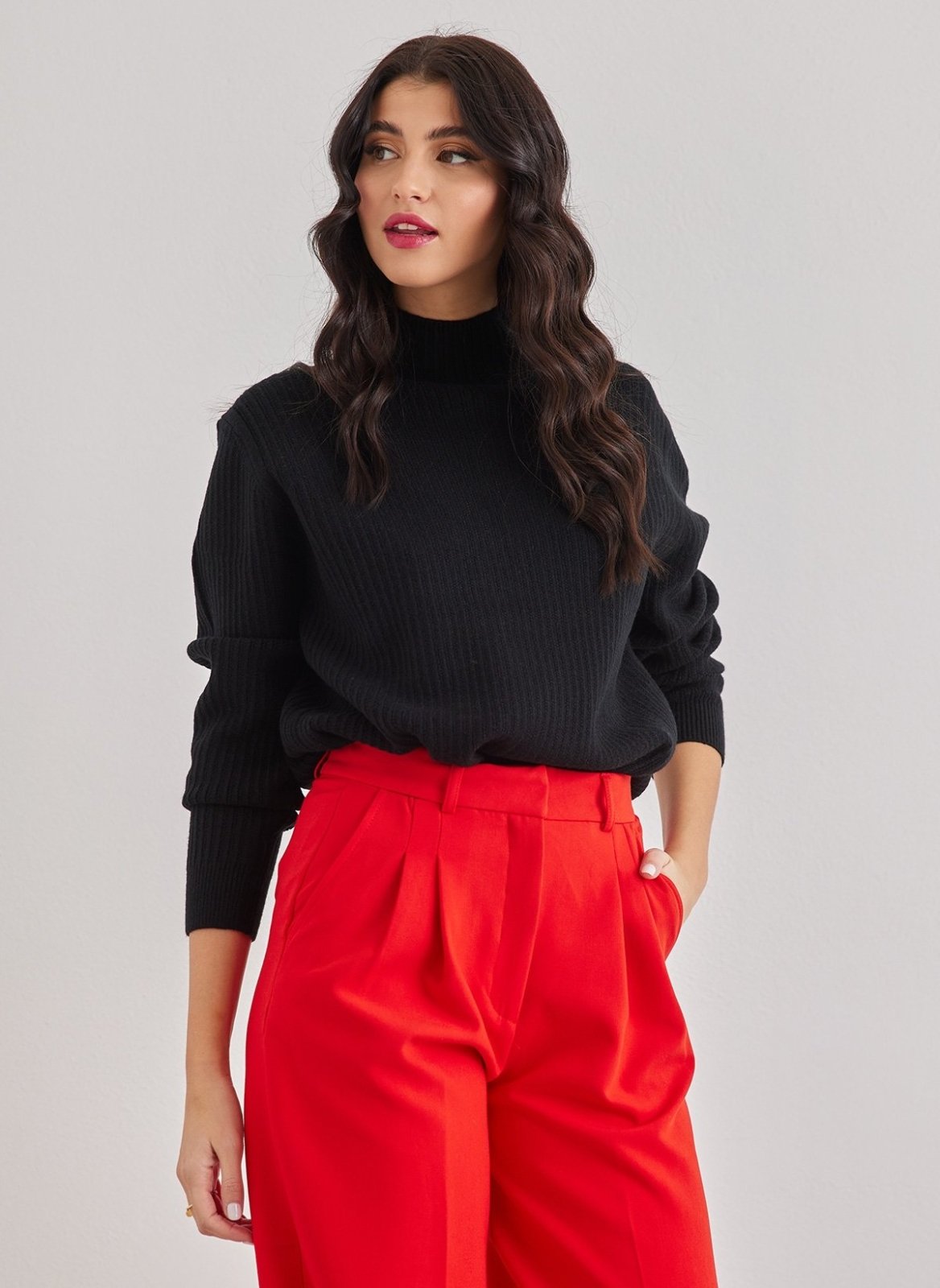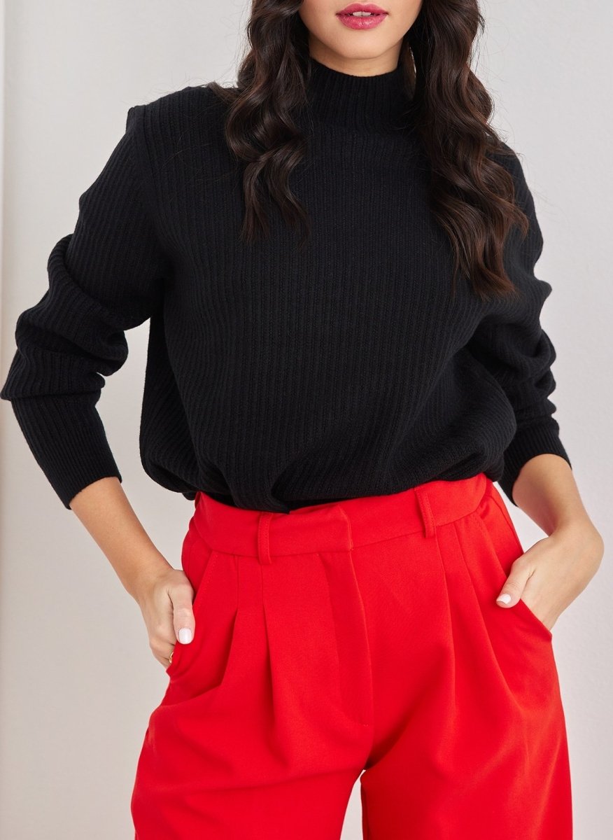 Πουλόβερ με ψηλή λαιμόκοψη - Μαύρο