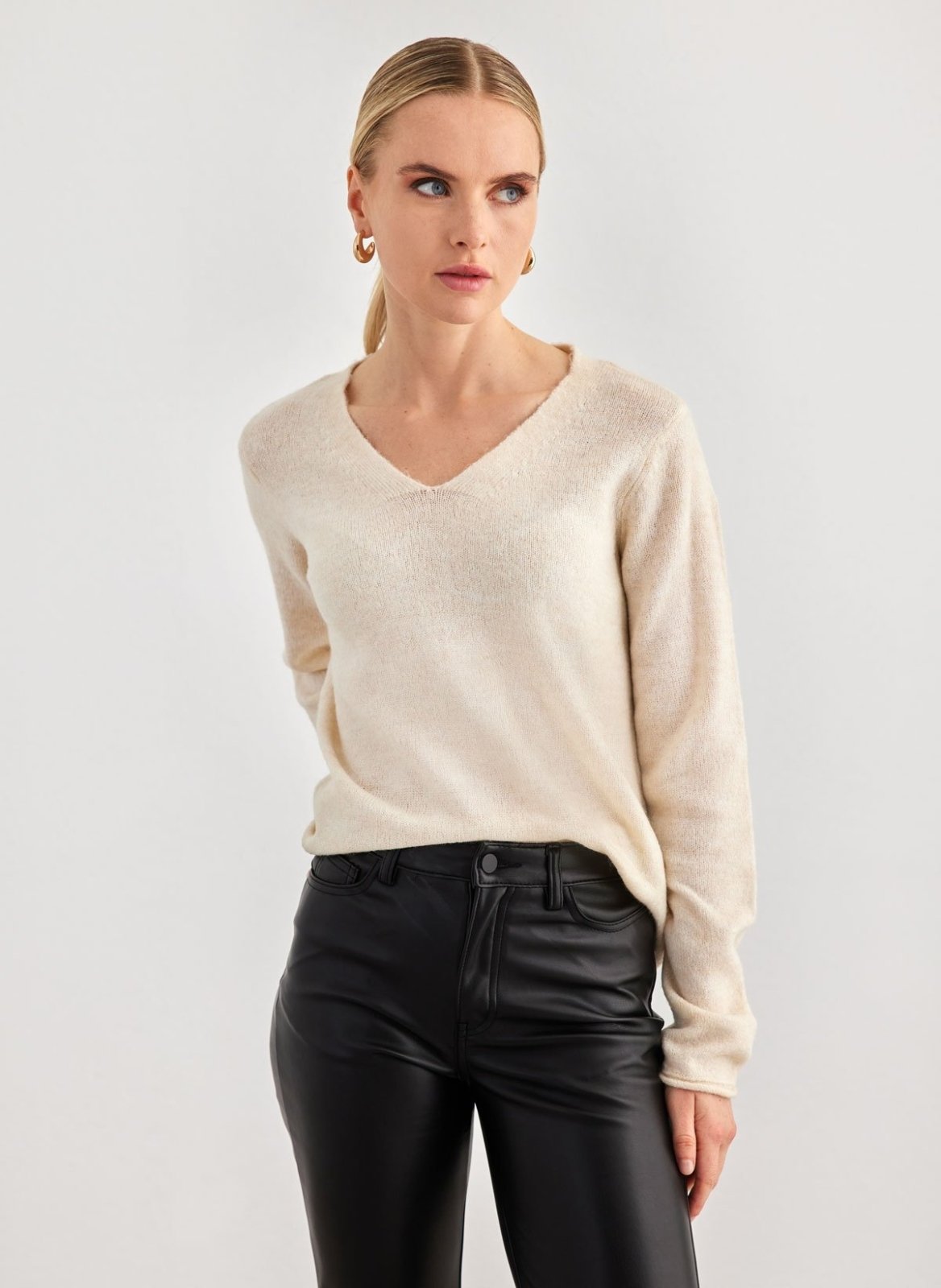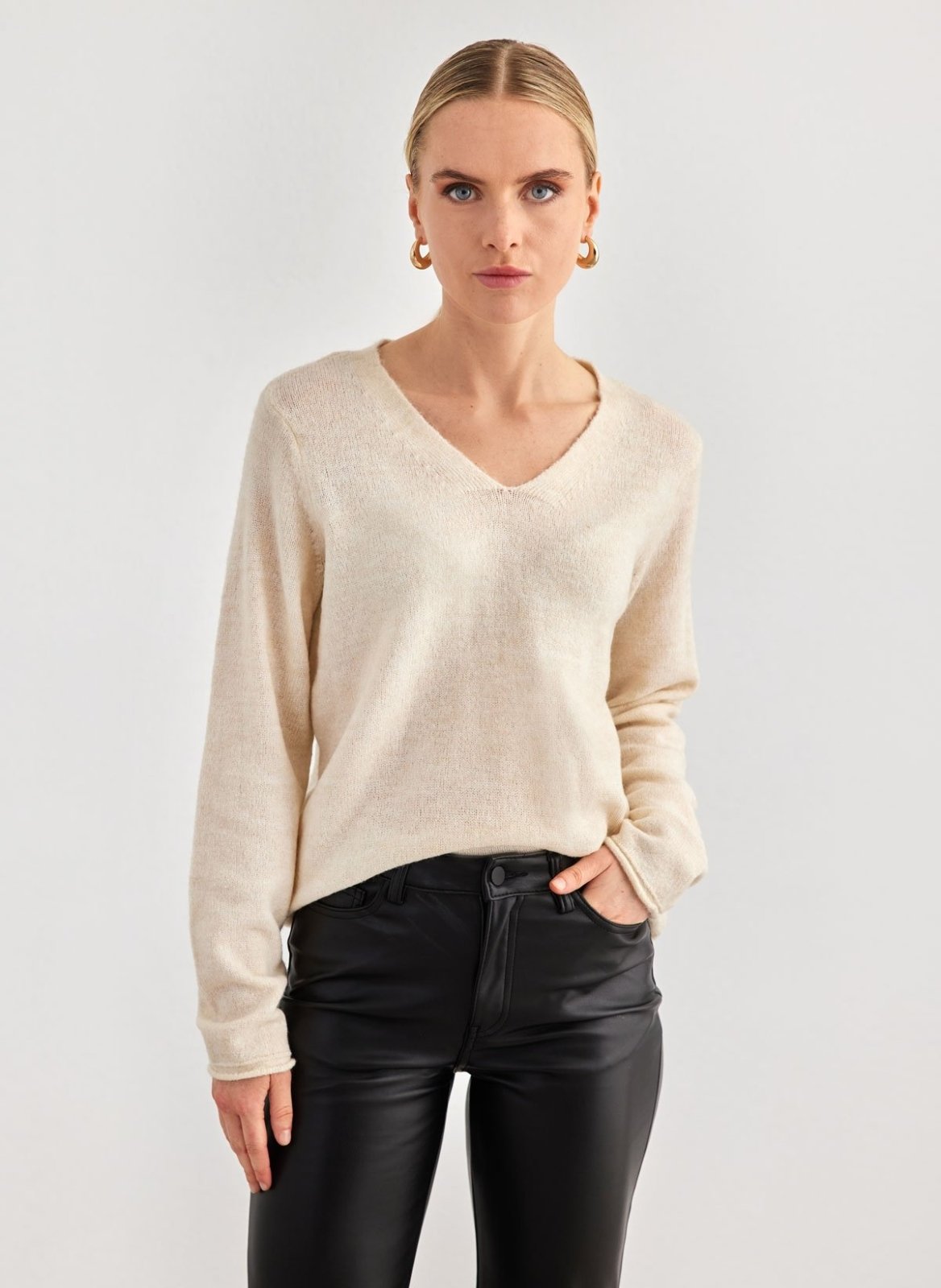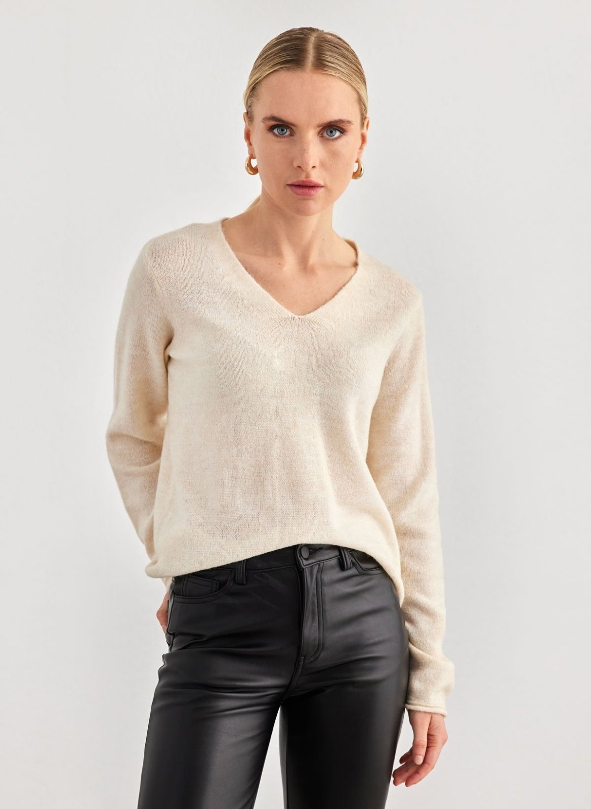 Πουλόβερ με λεπτή πλέξη Vero Moda. Έχει v cut λαιμόκοψη. Ίσιο τελείωμα.