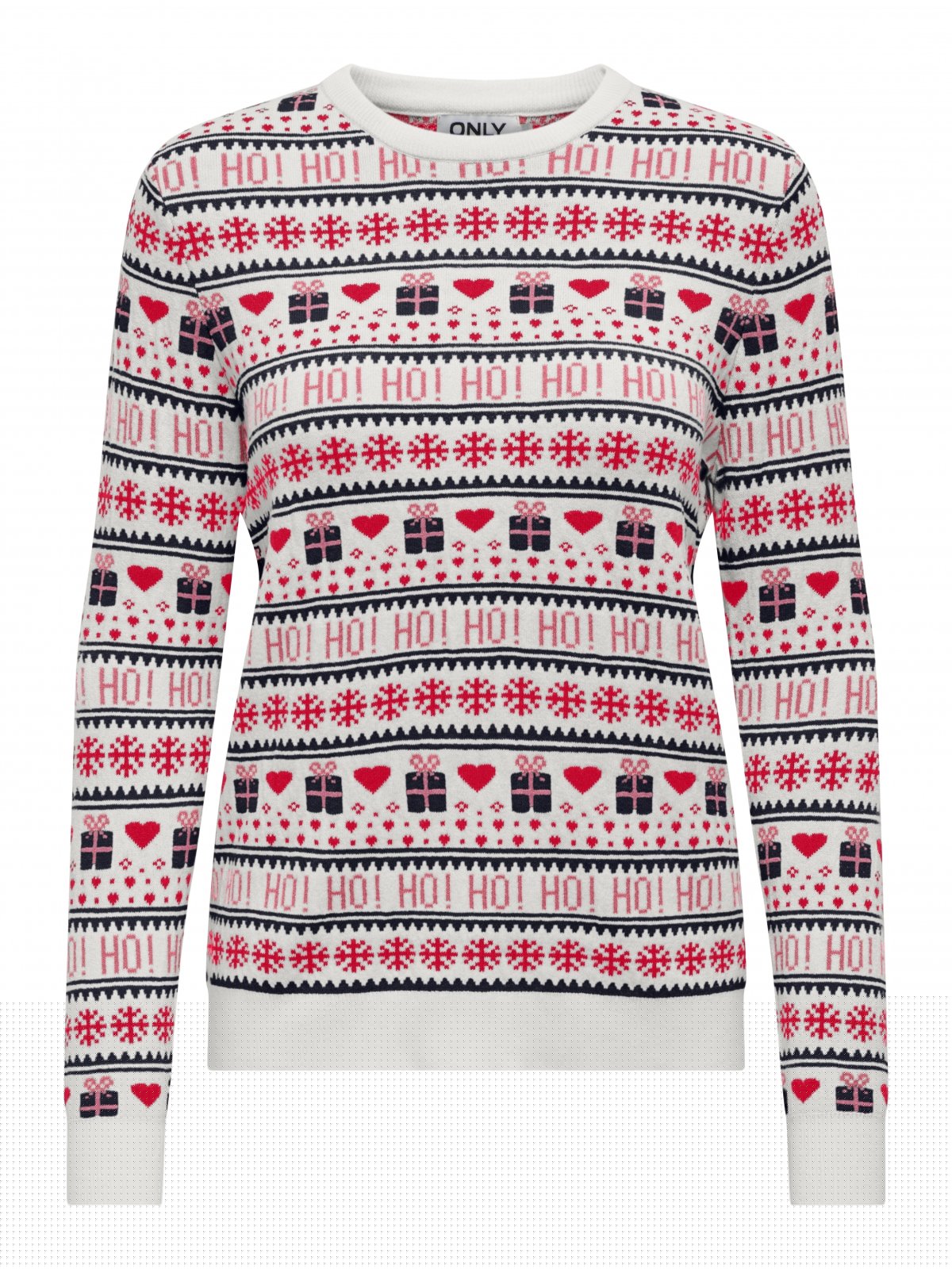 Πουλόβερ χριστουγεννιάτικο ONLY 15327619 - Λευκό/Ροζ