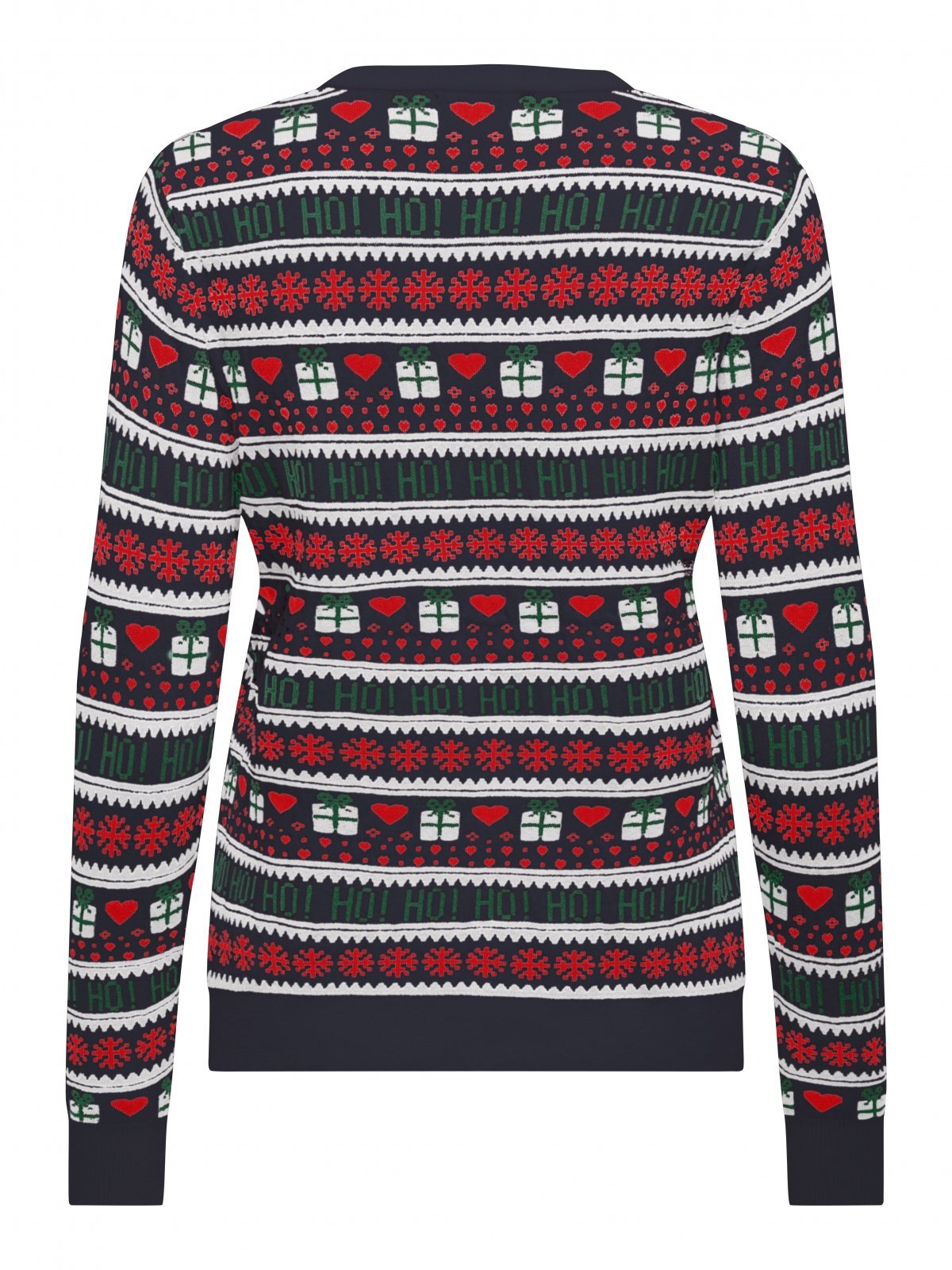 Πουλόβερ με χριστουγεννιάτικα prints ONLY. Στρογγυλή λαιμόκοψη. Λεπτομέρεια ριμπ πλέξη στα μανίκια και το τελείωμα.